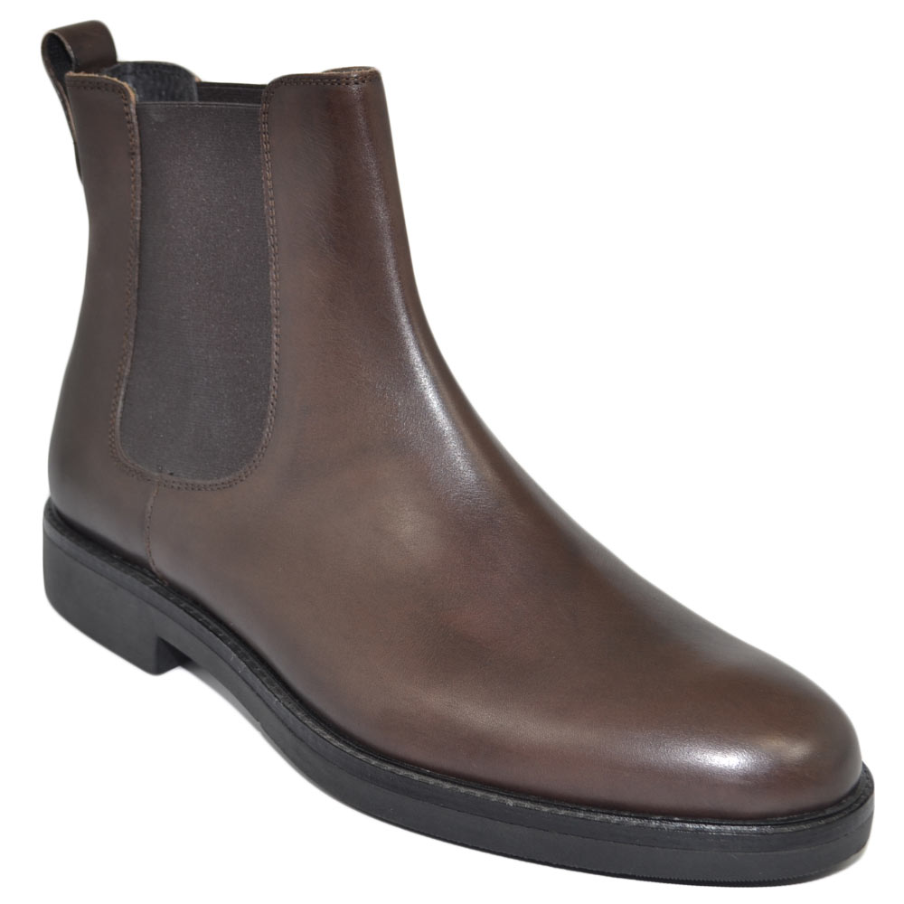Beatles uomo stivaletto con elastico in vera pelle cuoio bruciat collo basso Chelsea fondo gomma made in italy invernale.
