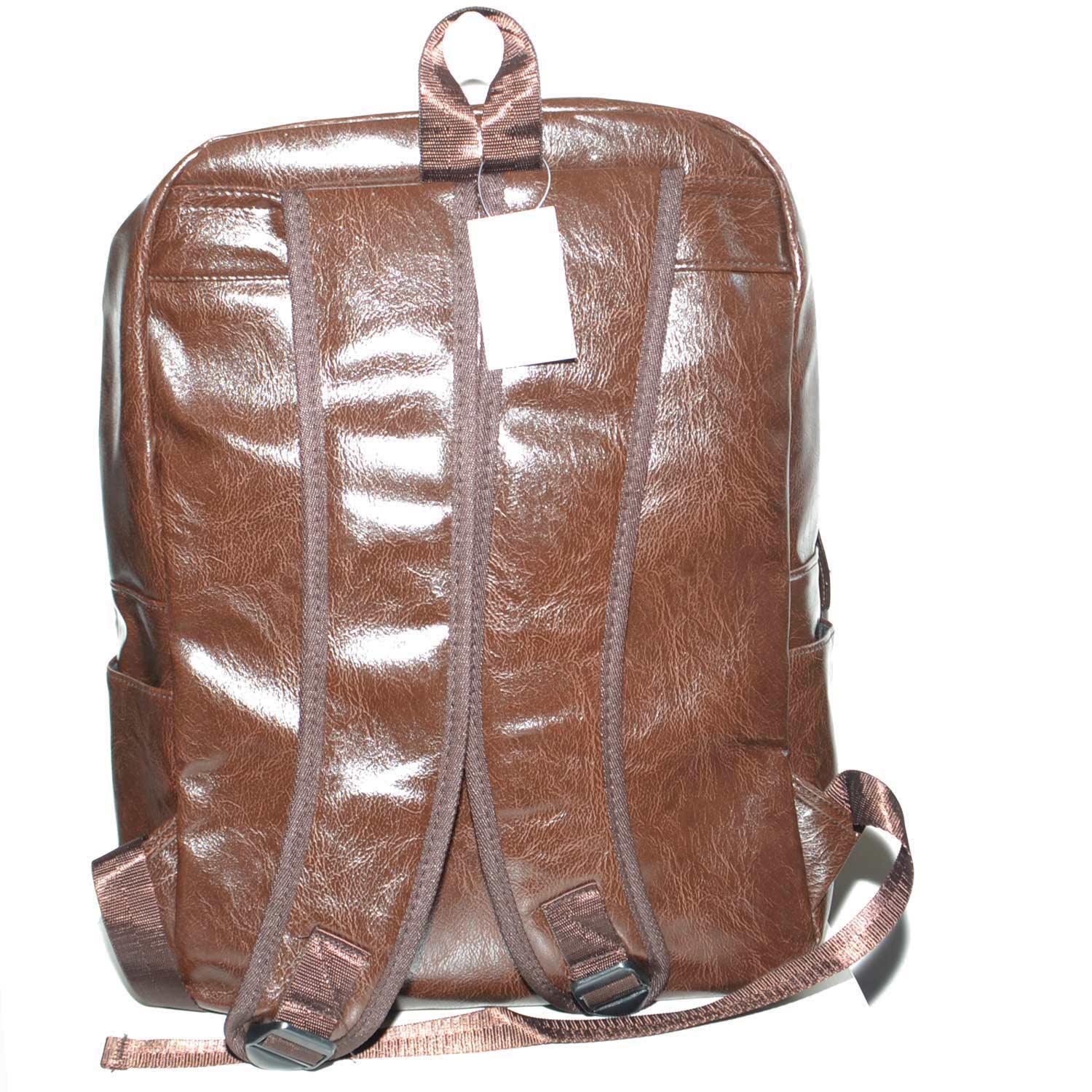 Zaino marrone in ecopelle morbida e liscia di alta qualità e uno stile inconfondibile.