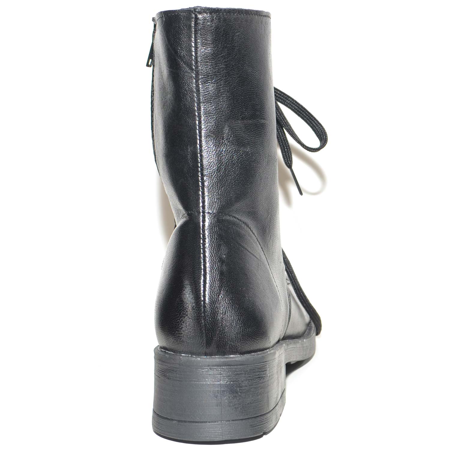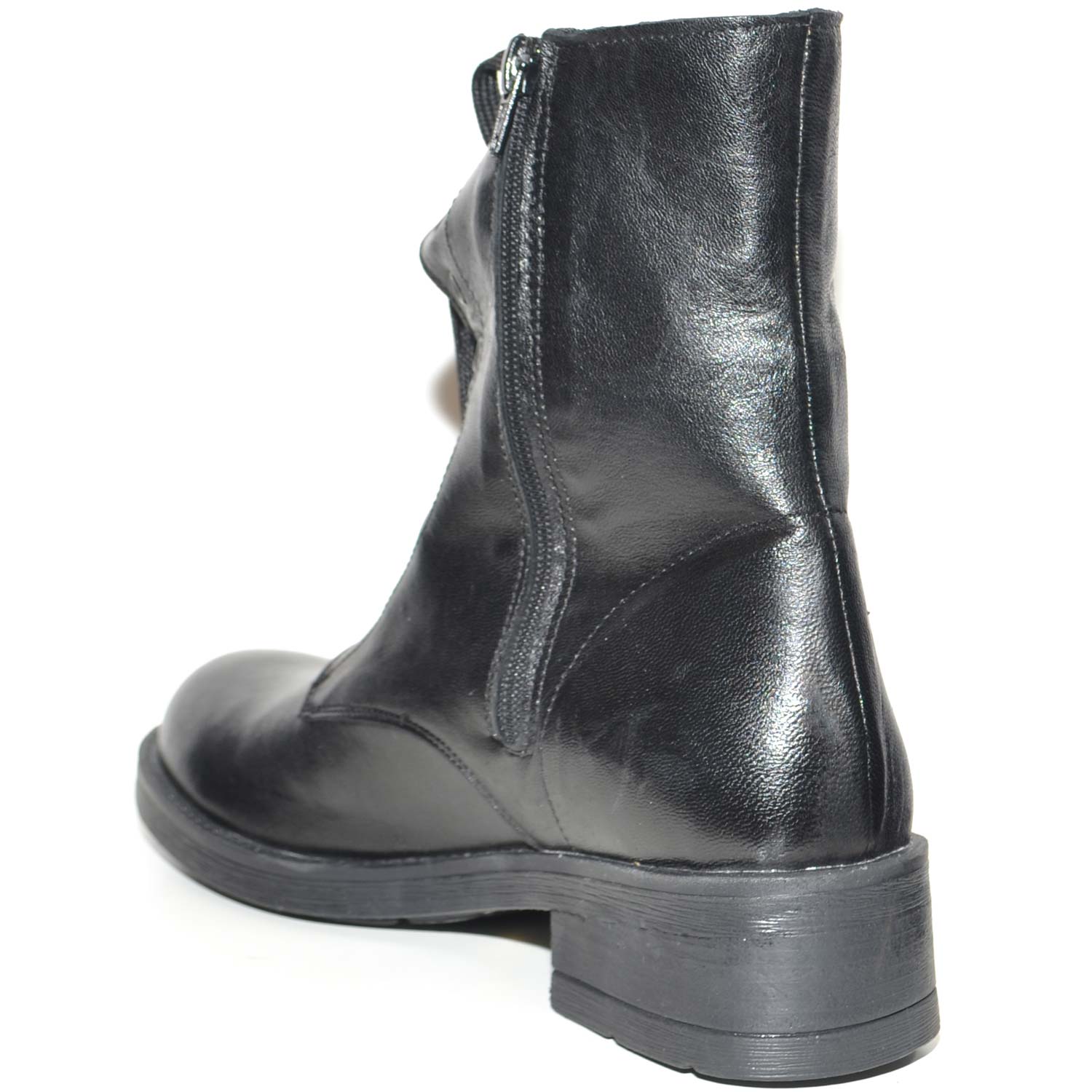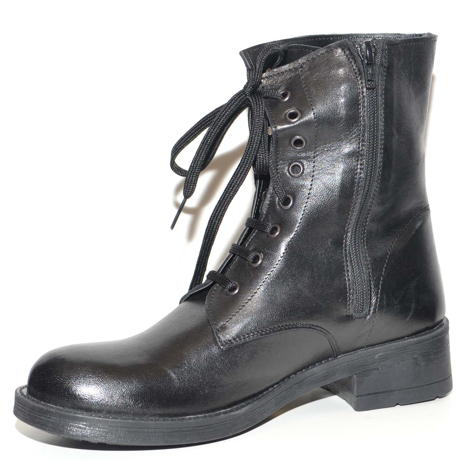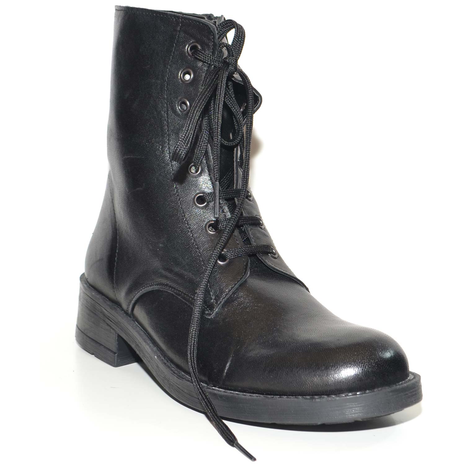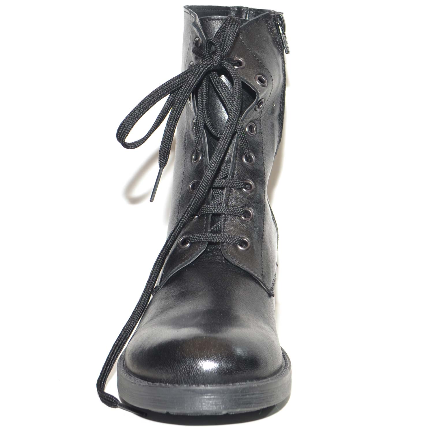 Scarpe anfibio donna nero in vera pelle made in italy linea basic fondo gomma light gambale lacci e zip