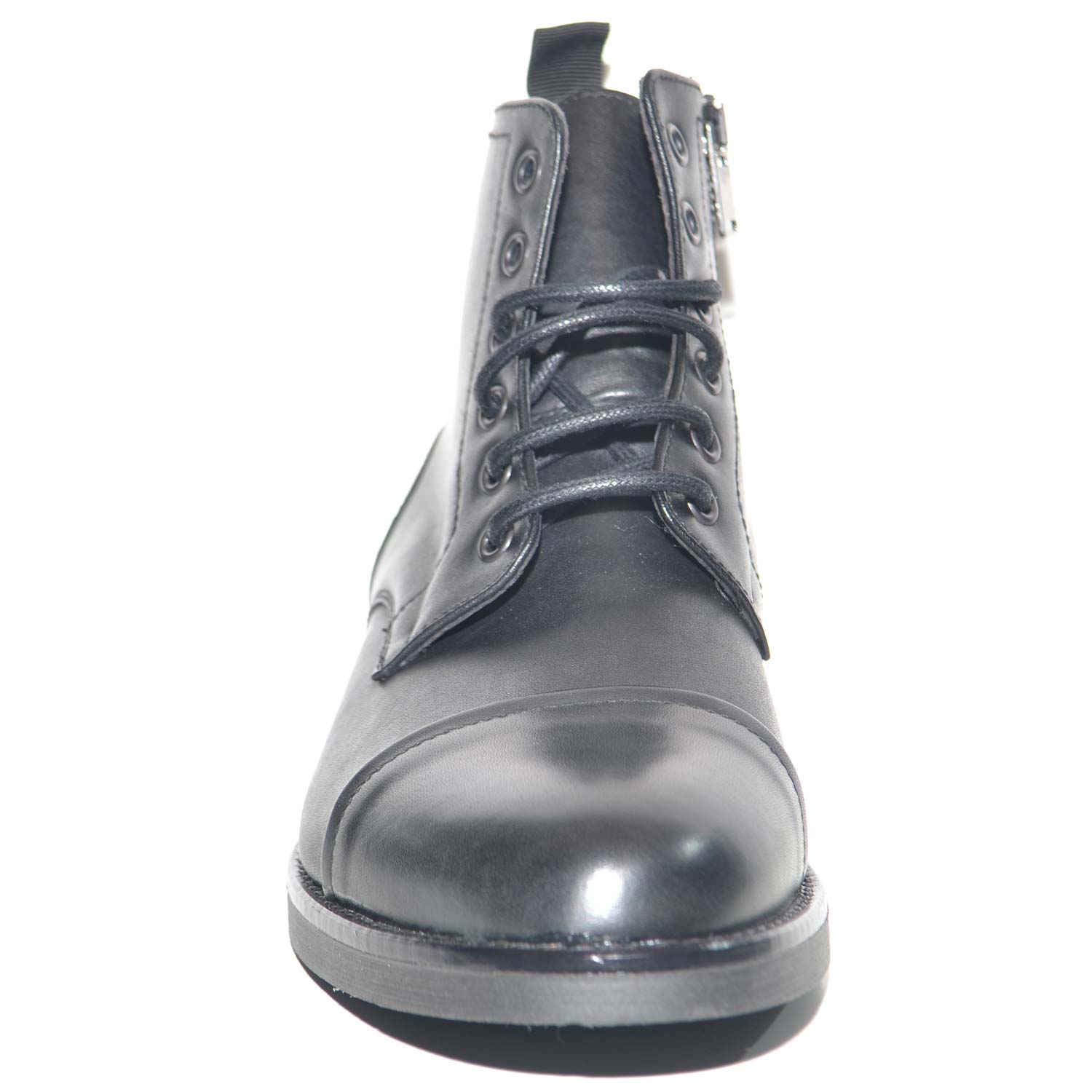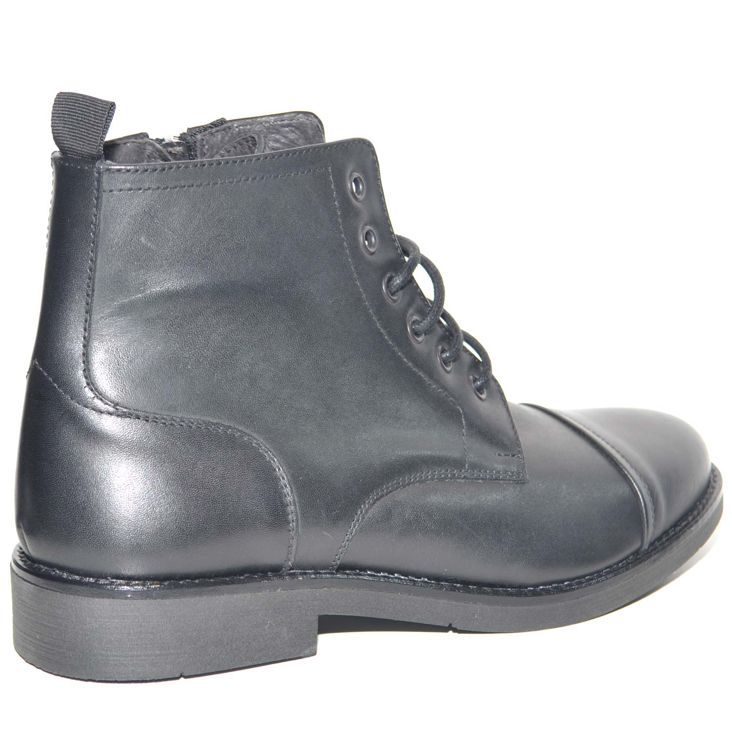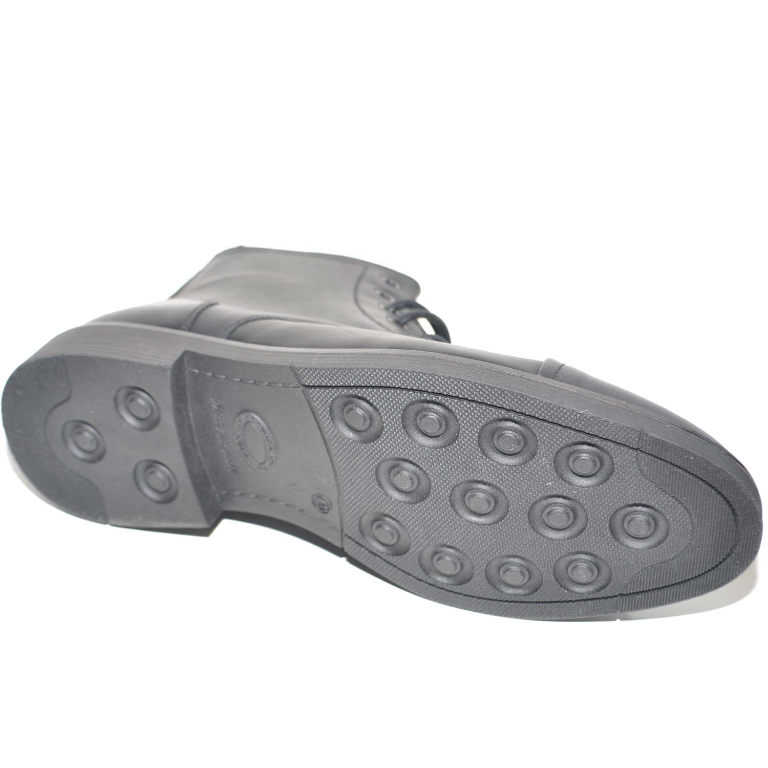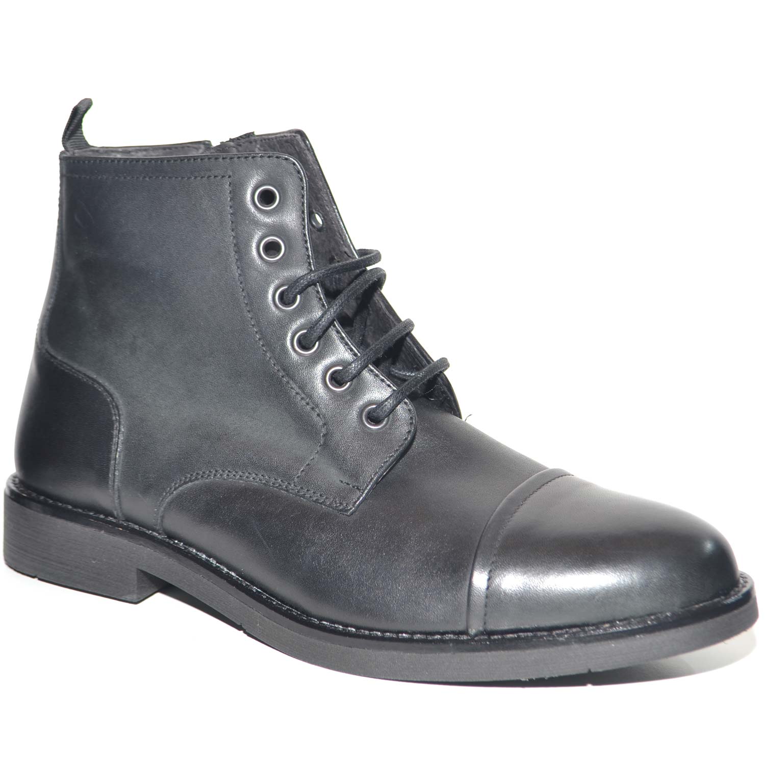 Anfibio vintage in vera pelle nero spazzolato fondo gomma lacci in tinta chiusura con zip moda tendenza handmade