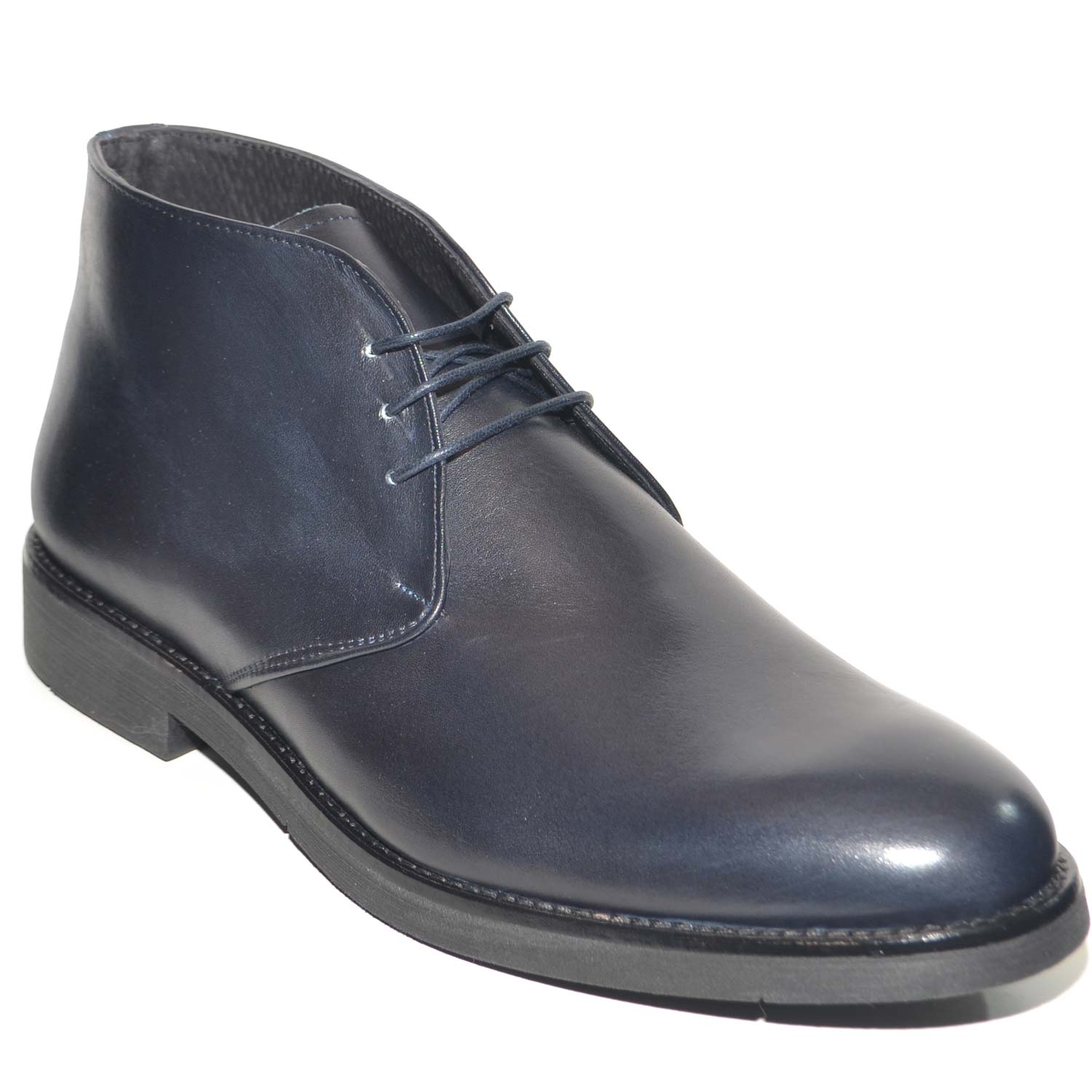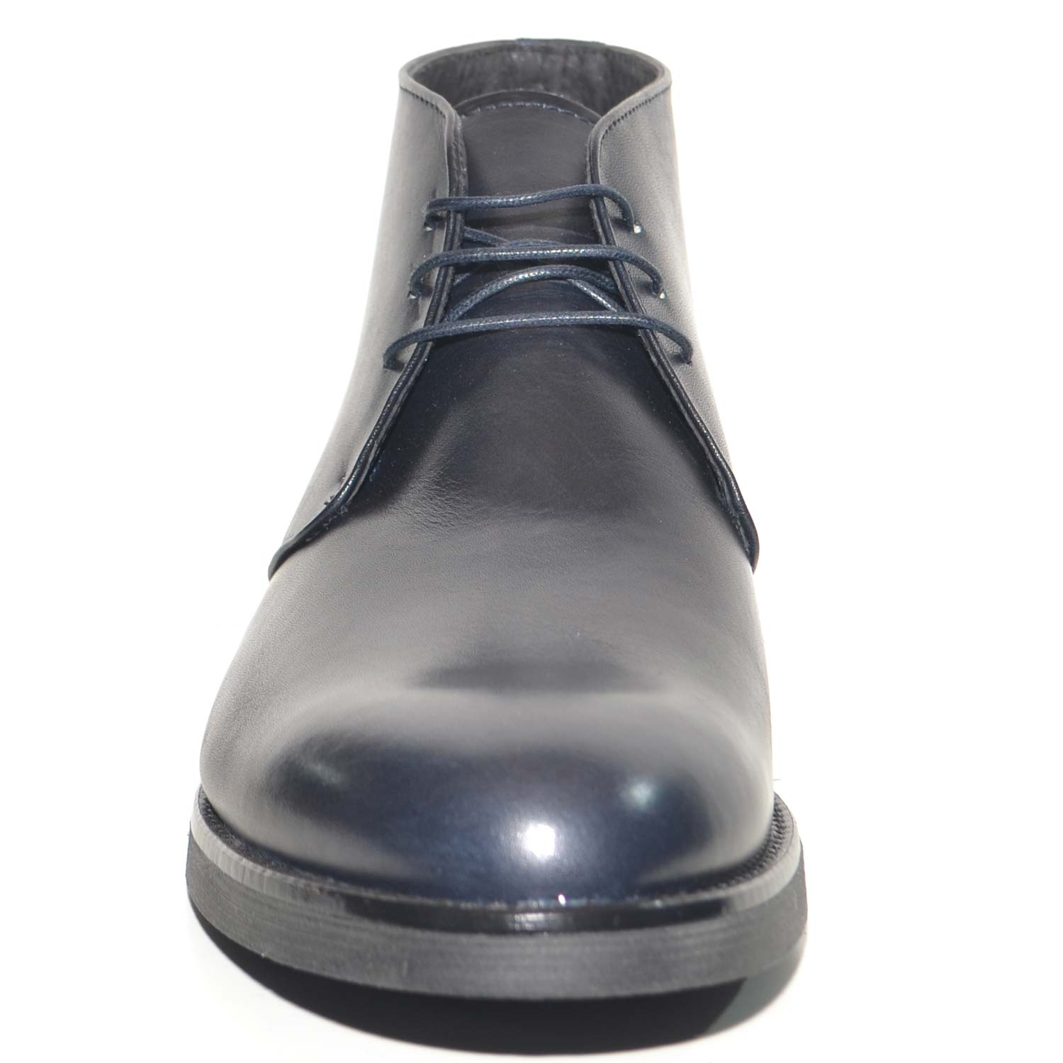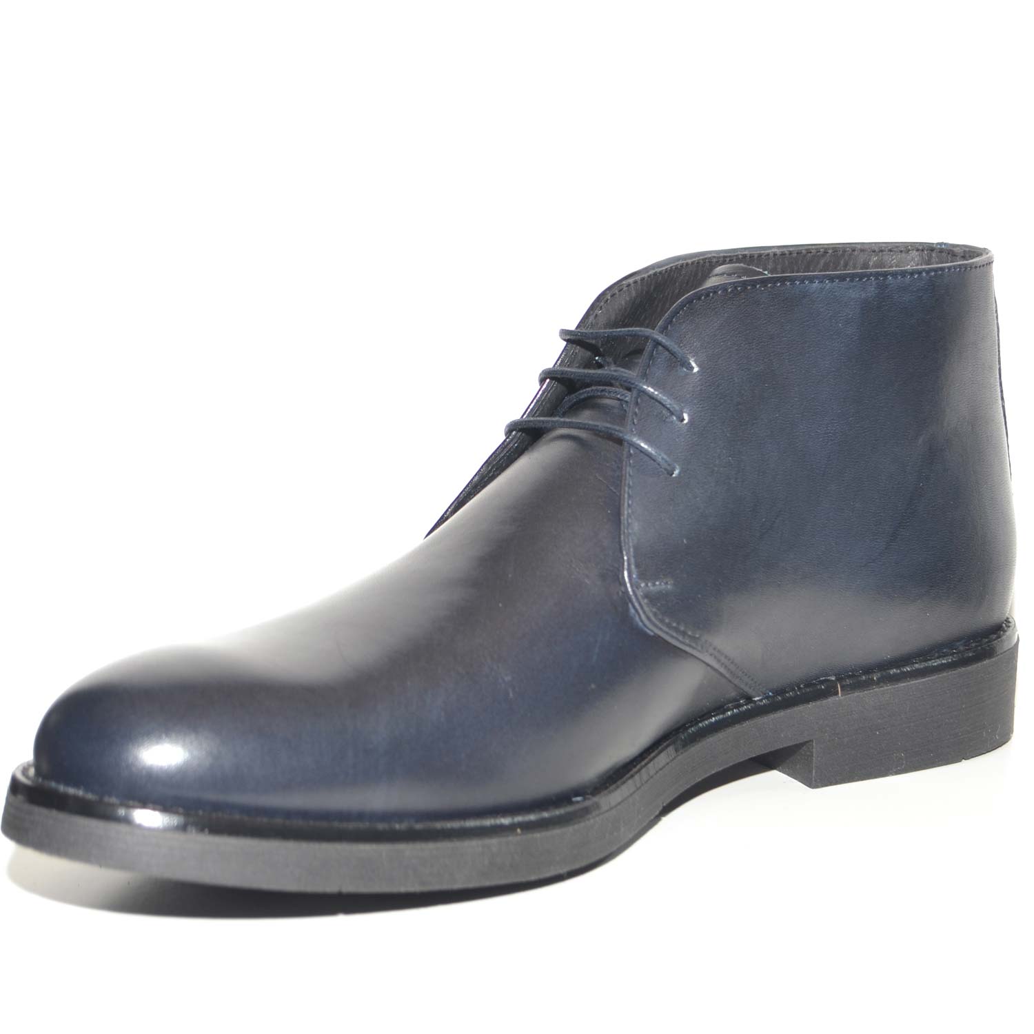 Polacchino uomo invernale in vera pelle vitello blu comfort basic stile italiano scarpe da professionista handmade