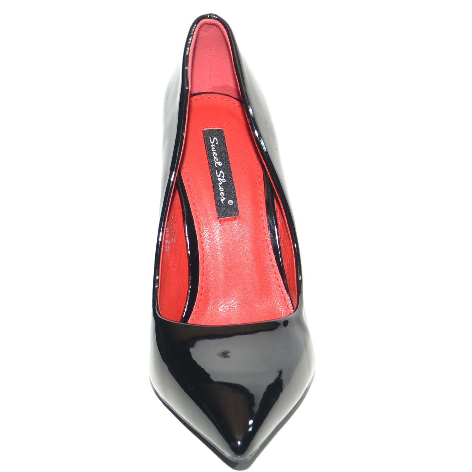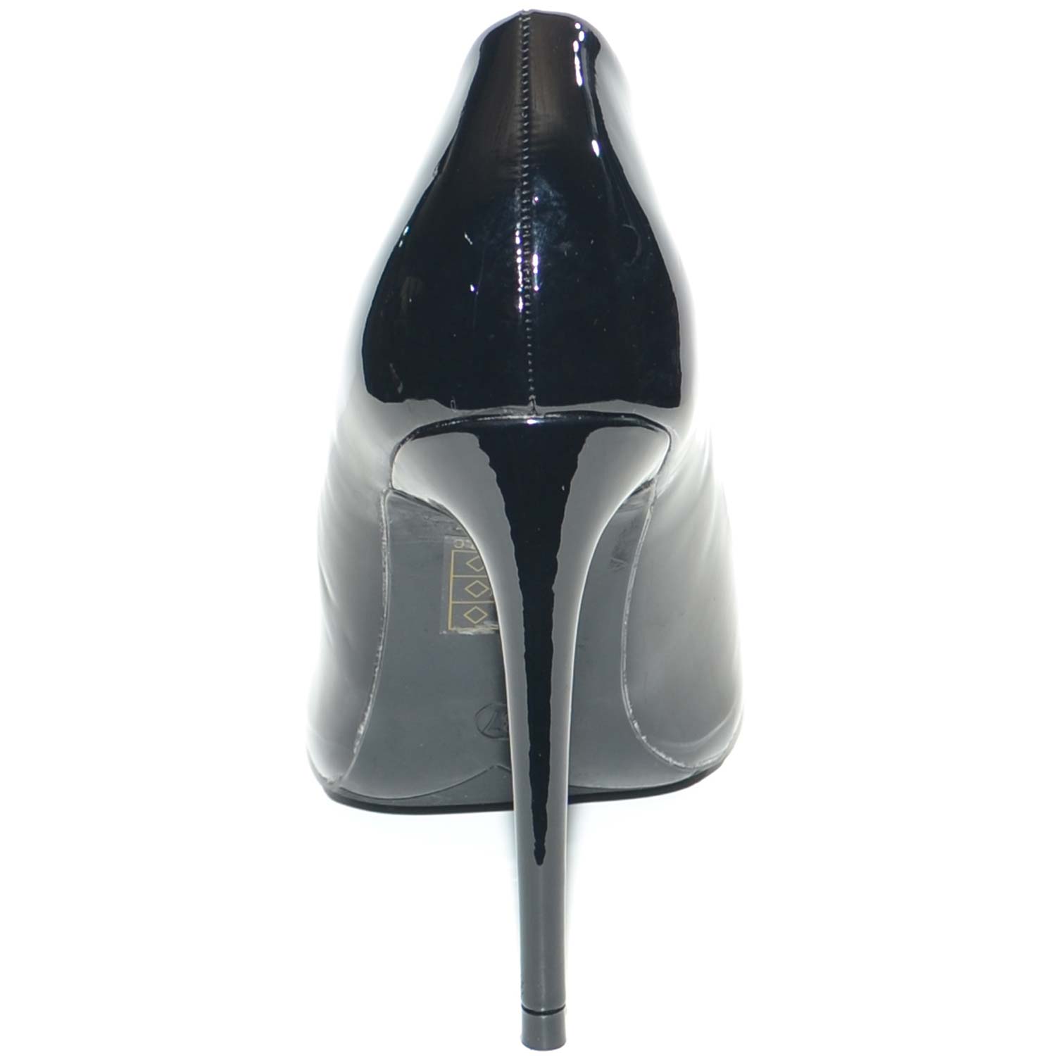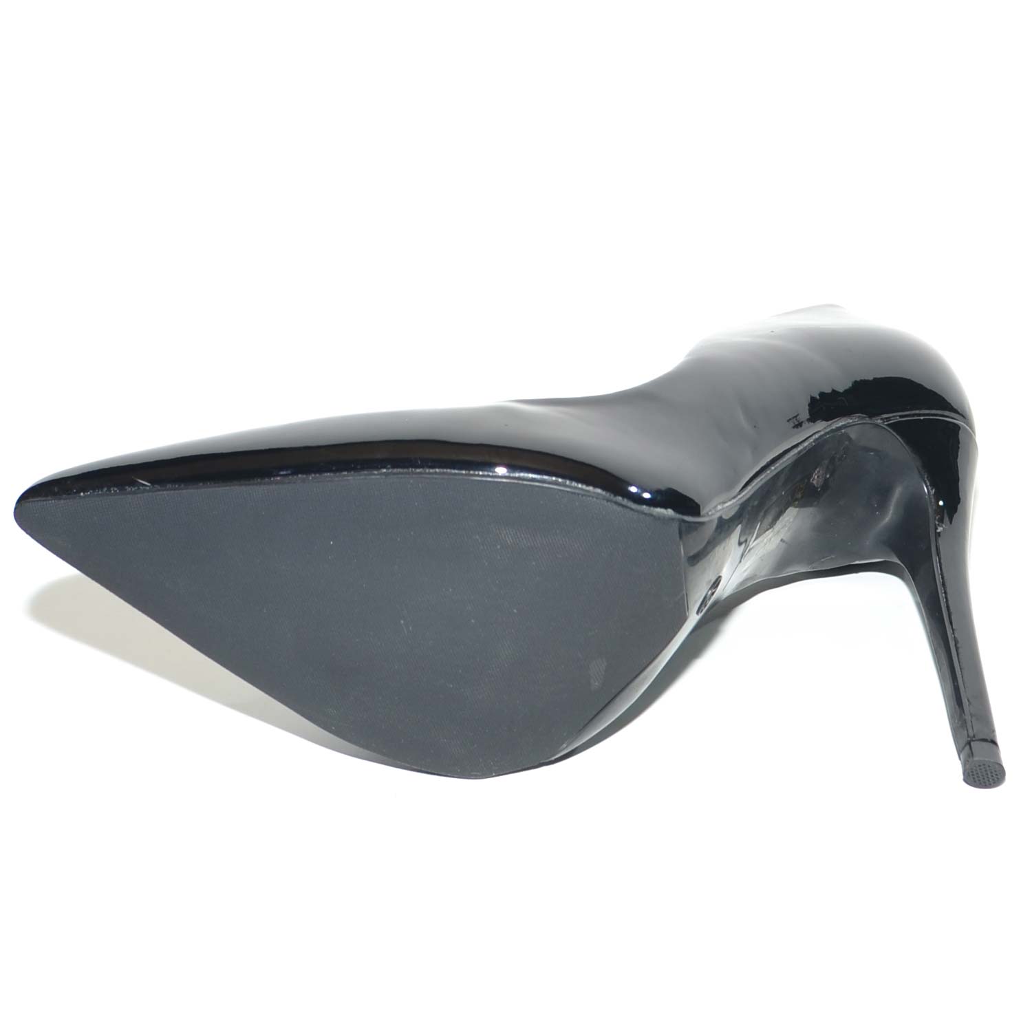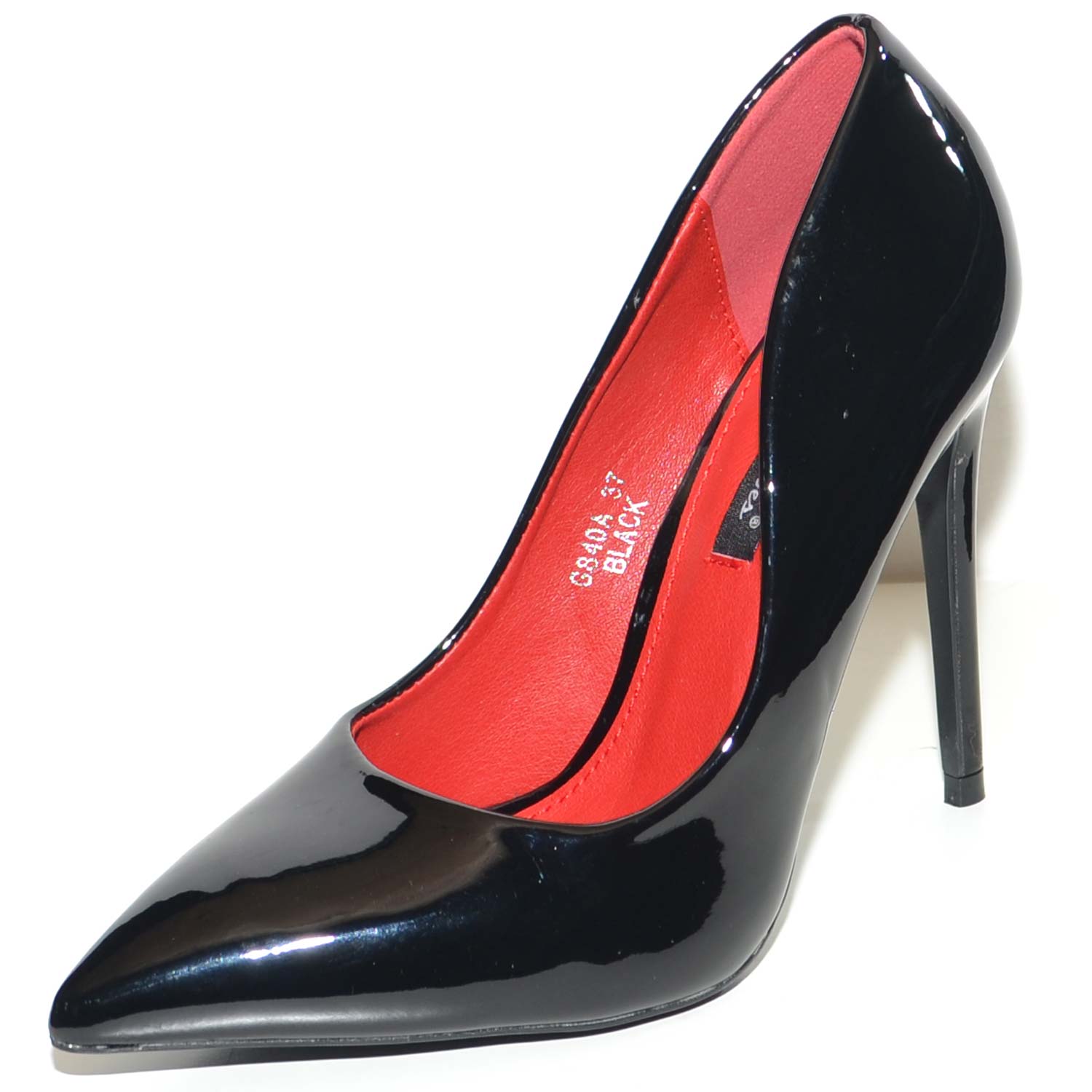 Decollete donna nero linea basic in vernice nero tacco a spillo 12 cm elegante interno rosso