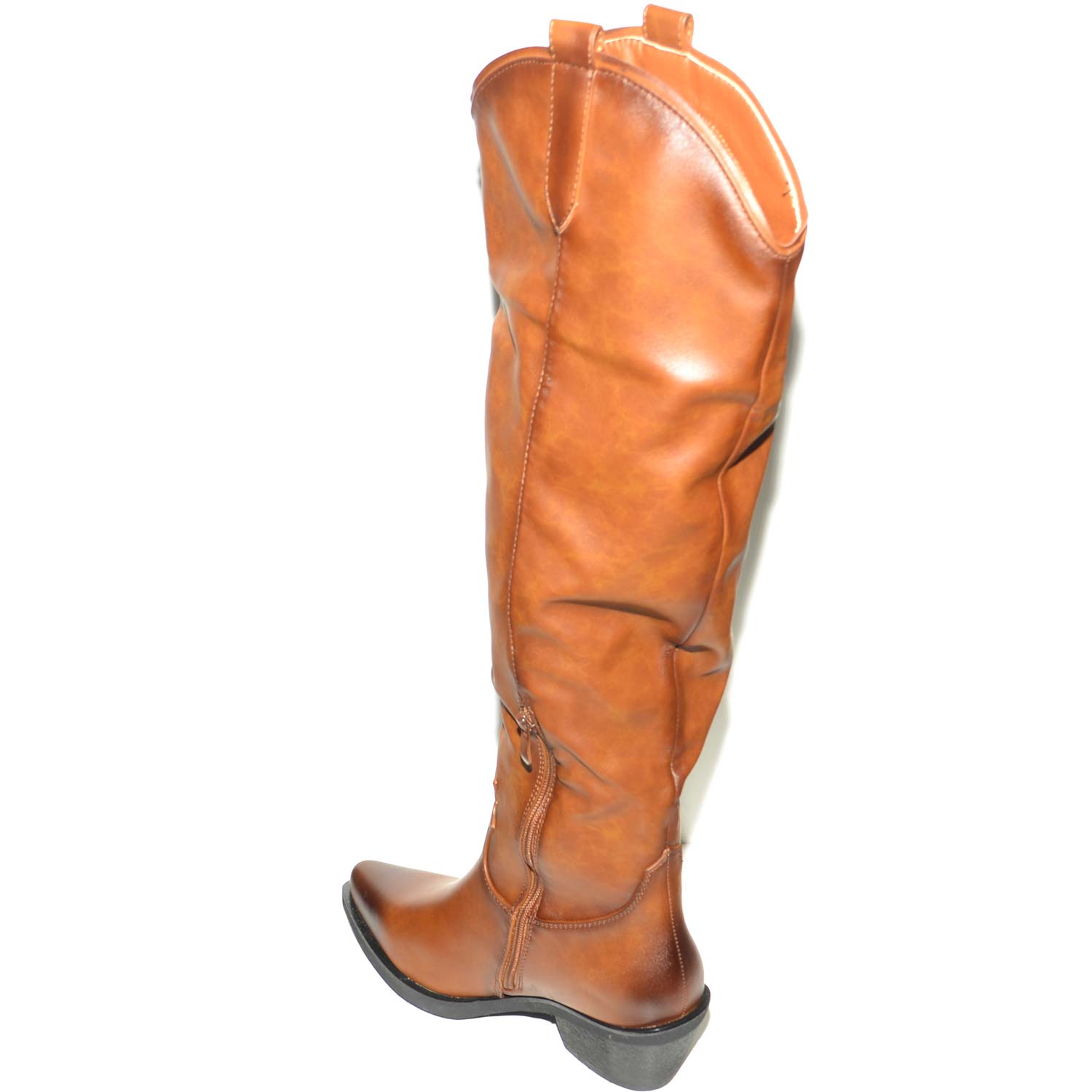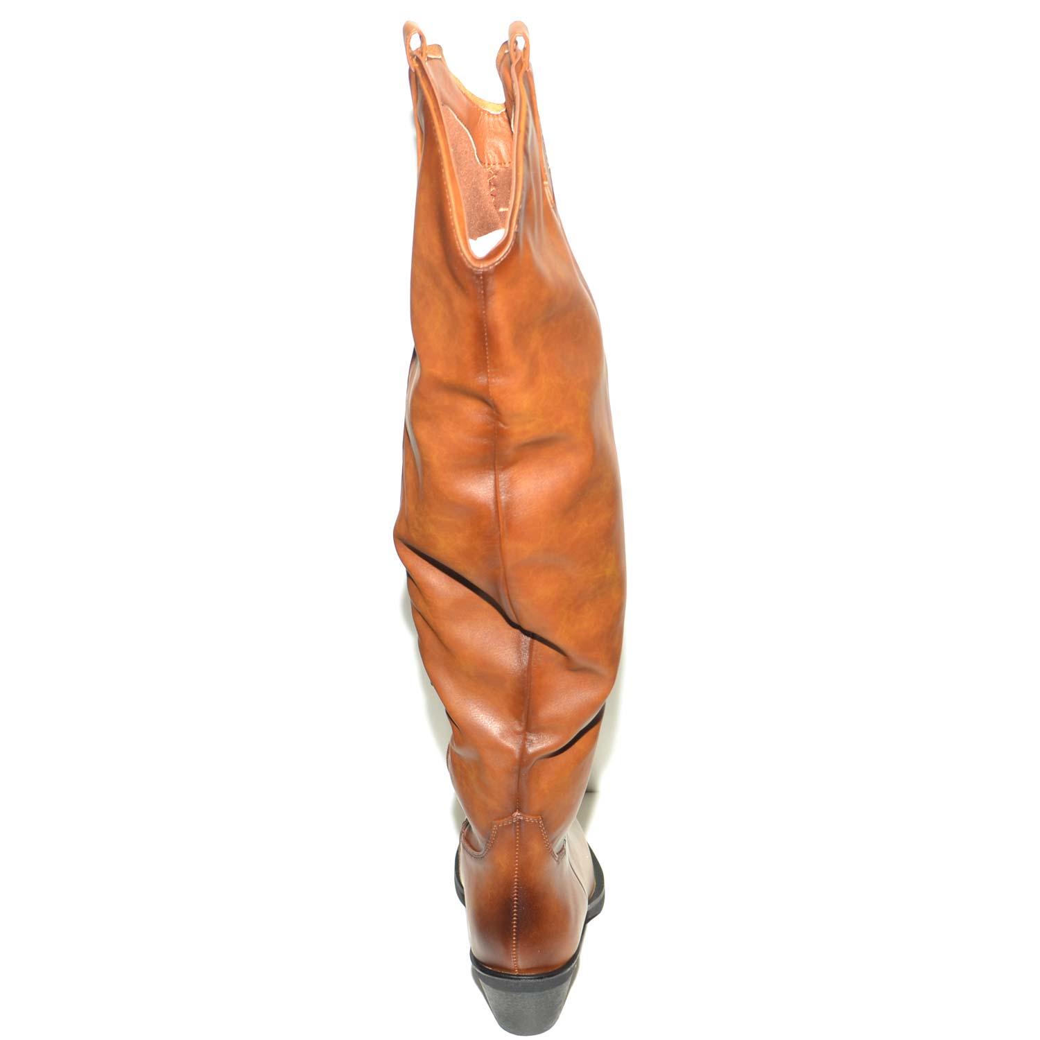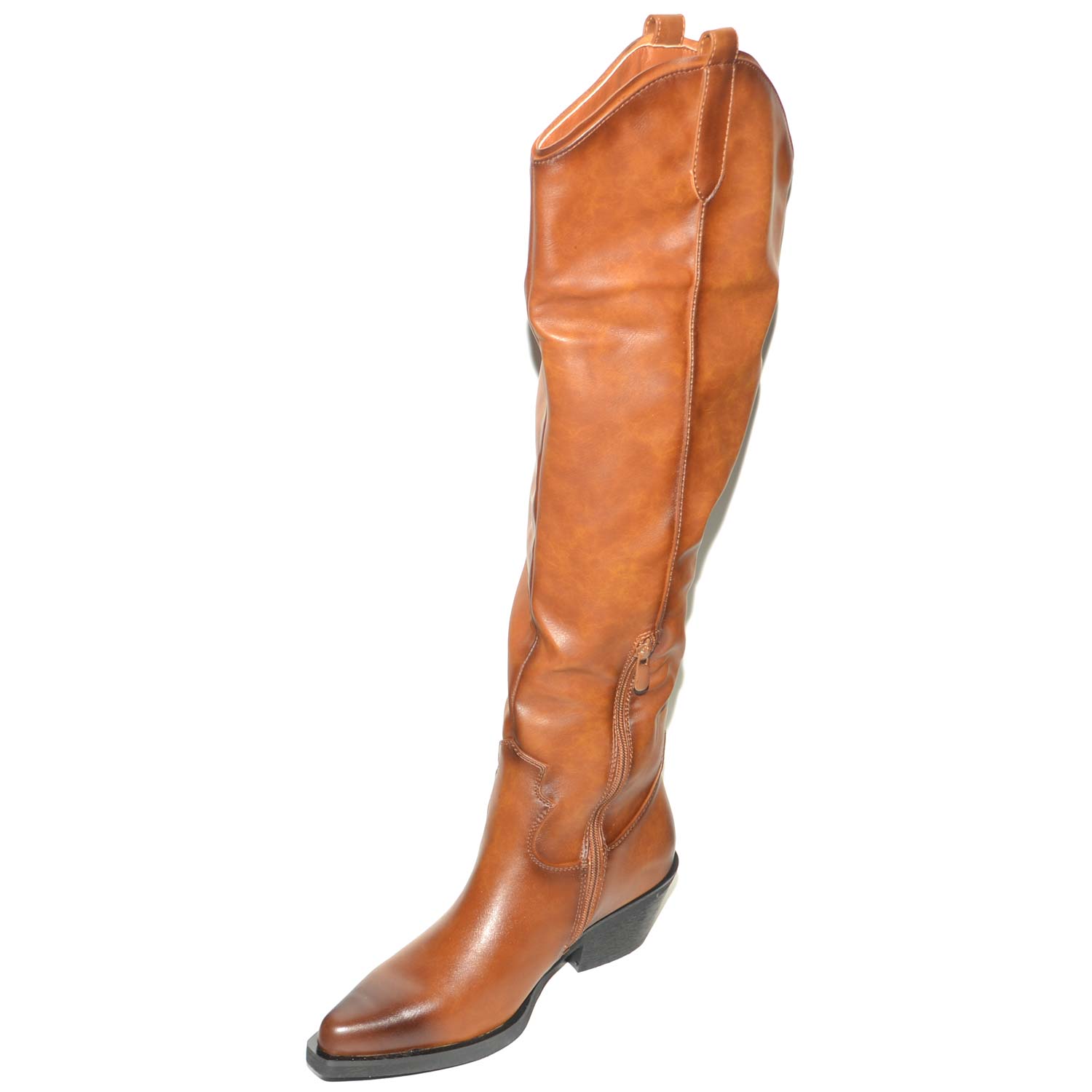 Camperos alti da donna cuoio fino al ginocchio a punta stile texano moda cowboy tendenza moda spazzolati