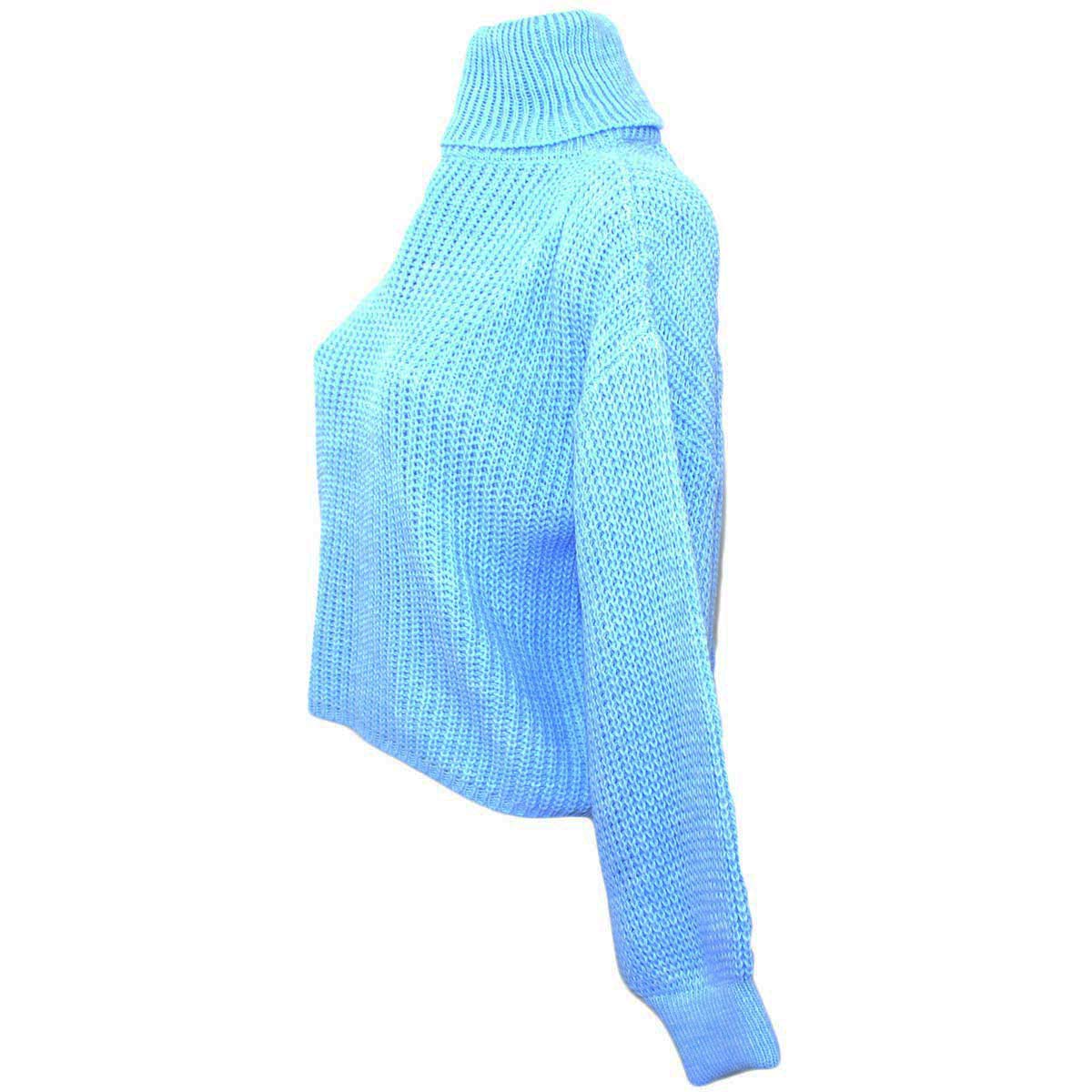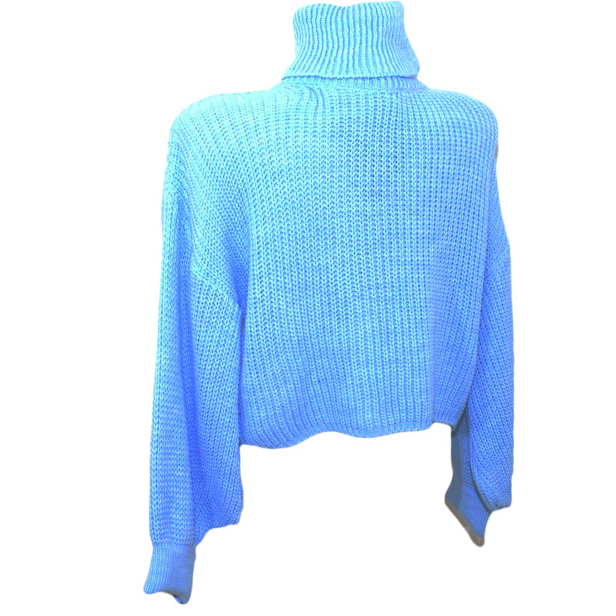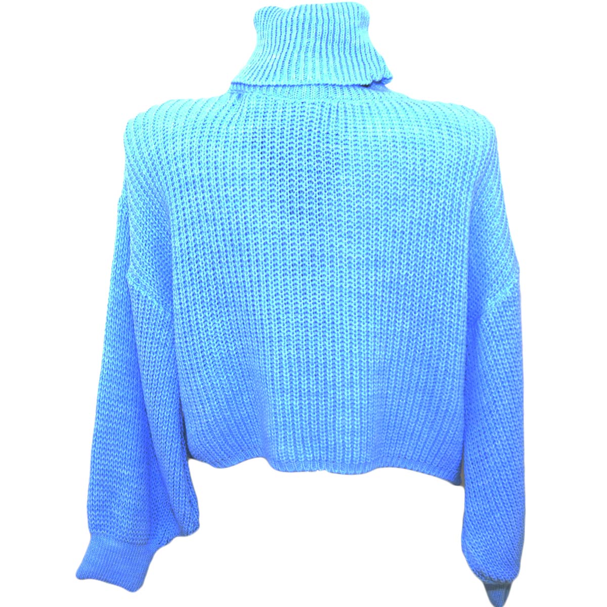 Maglioncino dolcevita midi donna polvere a collo alto maniche a sbuffo tessitura larga colourfull moda tendenza