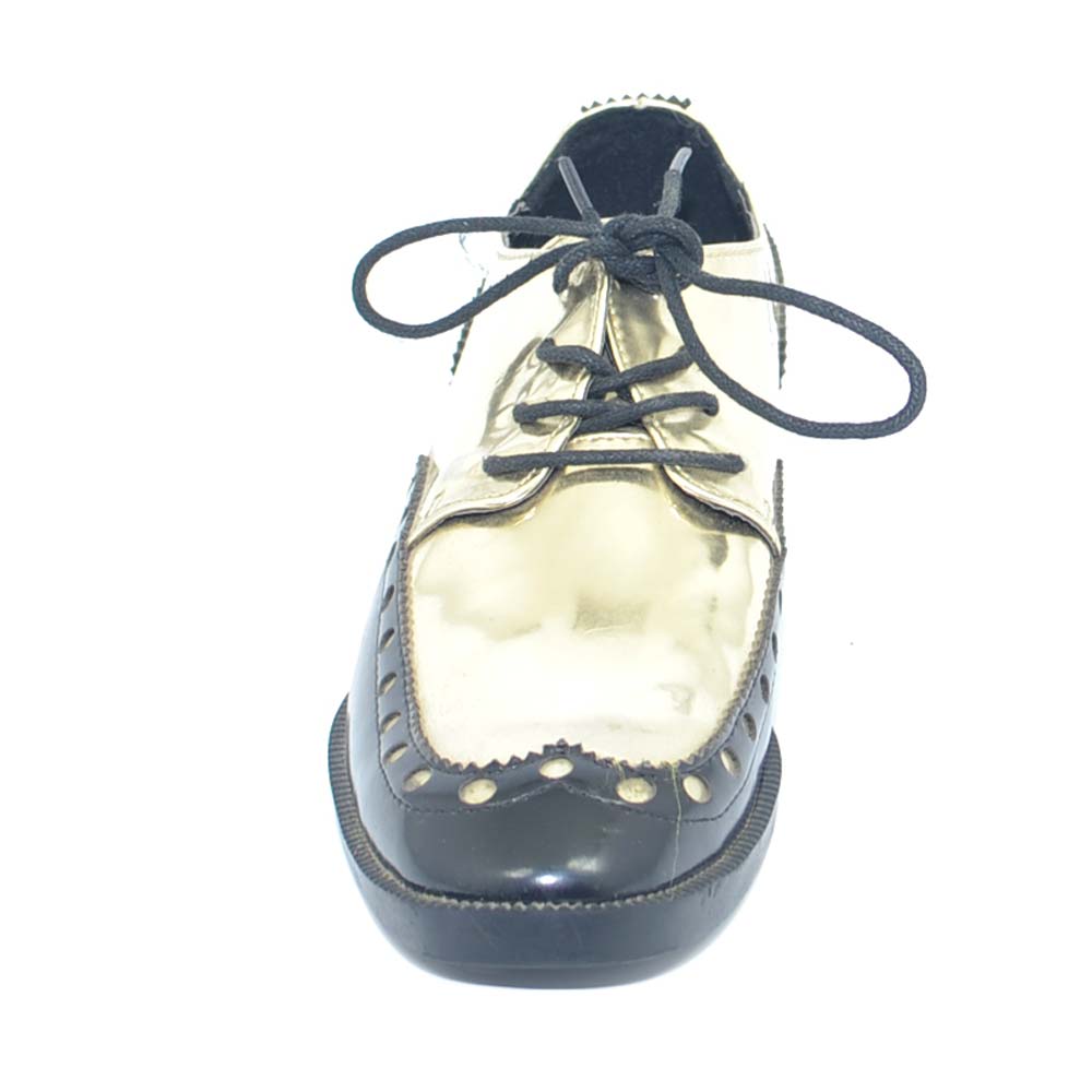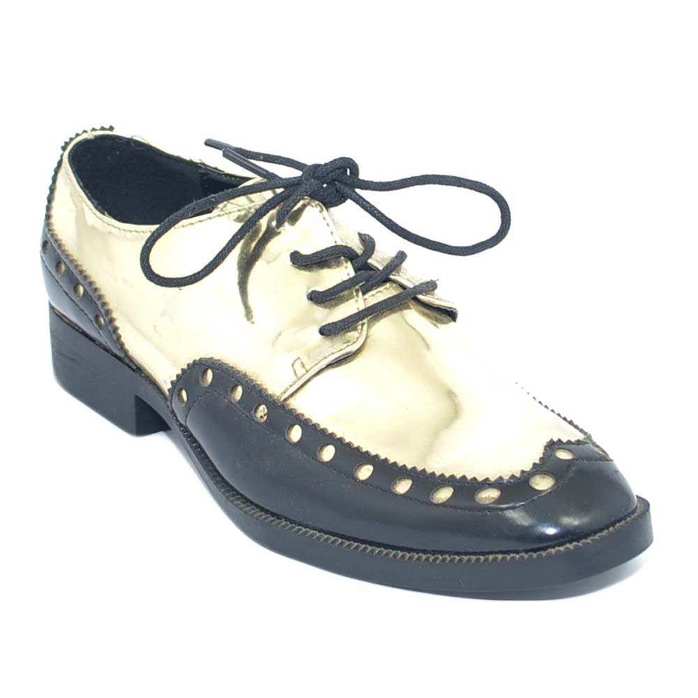 Stringate donna inglesi bicolore a punta quadrata linea vintage oro e nera fondo basso in gomma