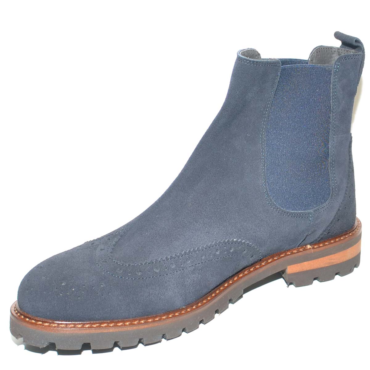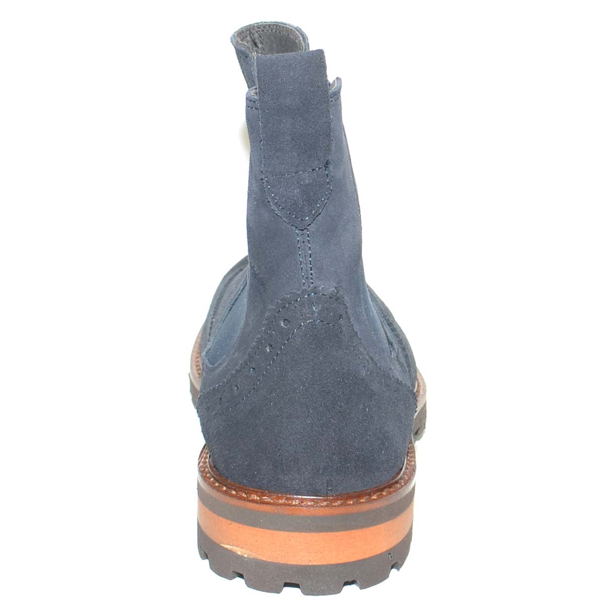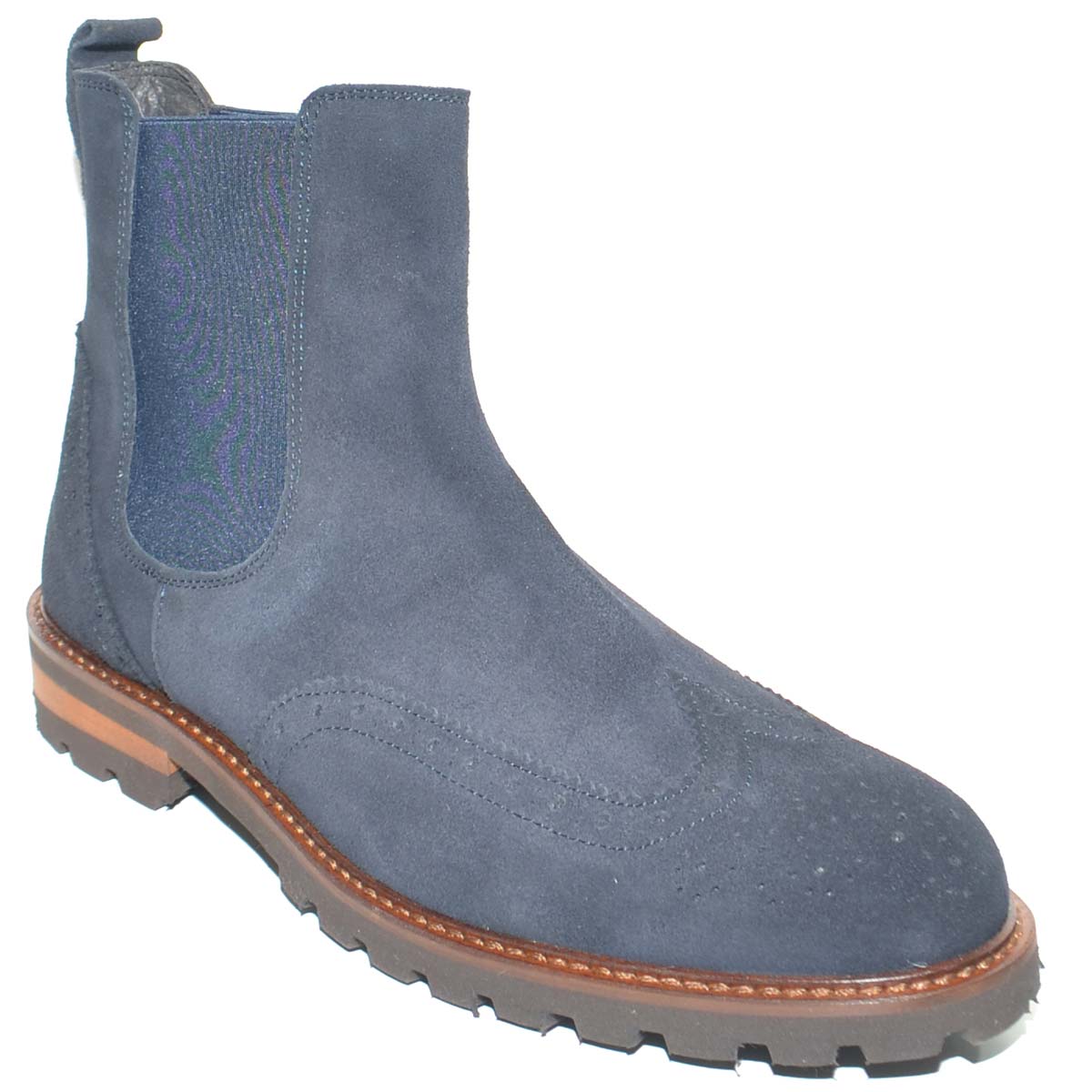 Beatles uomo stivaletto elastico coda di rondine vera pelle blu monogramma alto fondo gomma made in italy handmade.