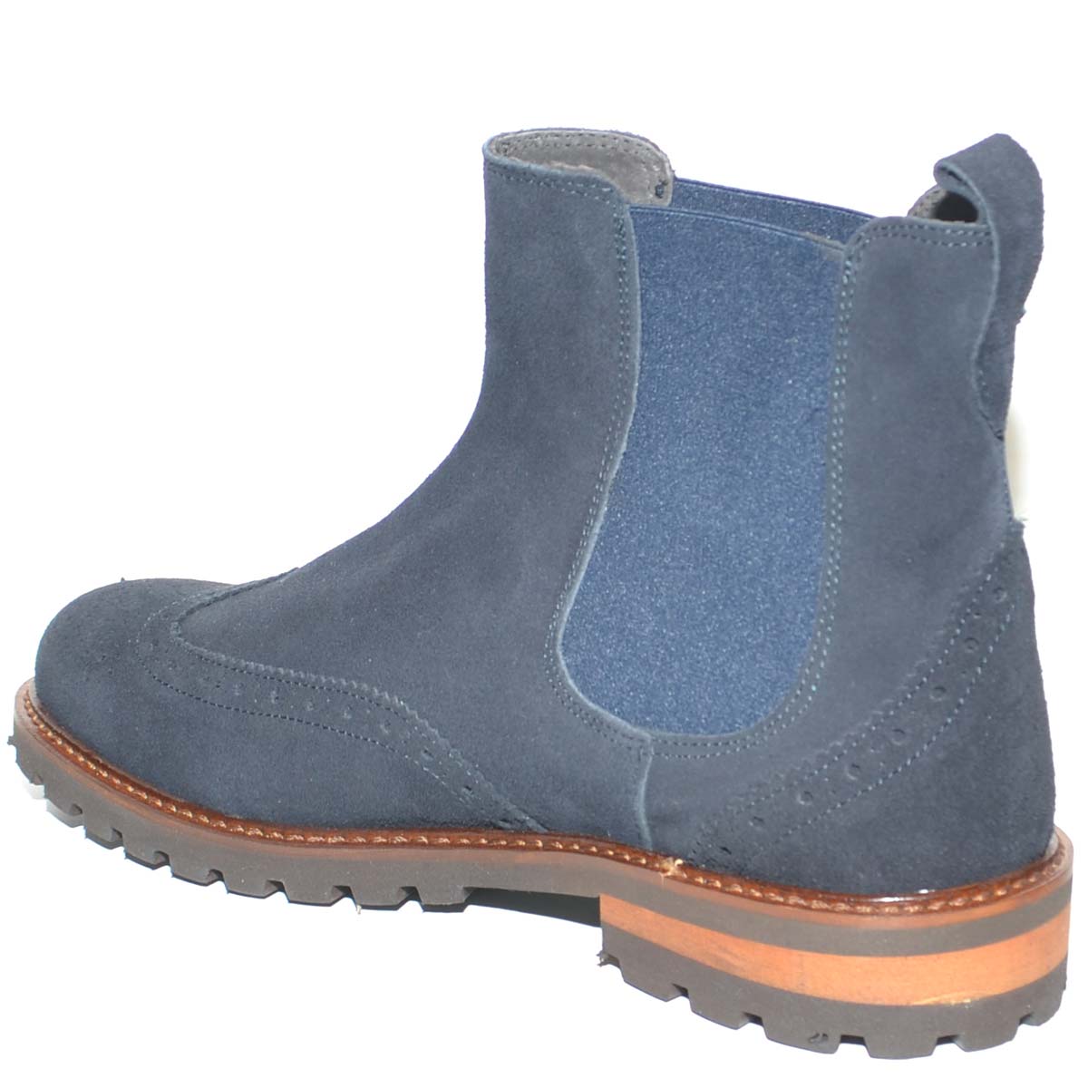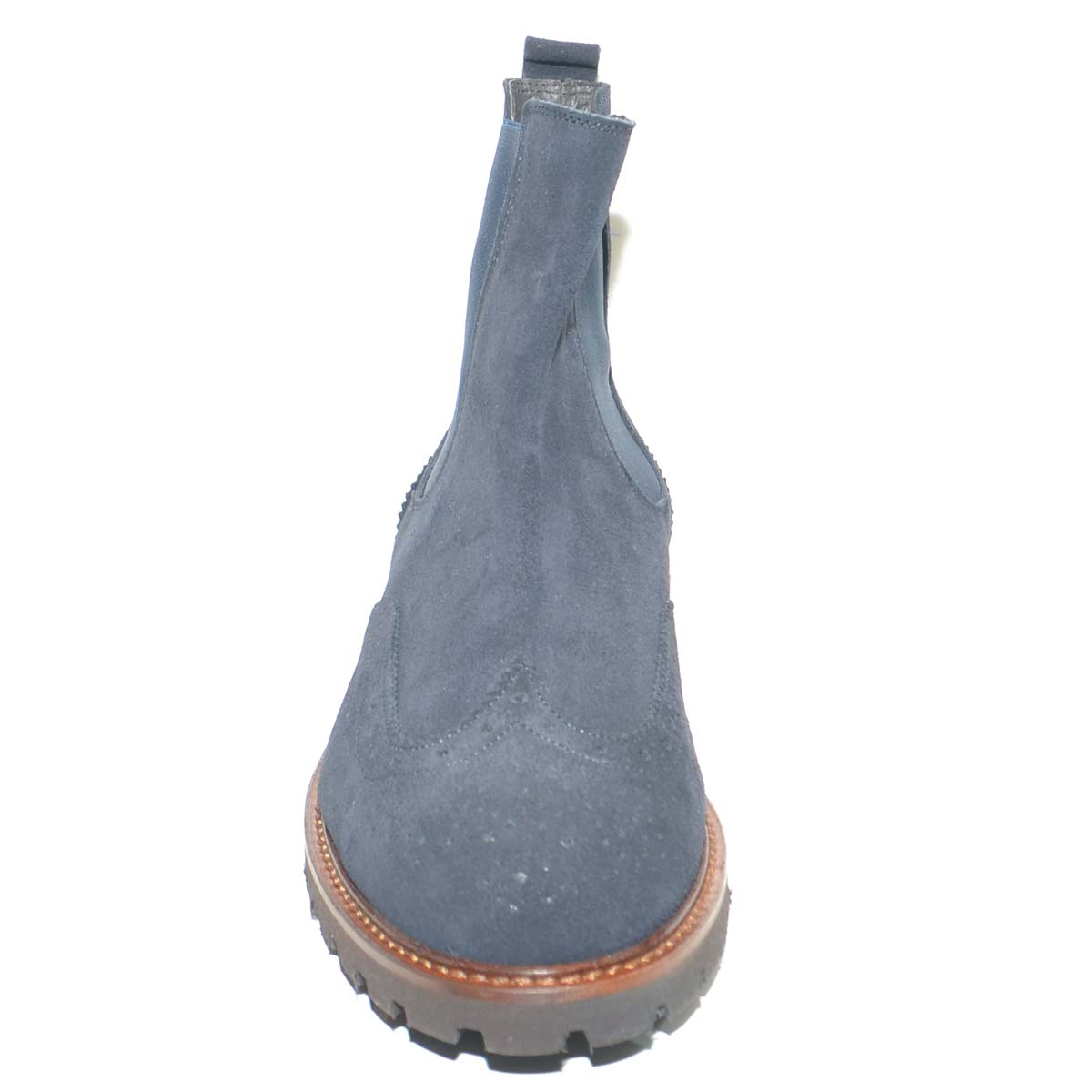 Beatles uomo in vera pelle camoscio blu con elastico con fondo in gomma light e guardolo in legno handmade in italy