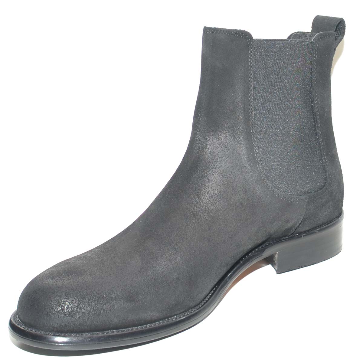 Beatles uomo stivaletto LS elastico vera pelle scamosciata nero suola alta zigrinata Luxury made in italy.