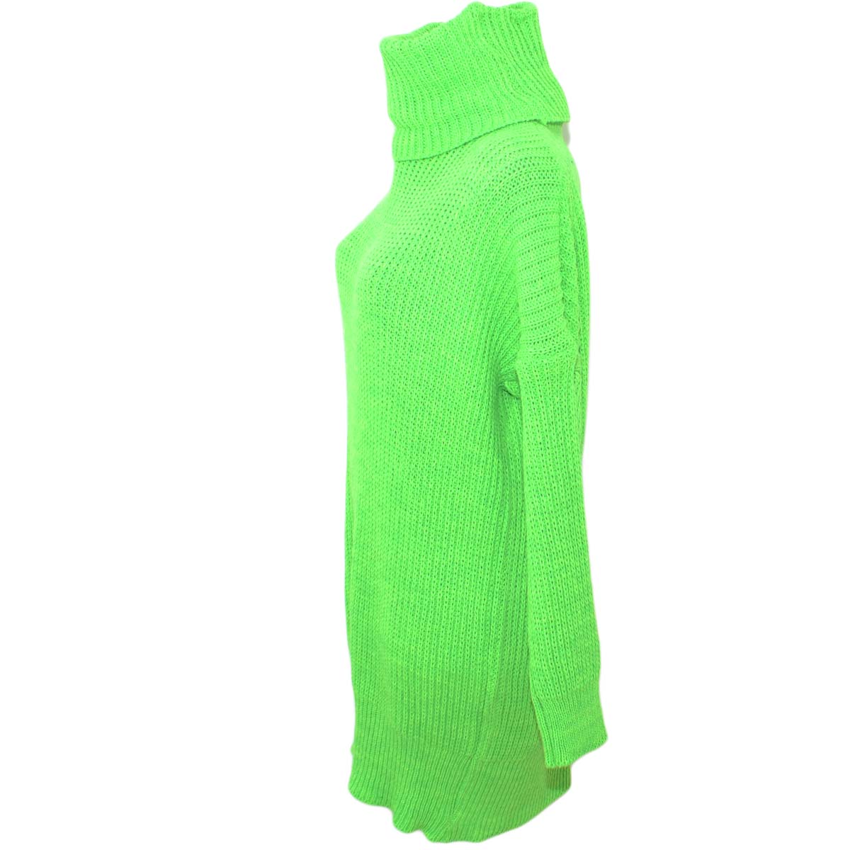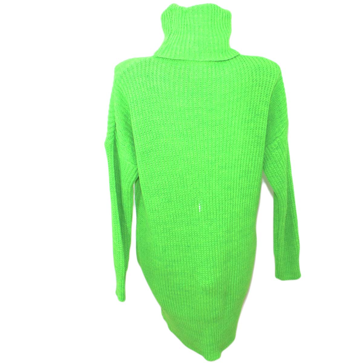 Maxi pull dolcevita donna verde fluo lungo vestitino a collo alto maniche lunghe tessitura larga moda tendenza