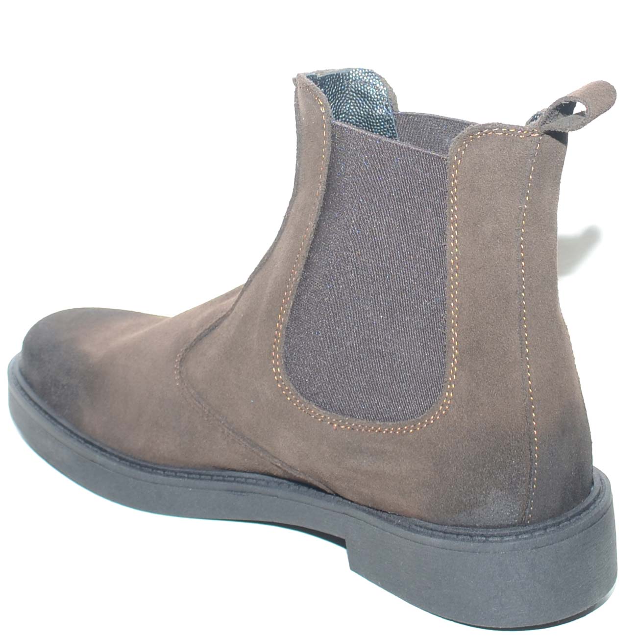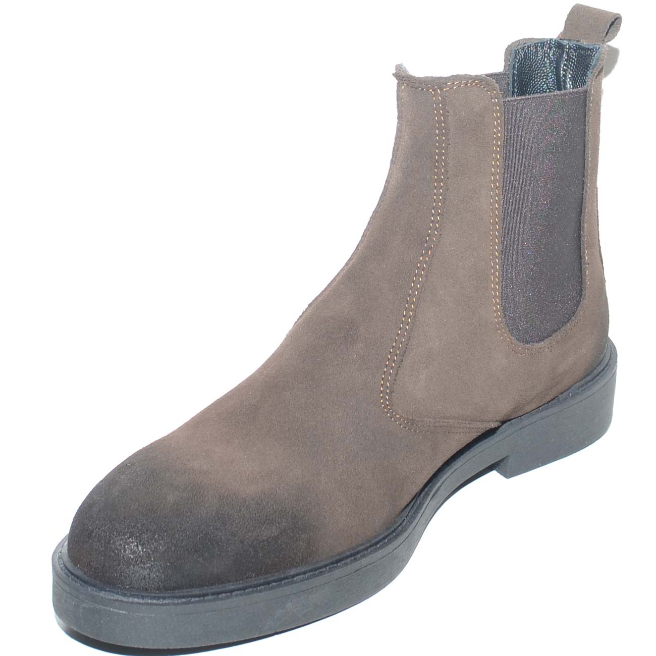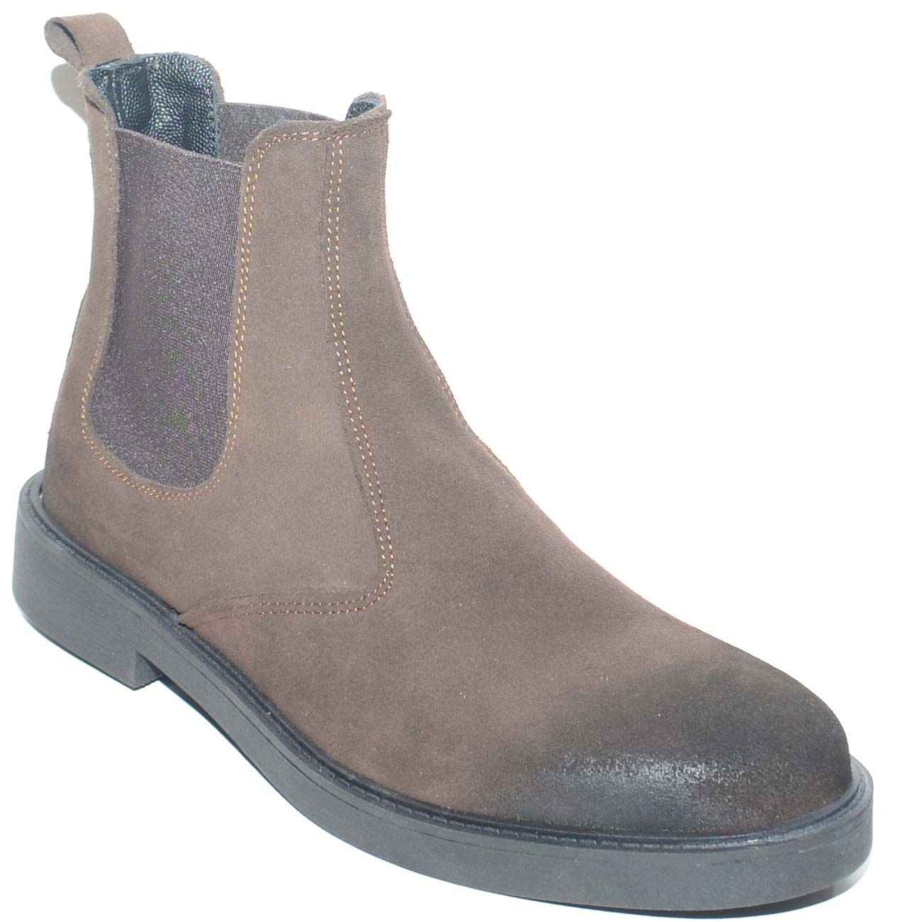 Beatles uomo stivaletto elastico chelsea vera pelle camoscio marrone fondo gomma made in italy handmade.
