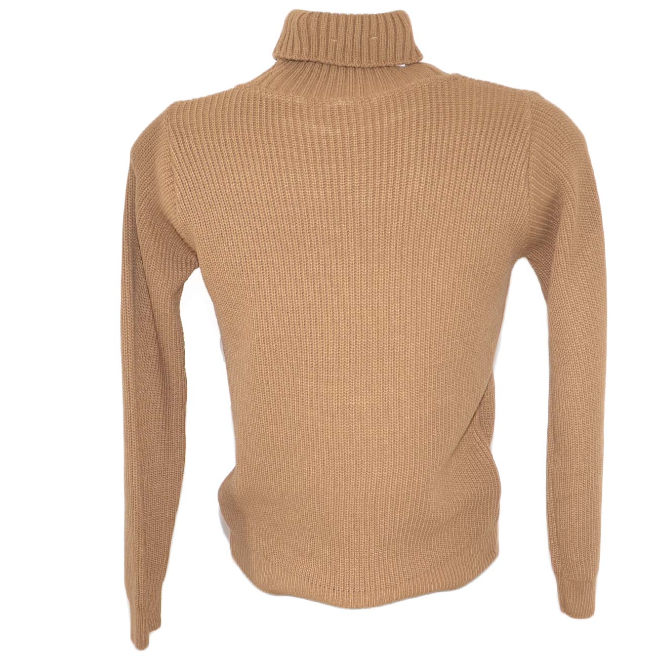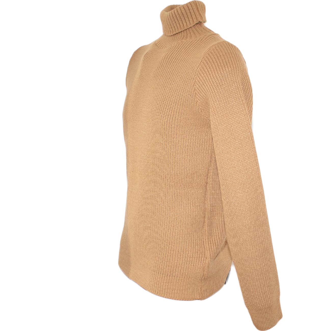 Maglione dolcevita uomo color cammello colletto stretto slim fit ad intessitura larga linea basic caldo e confortevole