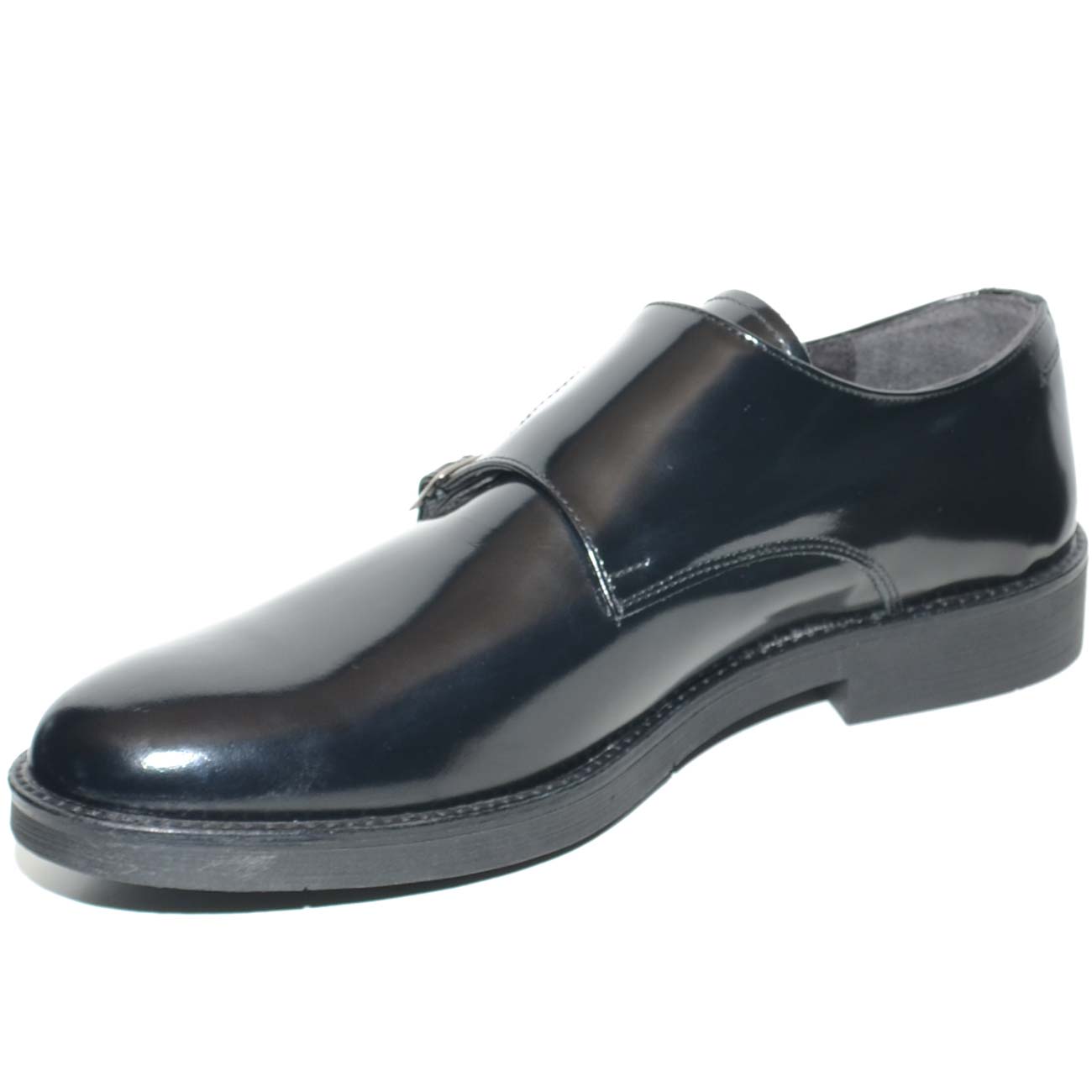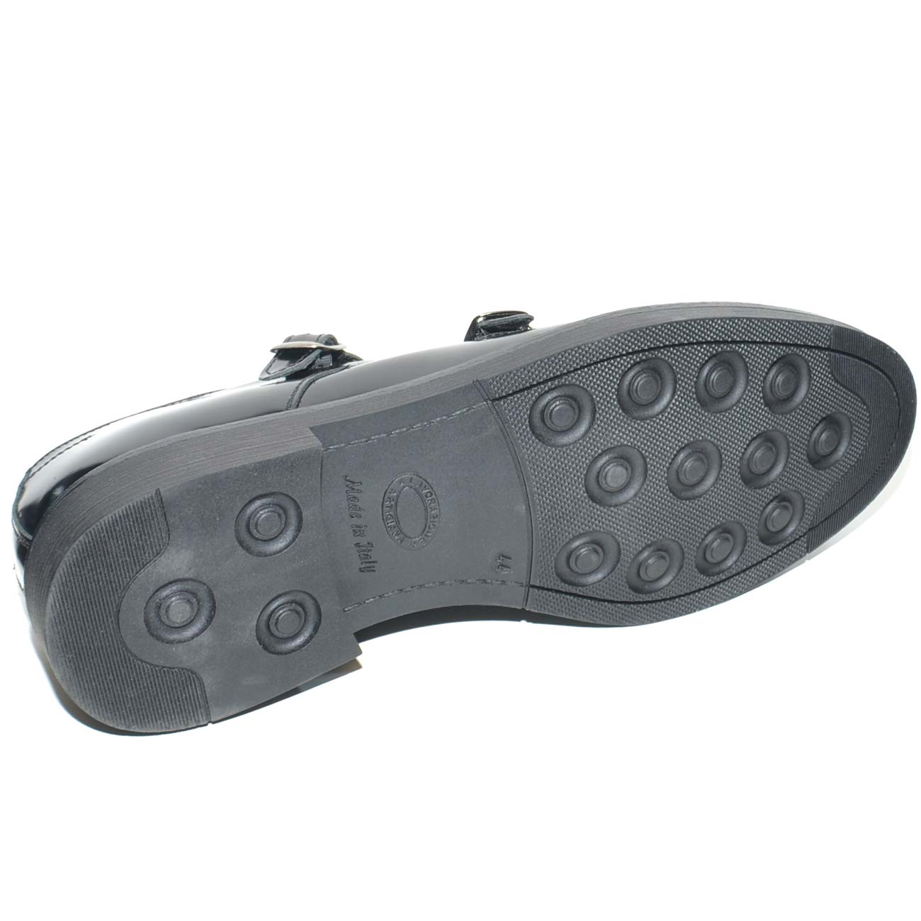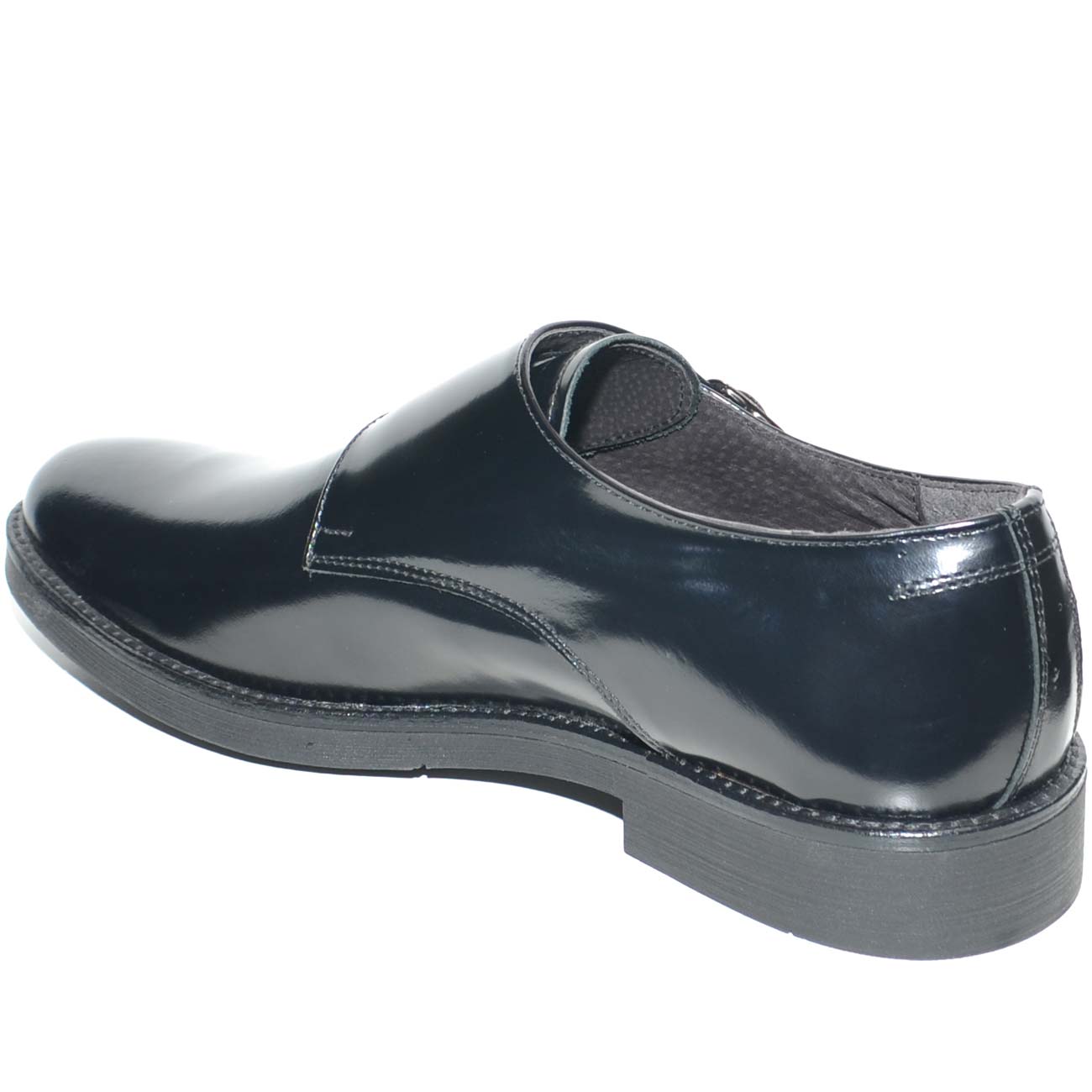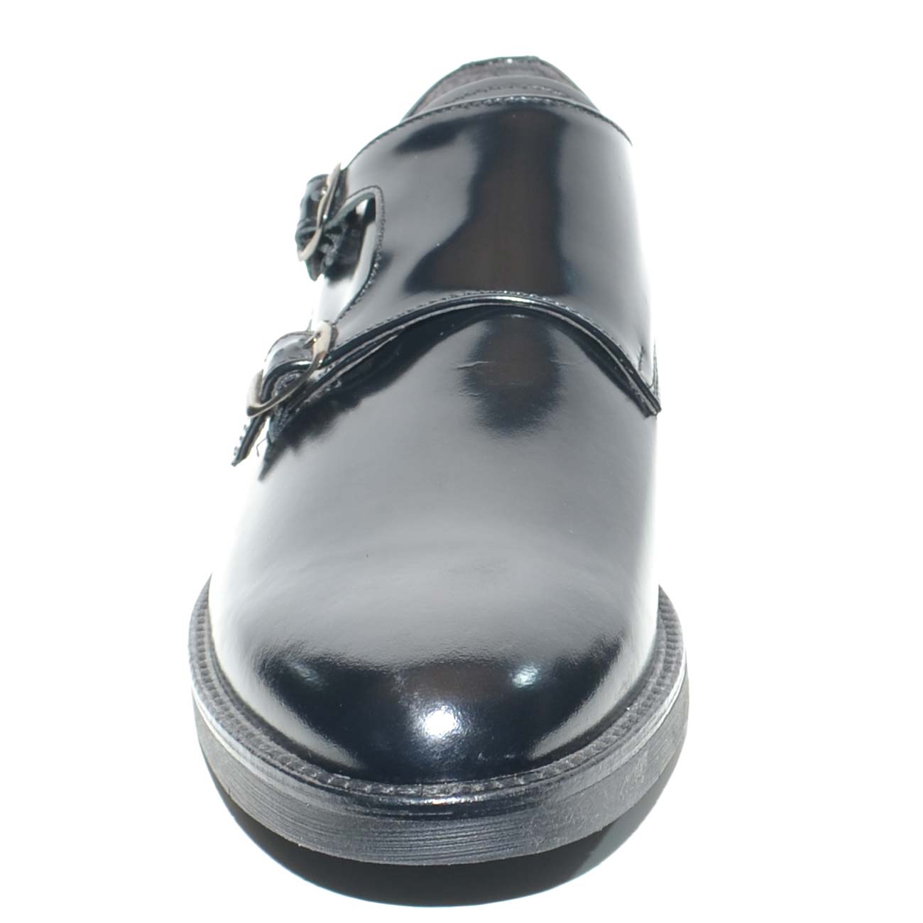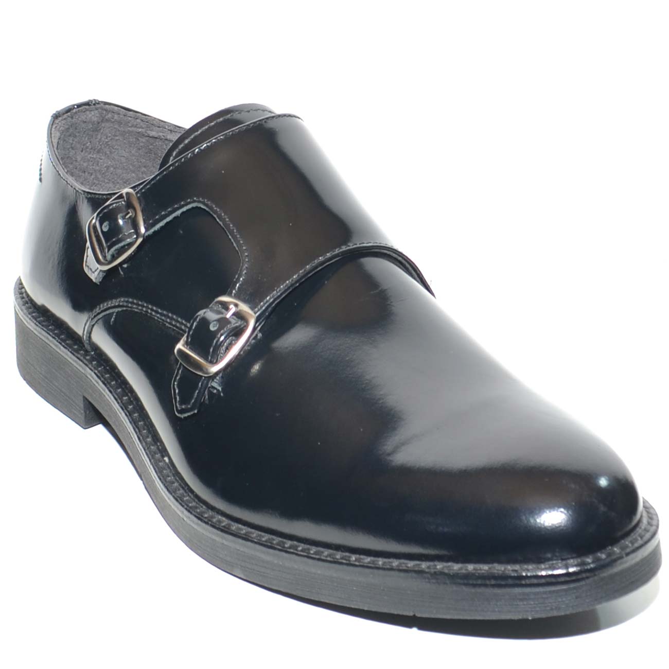 Scarpa uomo nera in vera pelle abrasivata con chiusura a doppia fibbia liscia fondo gomma classico sportvo antiscivolo