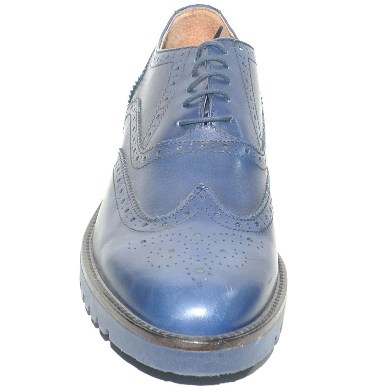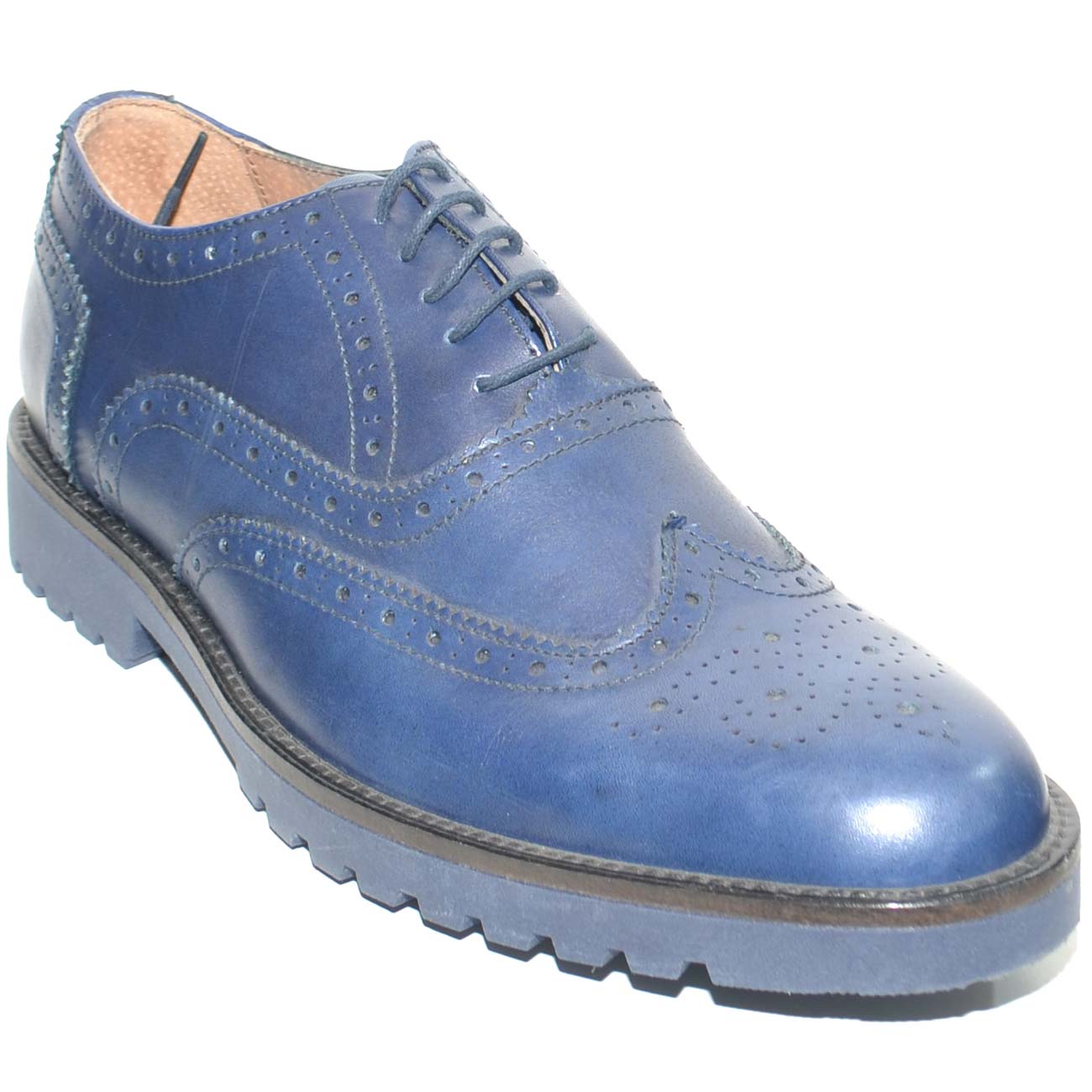SCARPE UOMO STRINGATA VERA PELLE MORBIDA BLU NAVY MADE IN ITALY FONDO GOMMA ANTISCIVOLO COMFORT MODA MAN BUSINESS