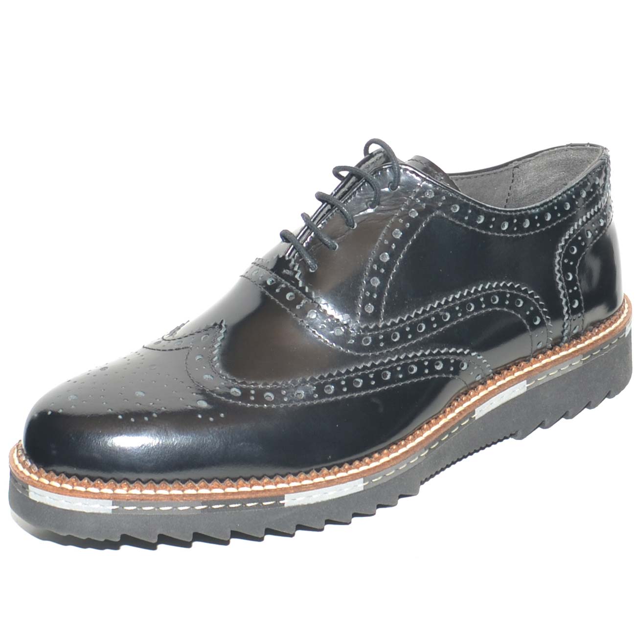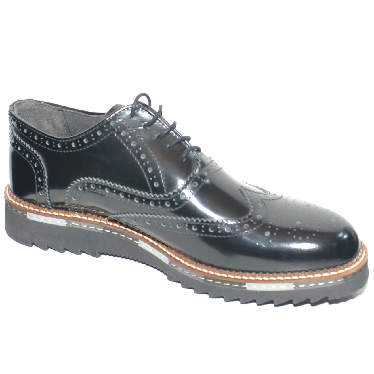 scarpe uomo francesina vera pelle nero abrasivato fondo nero intersuola cuoio classico sportivo businessman