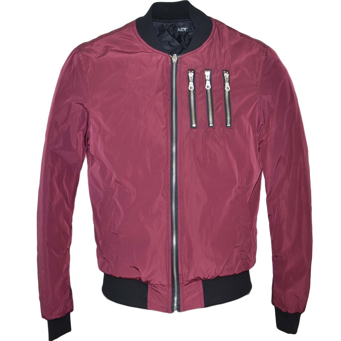 Bomber uomo imbottito bordeaux con elastico in vita e sui polsi, chiusura con zip e dettaglio zip altezza petto