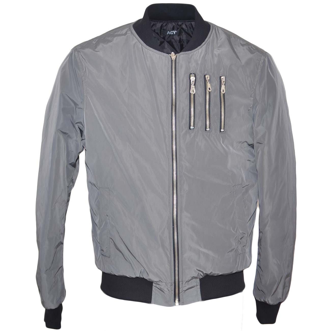 Bomber uomo imbottito grigio con elastico in vita e sui polsi, chiusura con zip e dettaglio zip altezza pett
