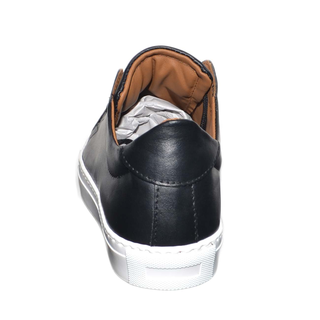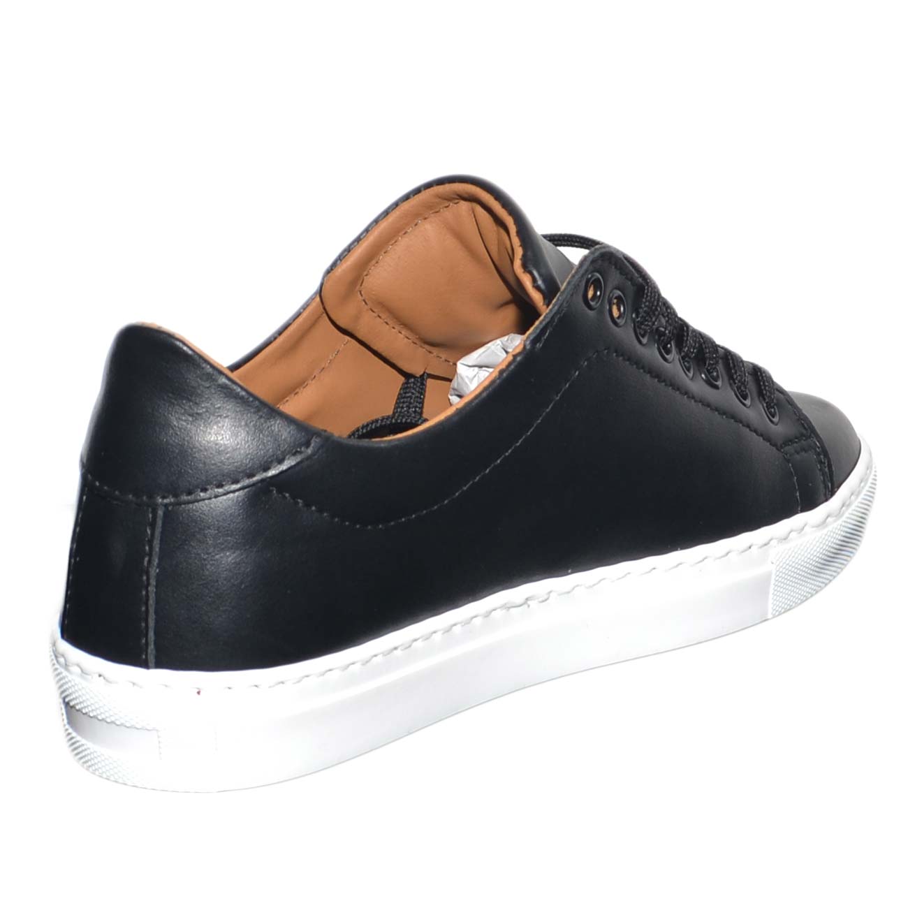 scarpa casual da uomo in vera pelle nera, con tomaia e fodera interamente in vera pelle di primissima qualità, plantare interno in vera pelle e suola in gomma nera antistrecht. Una scarpa sportiva trendy e comoda dal design semplice e vintage perfetta per il tempo libero con ogni outfit casual. Adatta ai liberi professionisti e ai business man che vogliono restare eleganti in tuttà comodità. Design minimale e sobrio perfetto in ogni occasione e comodo a lungo con collarino imbottito e tassello in mesh imbottito interno al tallone.