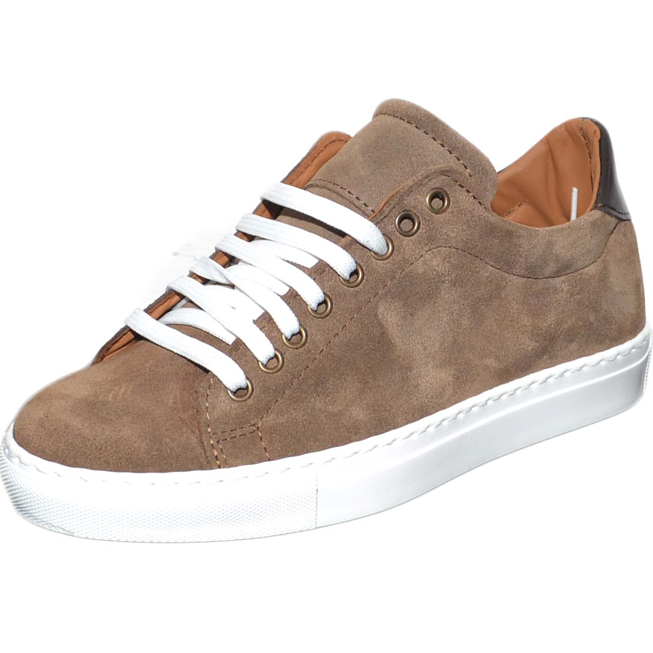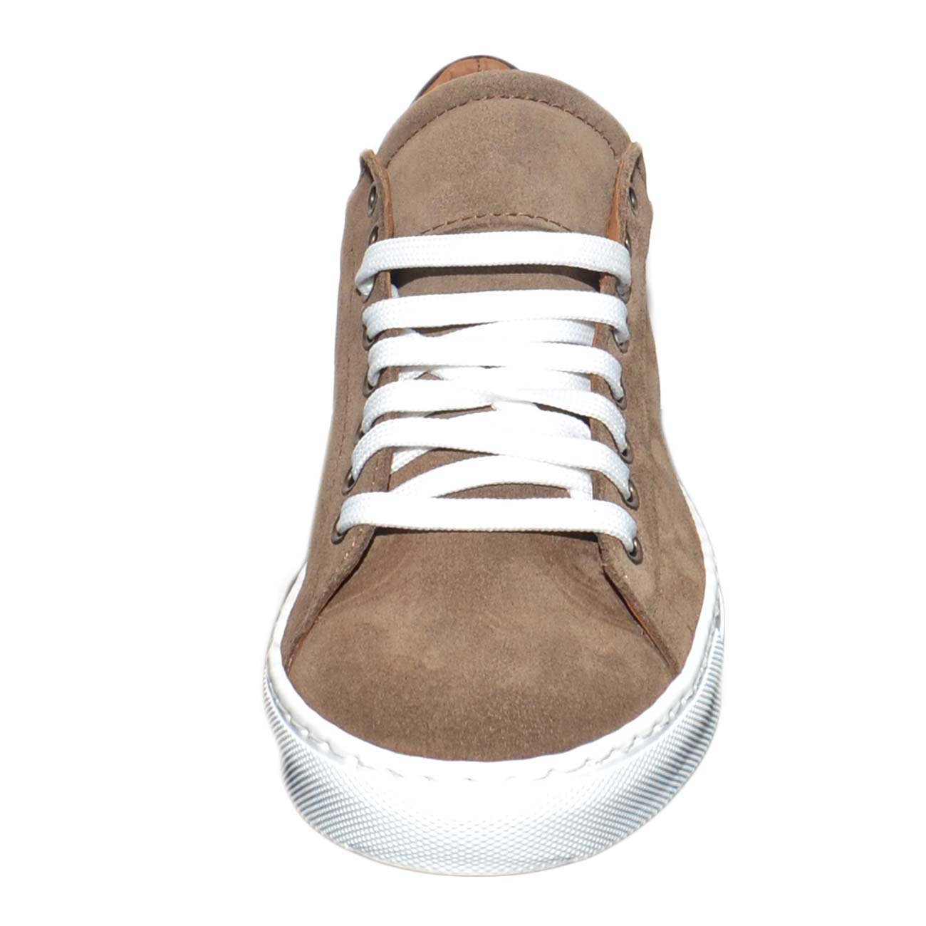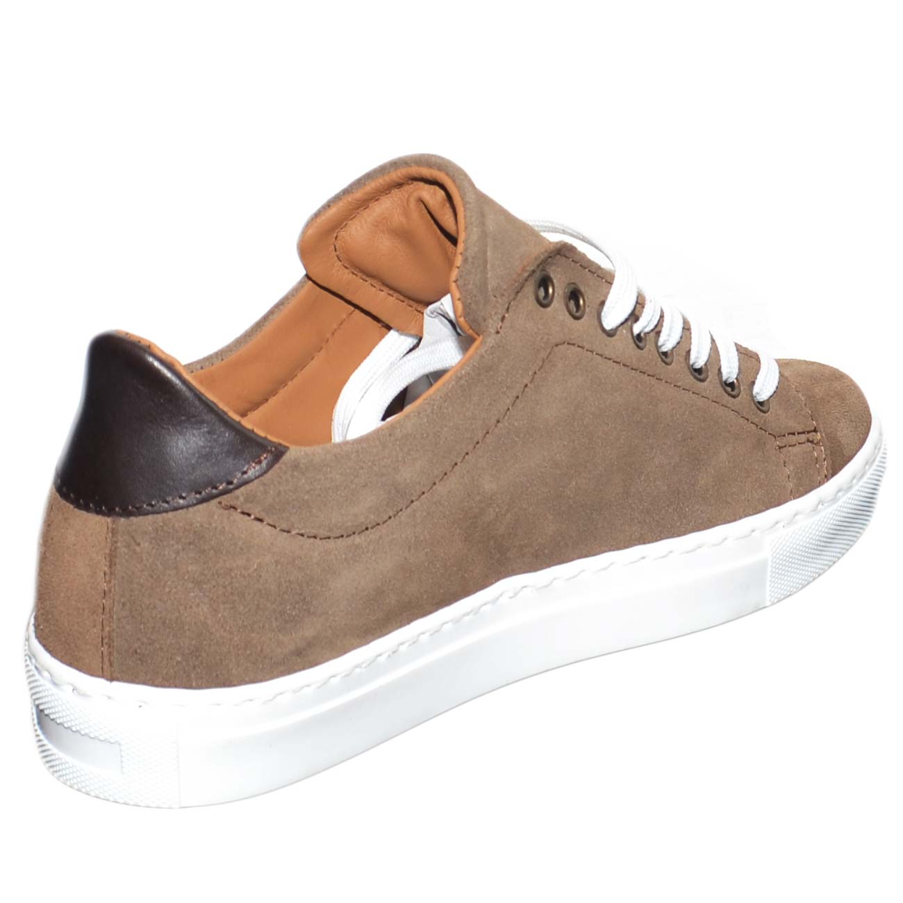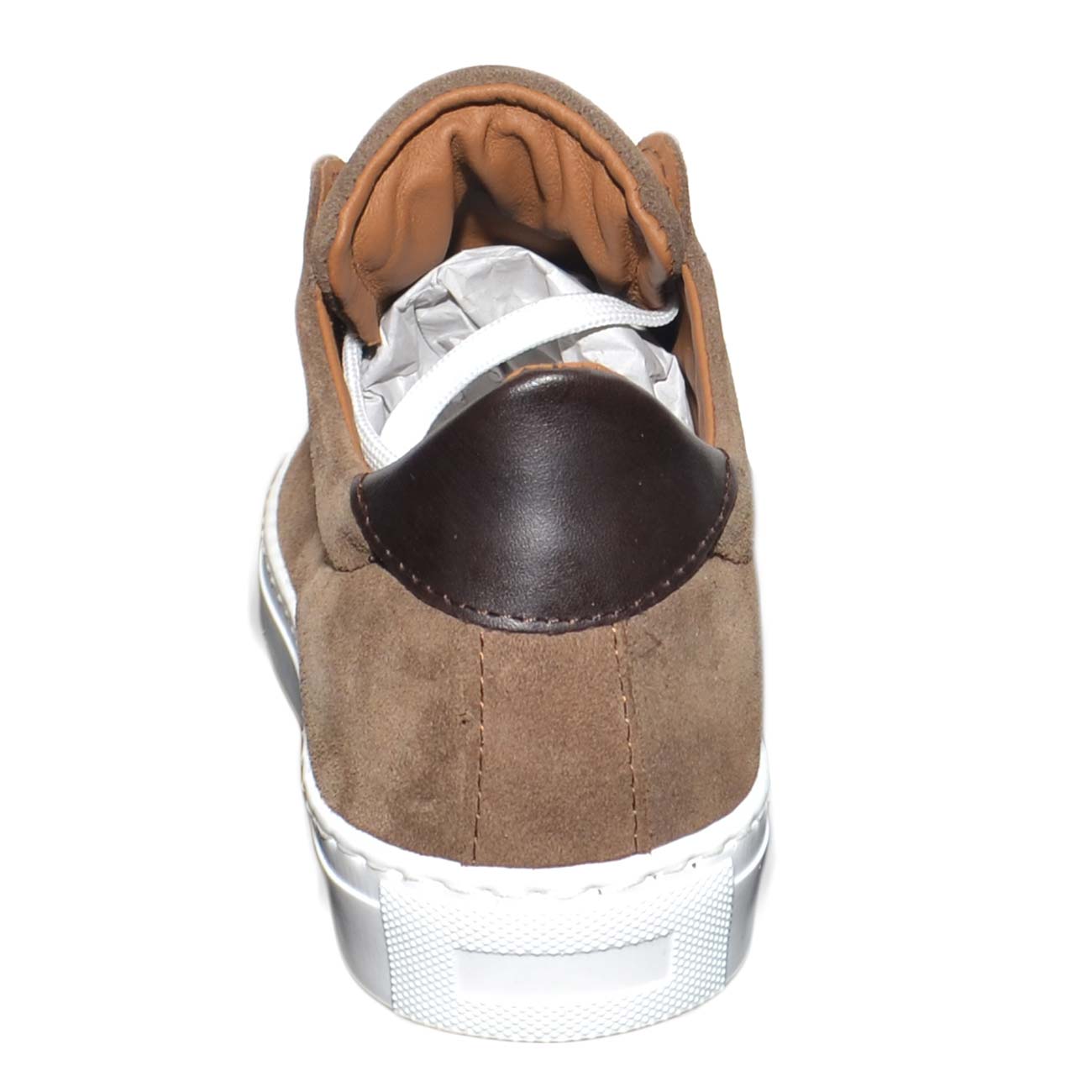 Sneaker bassa uomo in vera pelle scamosciata tortora e marrone interno vera pelle morbida cuoio fatte a mano in italia