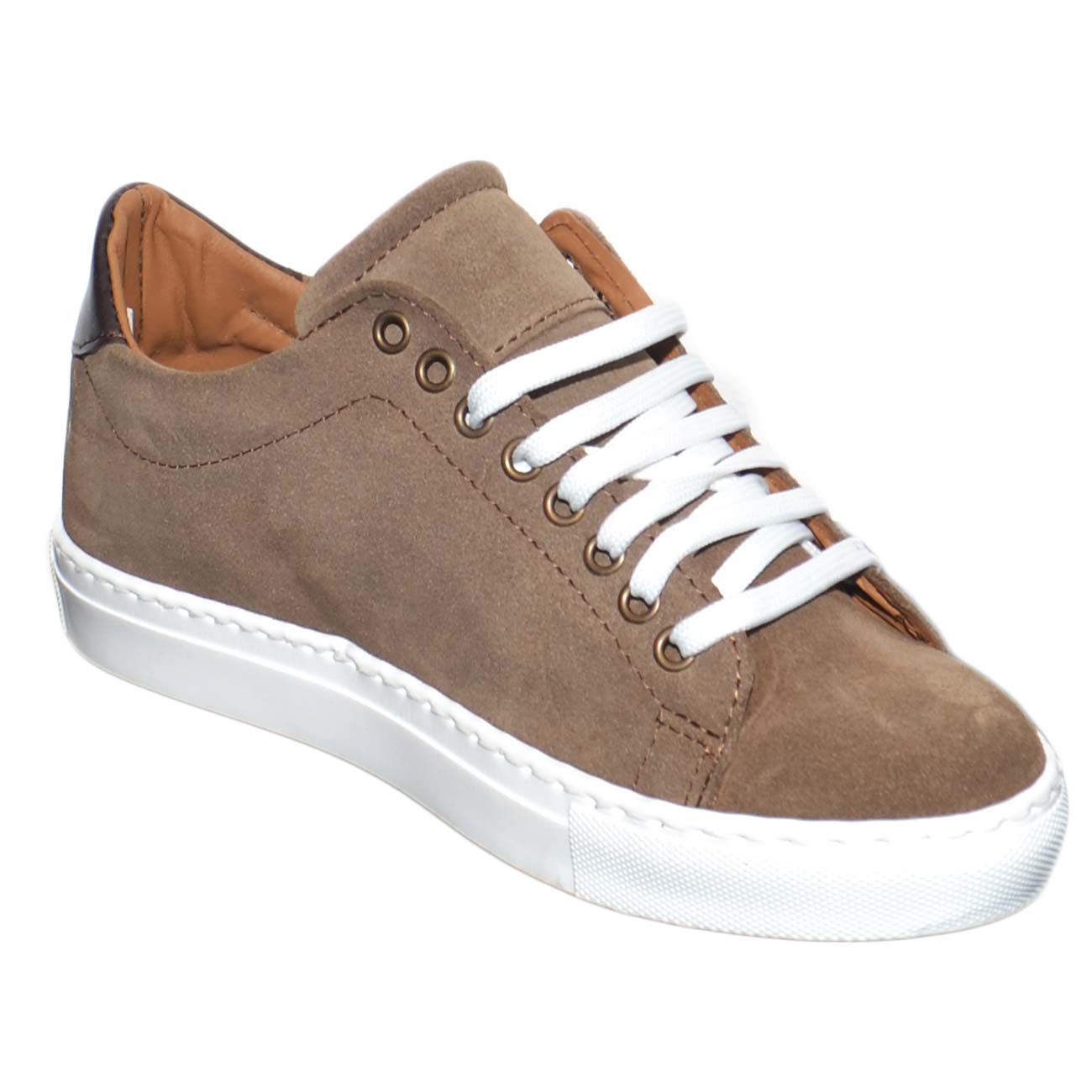 scarpa casual da uomo in vera pelle scamosciata taupe con fortino testa di moro, con tomaia e fodera interamente in vera pelle di primissima qualità, plantare interno in vera pelle e suola in gomma bianca antistrecht. Una scarpa sportiva trendy e comoda dal design semplice e vintage perfetta per il tempo libero con ogni outfit casual. Adatta ai liberi professionisti e ai business man che vogliono restare eleganti in tuttà comodità. Design minimale e sobrio perfetto in ogni occasione e comodo a lungo con collarino imbottito e tassello in mesh imbottito interno al tallone.