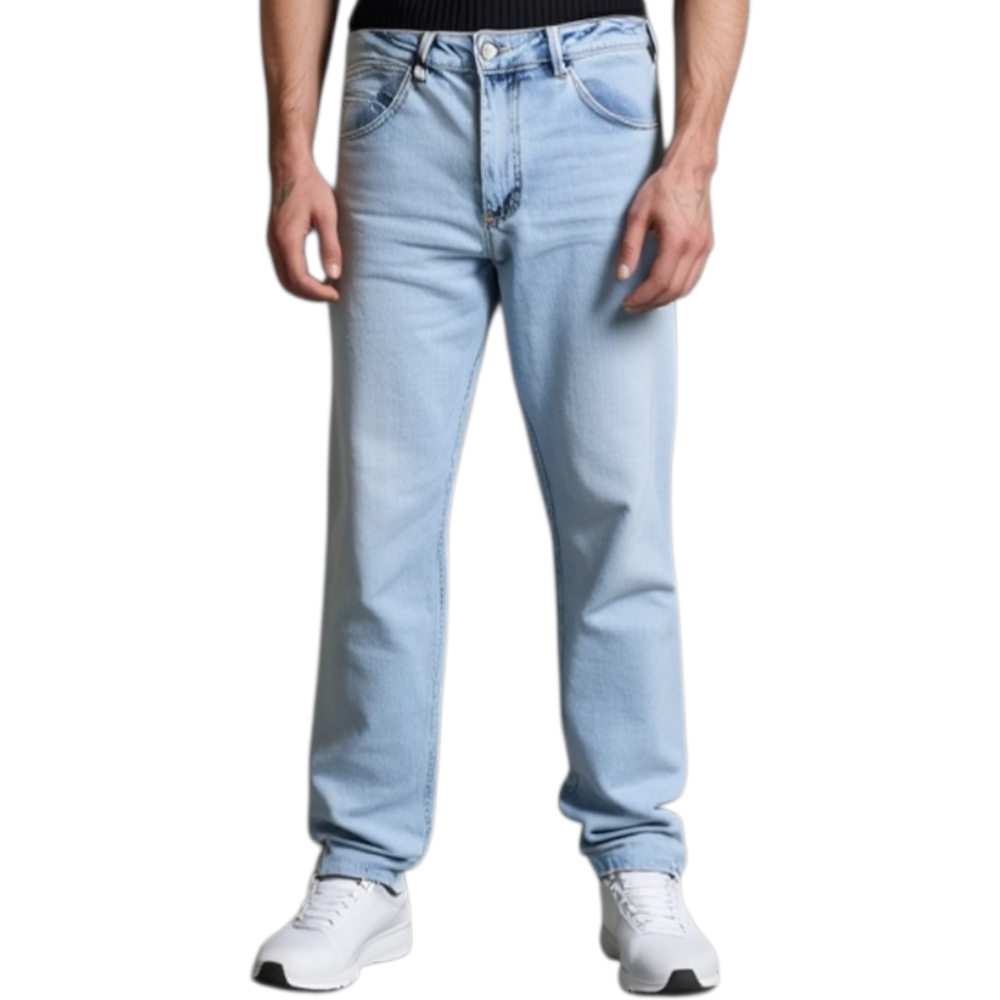 Jeans denim uomo jogger fit cavallo basso lavaggio chiaro Cinque tasche cerniera e bottone con strappi made in Italy.