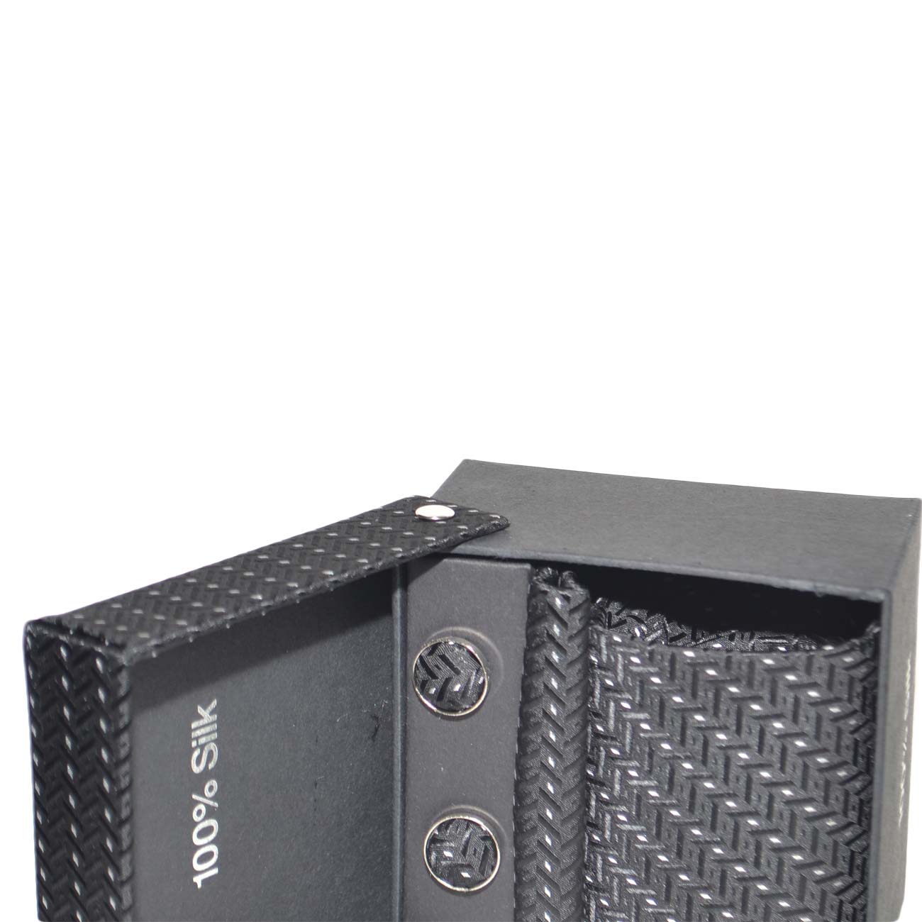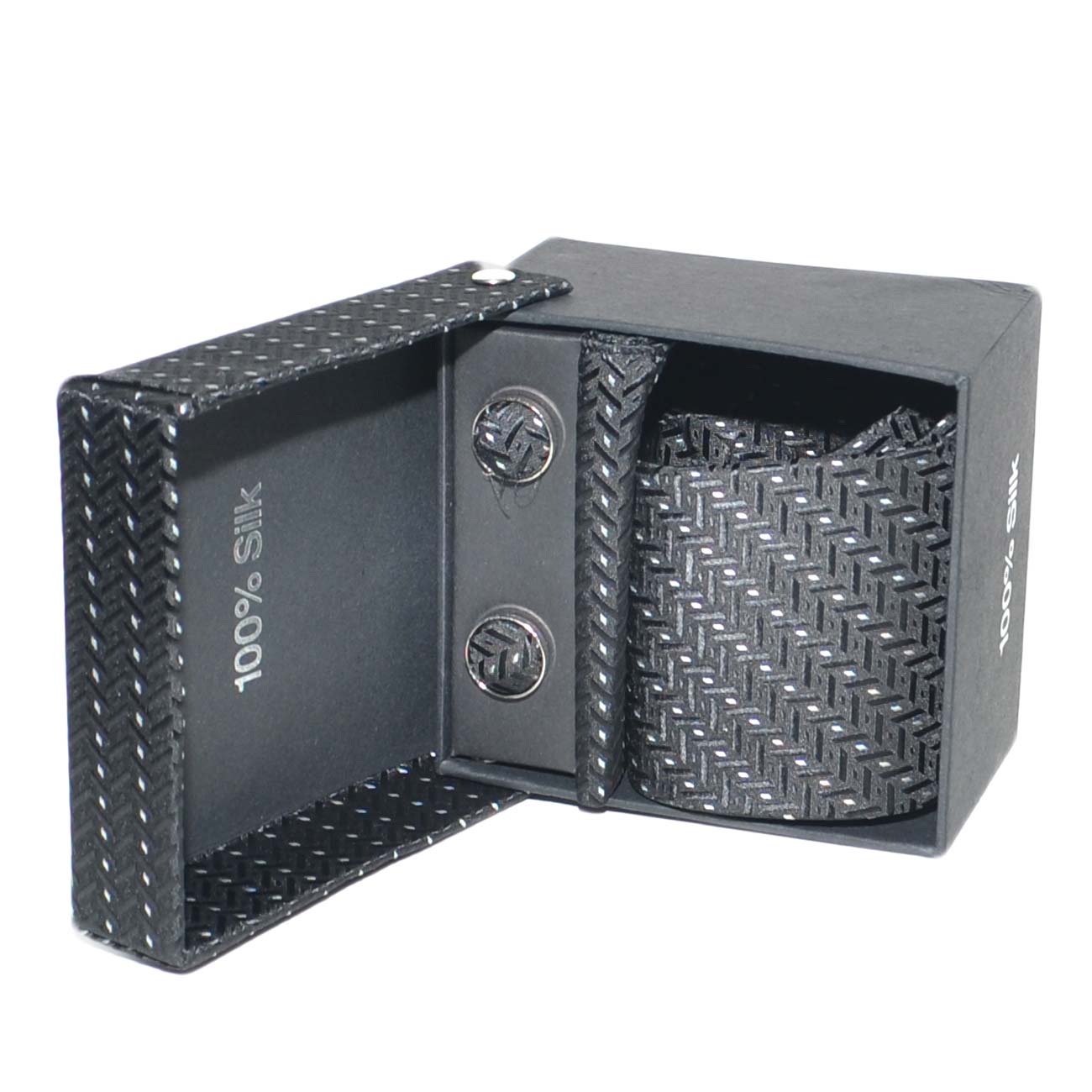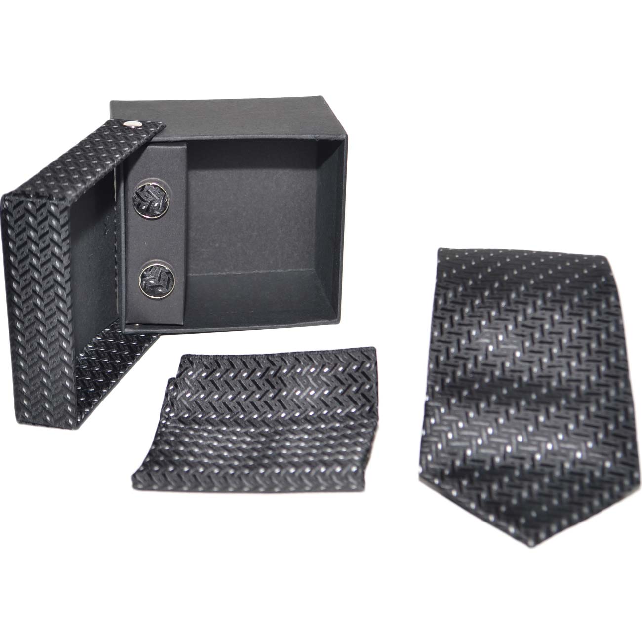 Set cravatta pochette e gemelli in raso nero a fantasia pois confezione regalo per professionisti e collezionisti