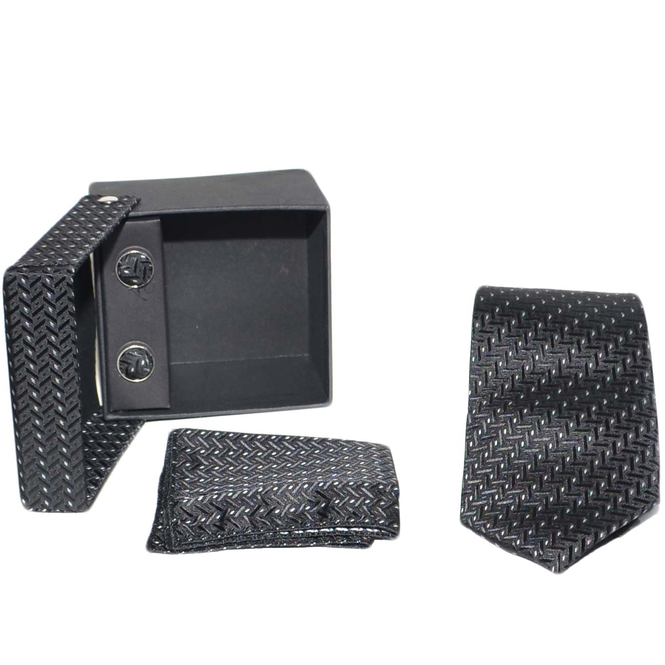 Ridefinisci il tuo stile con questo set coordinato che comprende cravatta, fazzoletto da taschino e gemelli custoditi in elegante cofanetto regalo.