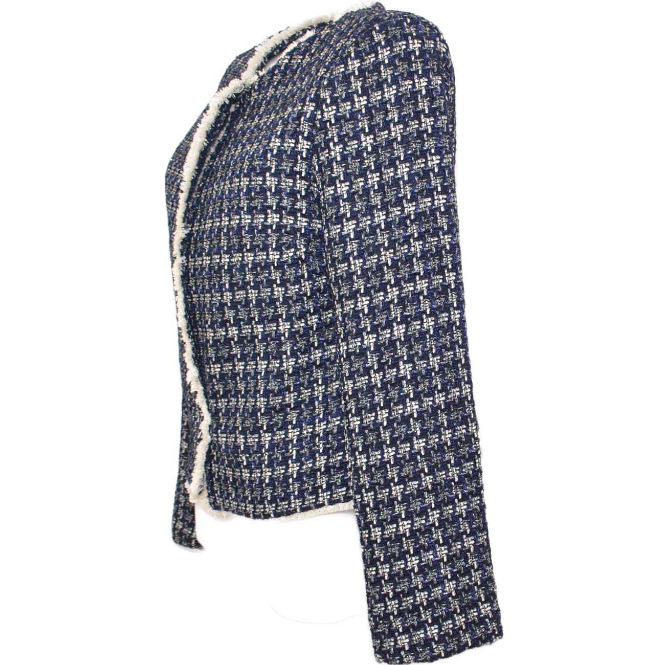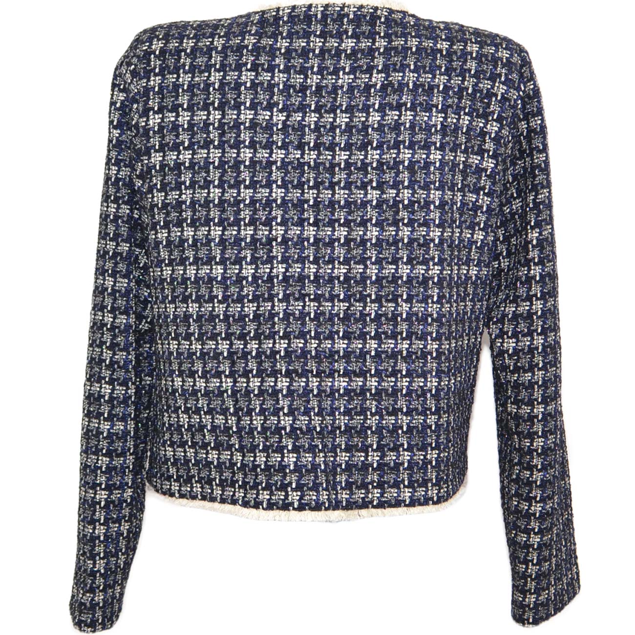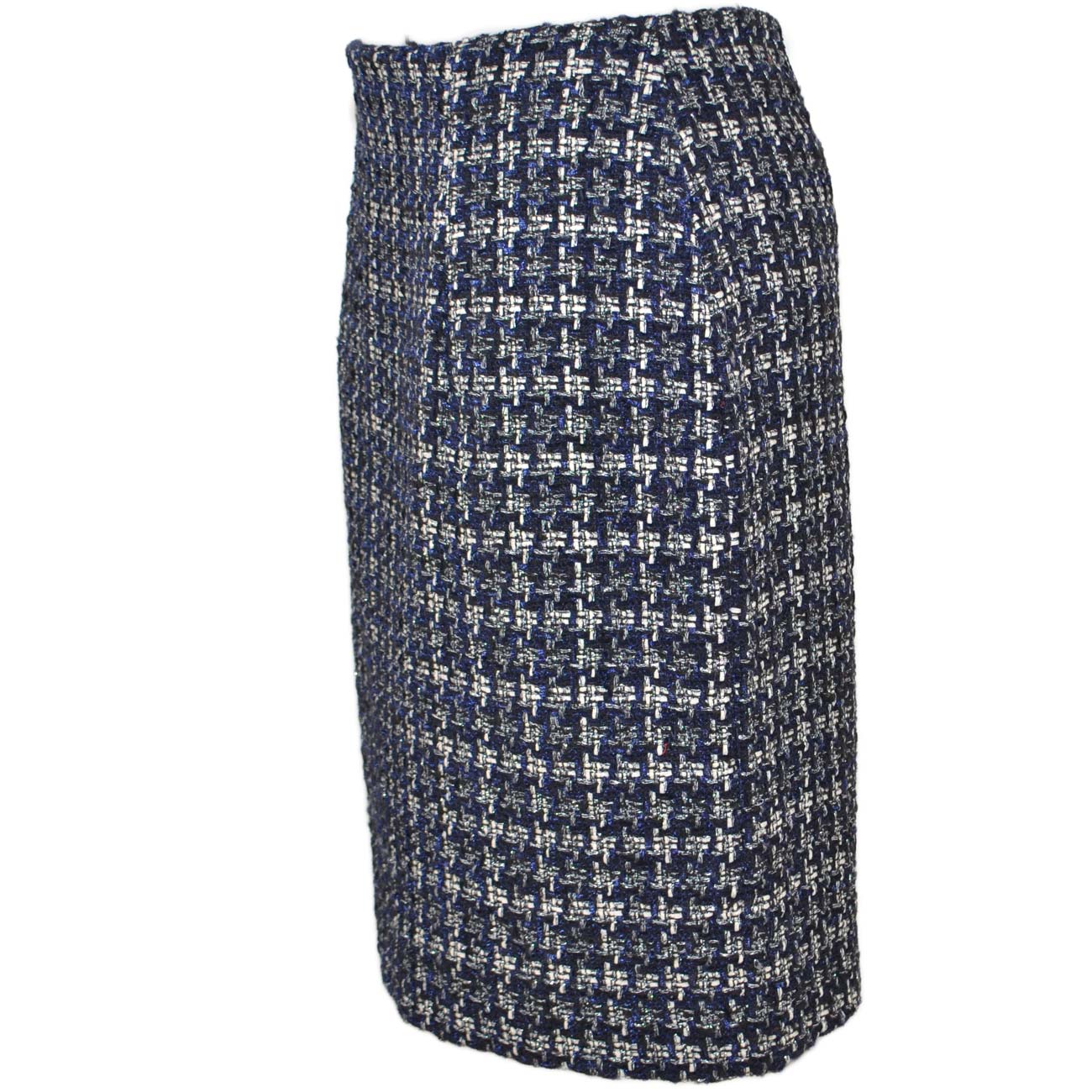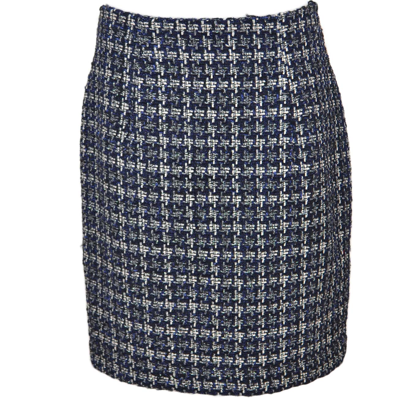 Tailleur twin set blu donna gonna e blazer corto in lanetta ad intessitura laga fantasia satinato made in italy