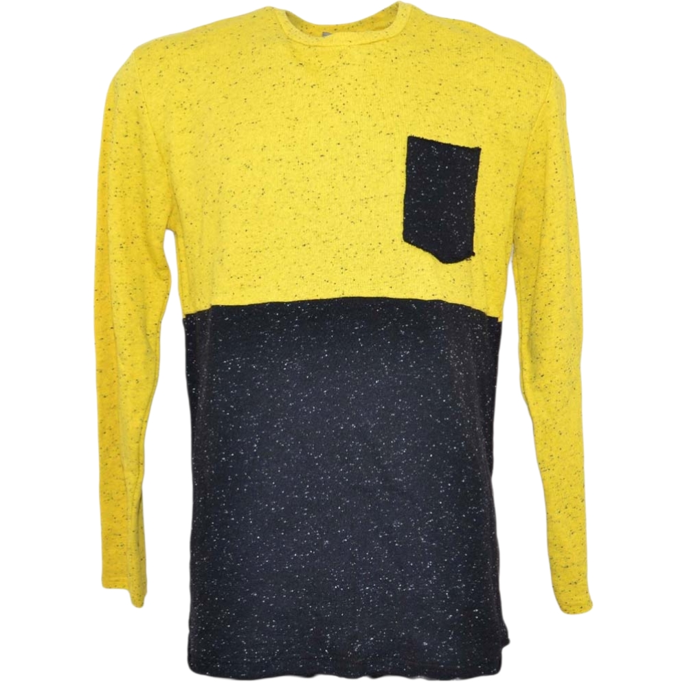 Ferlpa uomo moda bicolore giallo e nero con taschino in caldo cotone slim fit collo tondo moda giovane