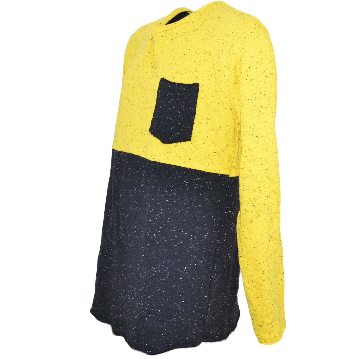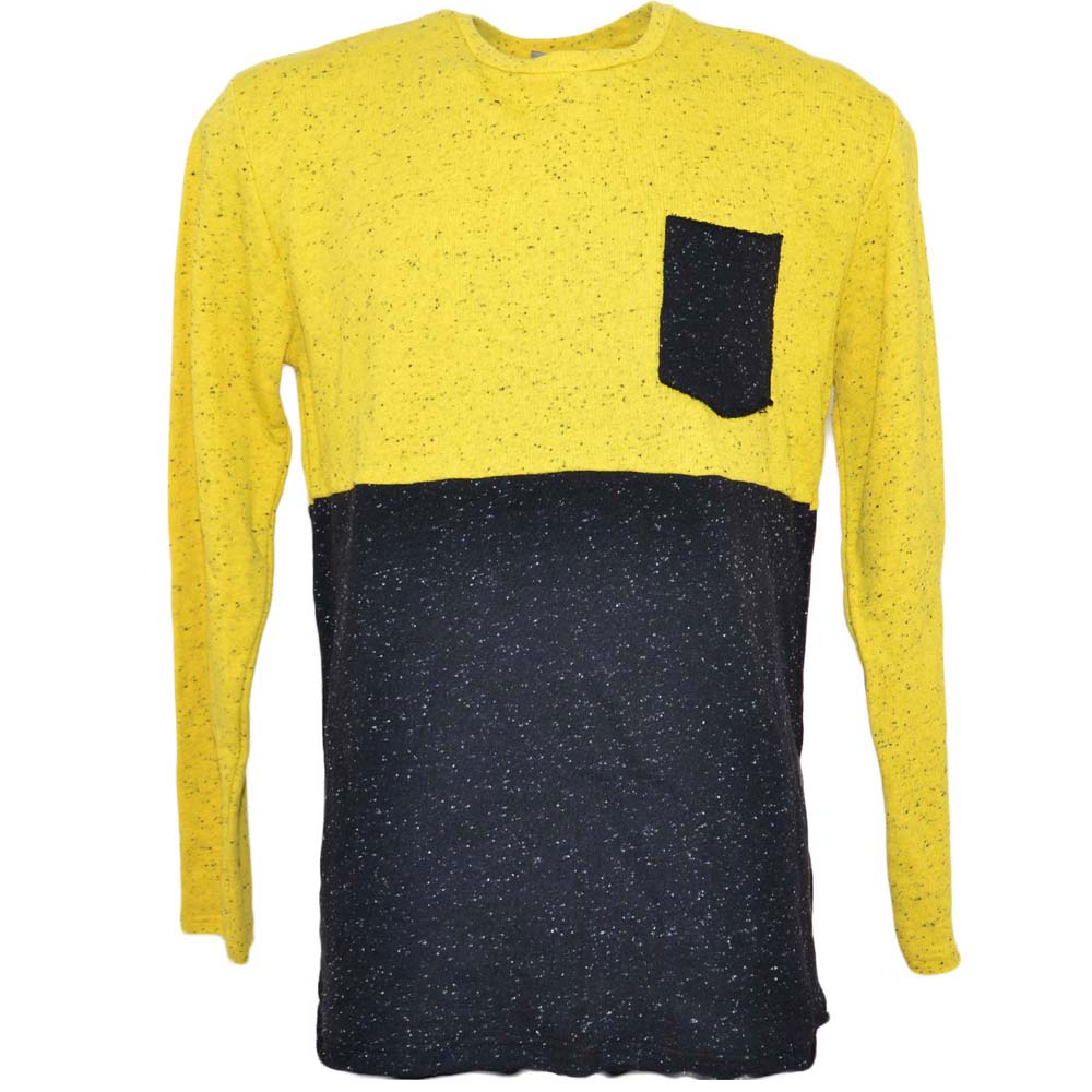 Ferlpa uomo moda bicolore giallo e nero con taschino in caldo cotone slim fit collo tondo moda giovane