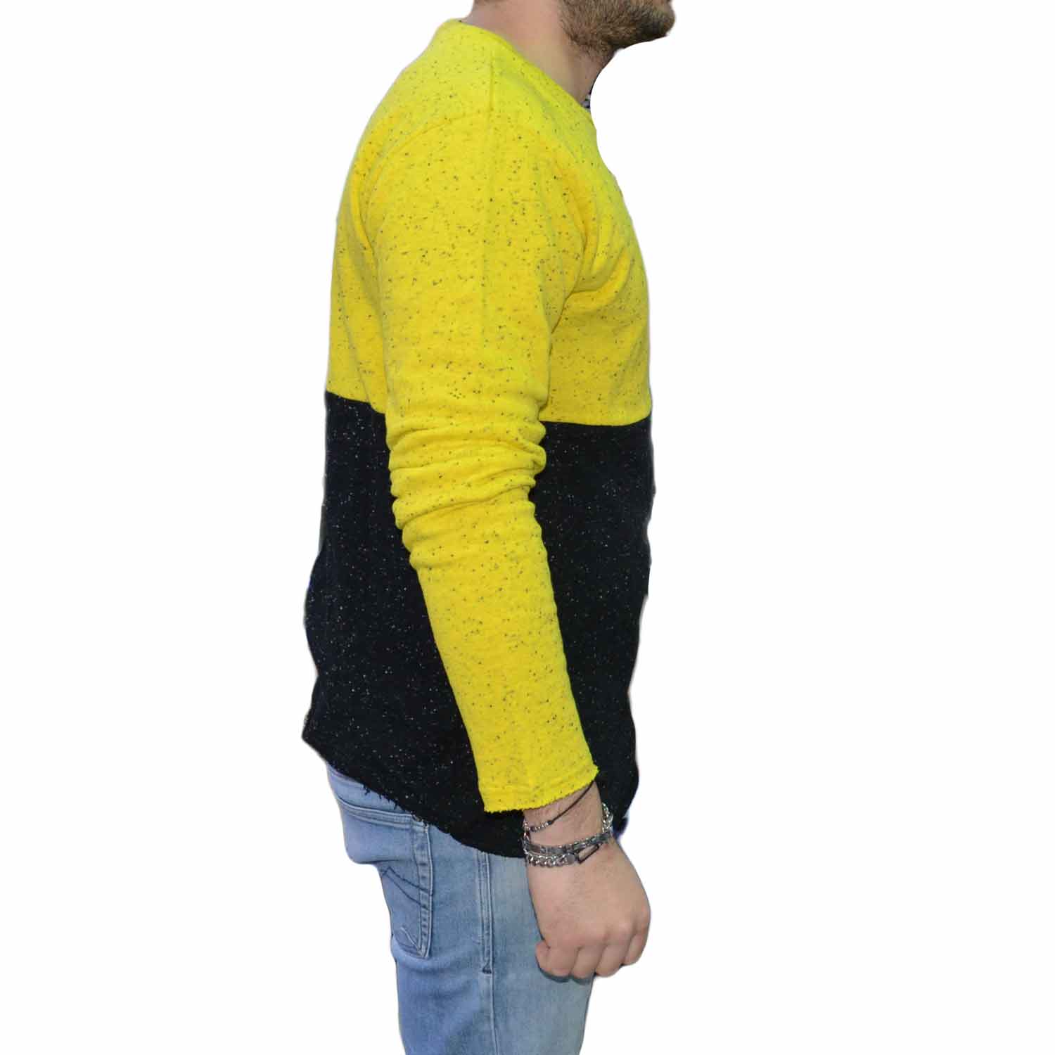 Felpa uomo giallo e nera con ecopelle nero lunga girocollo.