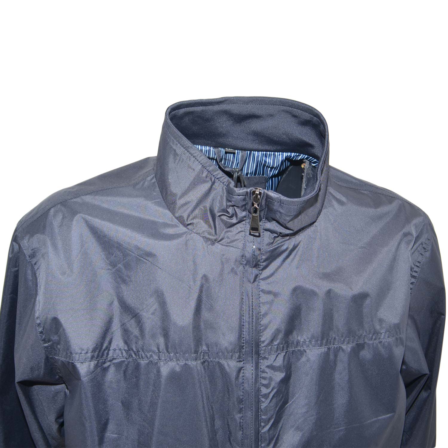 Giubbotto giacca uomo blu paravento con zip frontale impermeabile con elastico in vita.