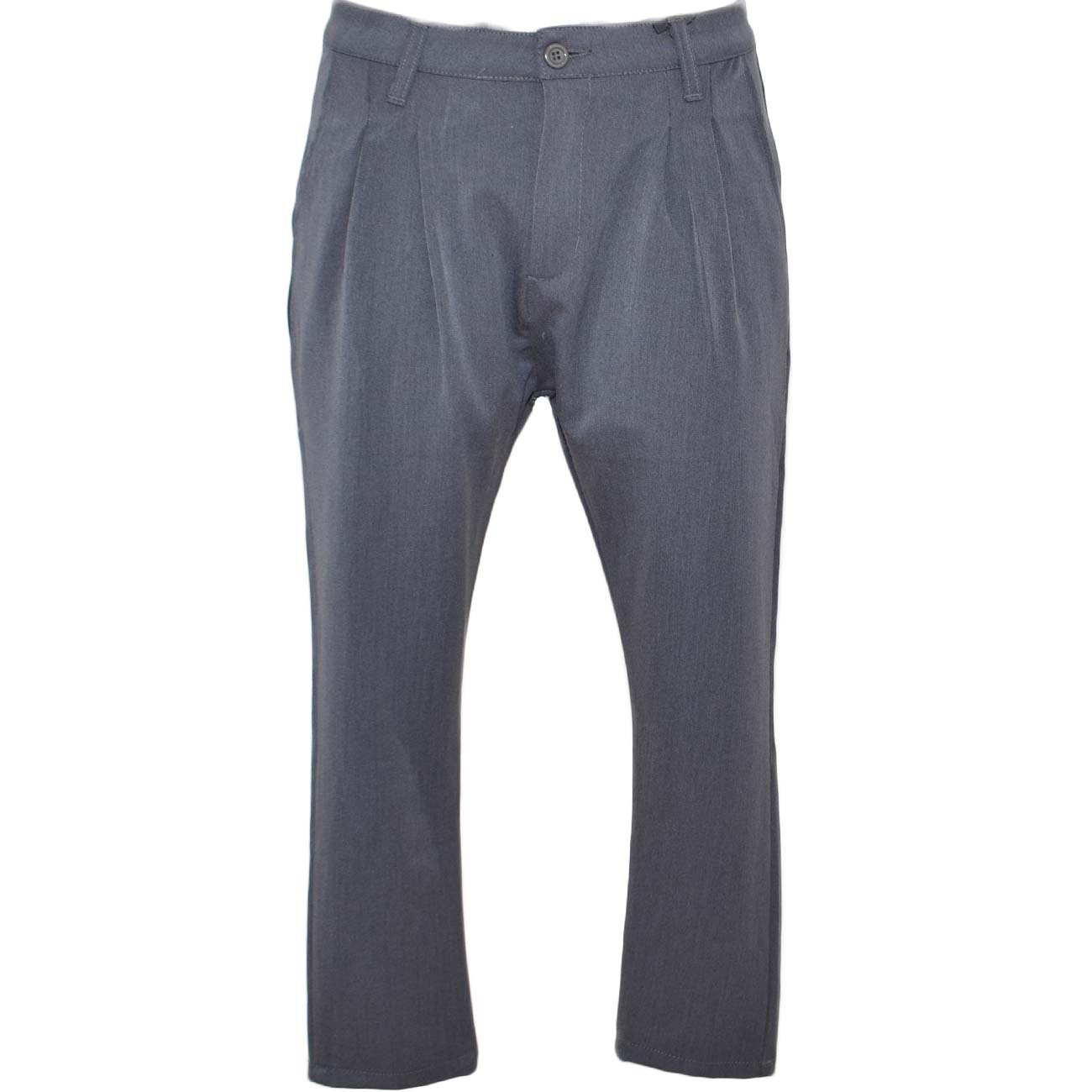 Pantaloni chino in puro cotone grigio a vita bassa chiusura con bottone e cerniera a due tasche moda linea basic