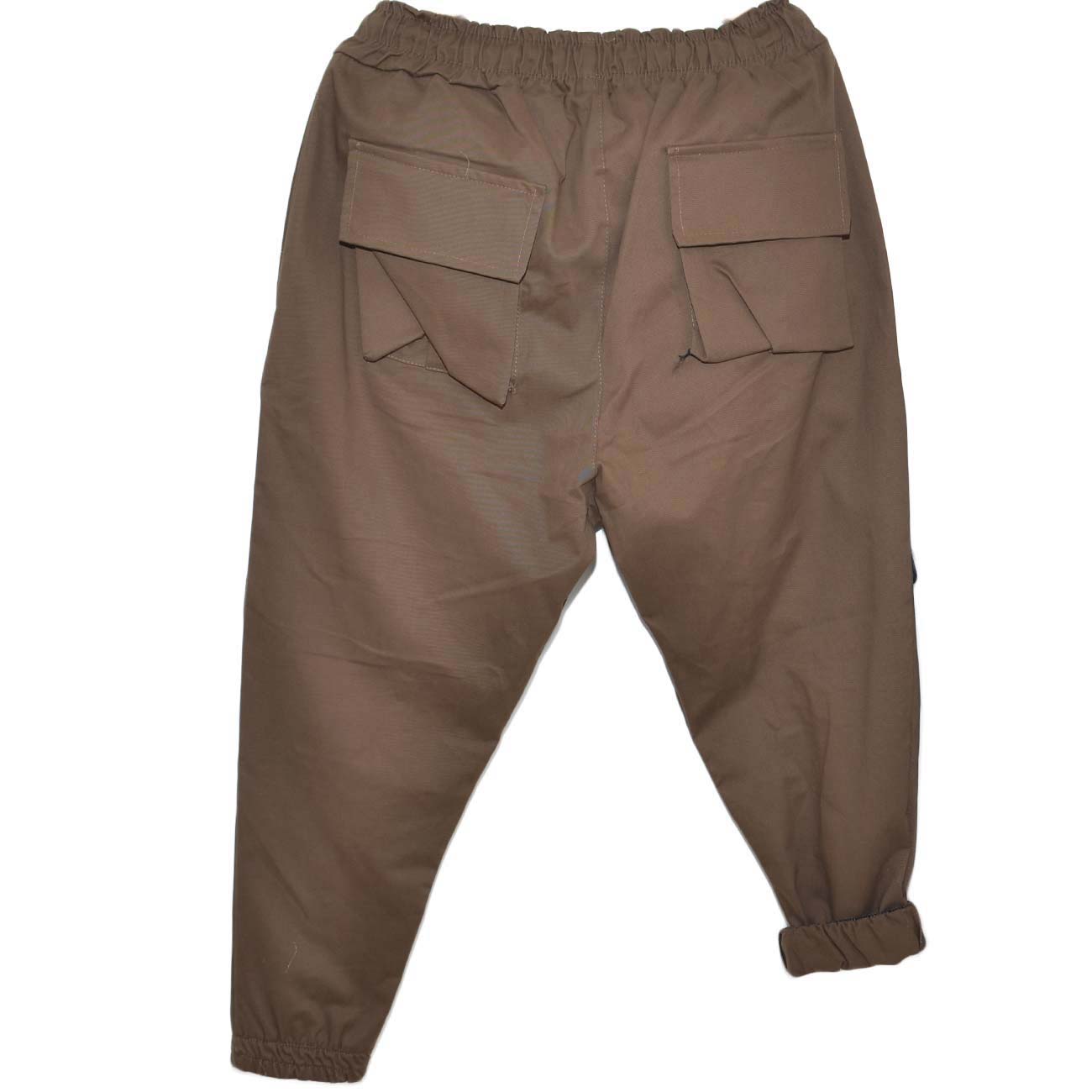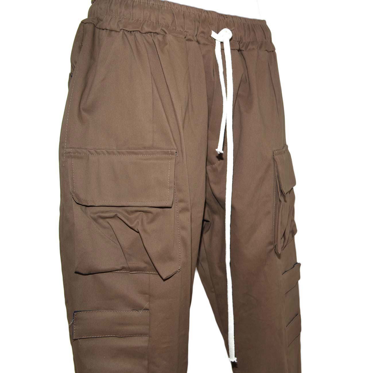 Pantaloni cargo uomo cuoio con tasconi laterali ed elastico in vita con laccio comodo casual moda militare