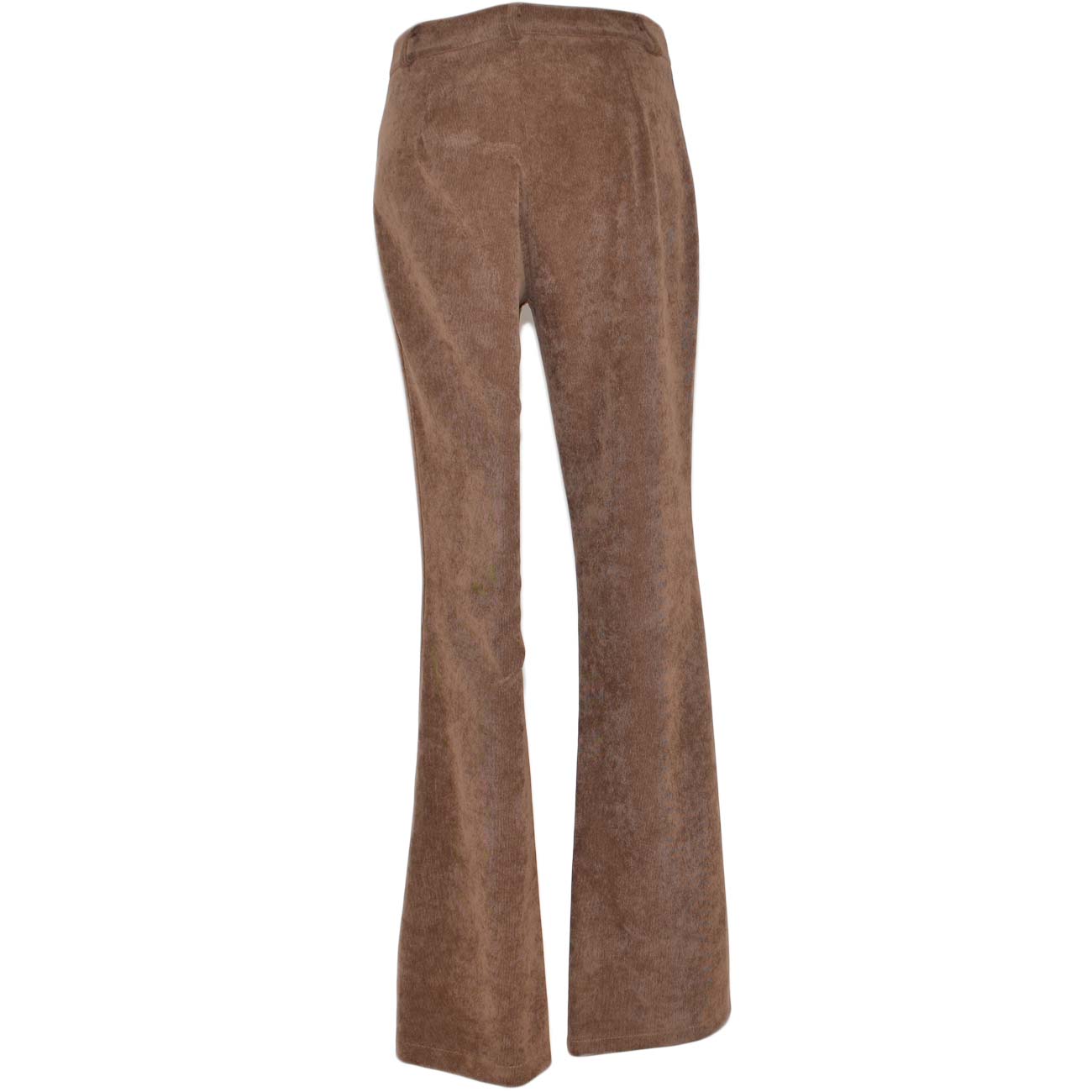 Pantaloni donna a zampa marroni a vita alta di ciniglia a coste sexy slim aderenti tinta unita bell-botton push up