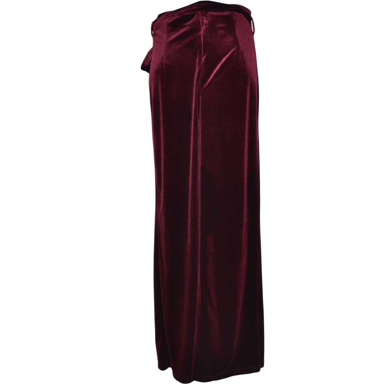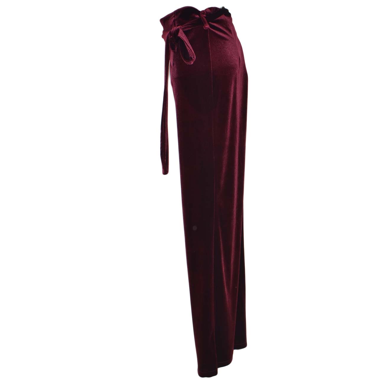 Pantalone donna a palazzo in velluto bordeaux high waist con cordino in vita comodo moda donna