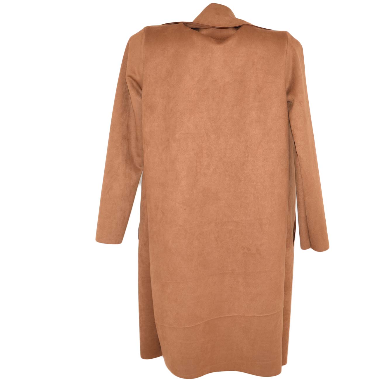 Comoda giacca da donna utilizzabile anche come cappotto nei periodi miti. E' strutturato con un tessuto scamosciato simile al nubuk scrivente. Comoda e leggera addosso, è adatta ad ogni outfit, casual o formale che sia.