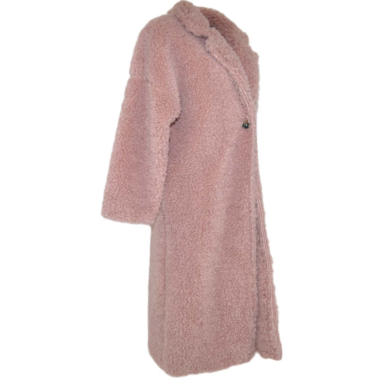 Pelliccia giacca teddy rosa ecologica donna lunga di pile a due bottoni manica lunga molto calda e morbida moda gdl