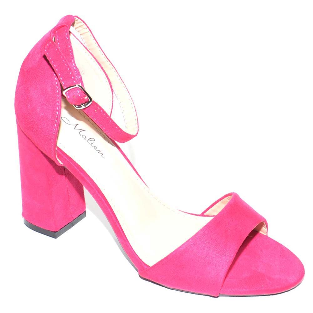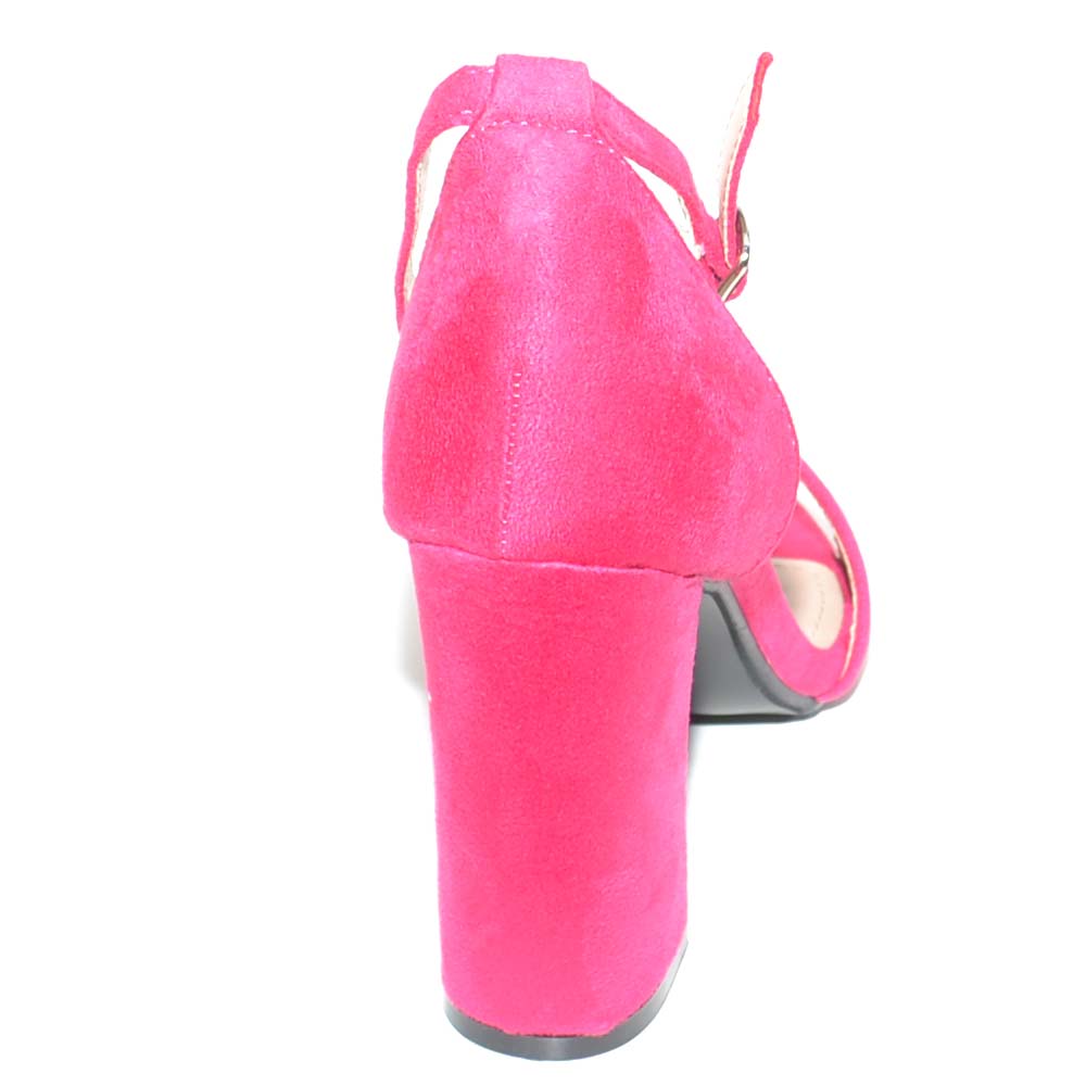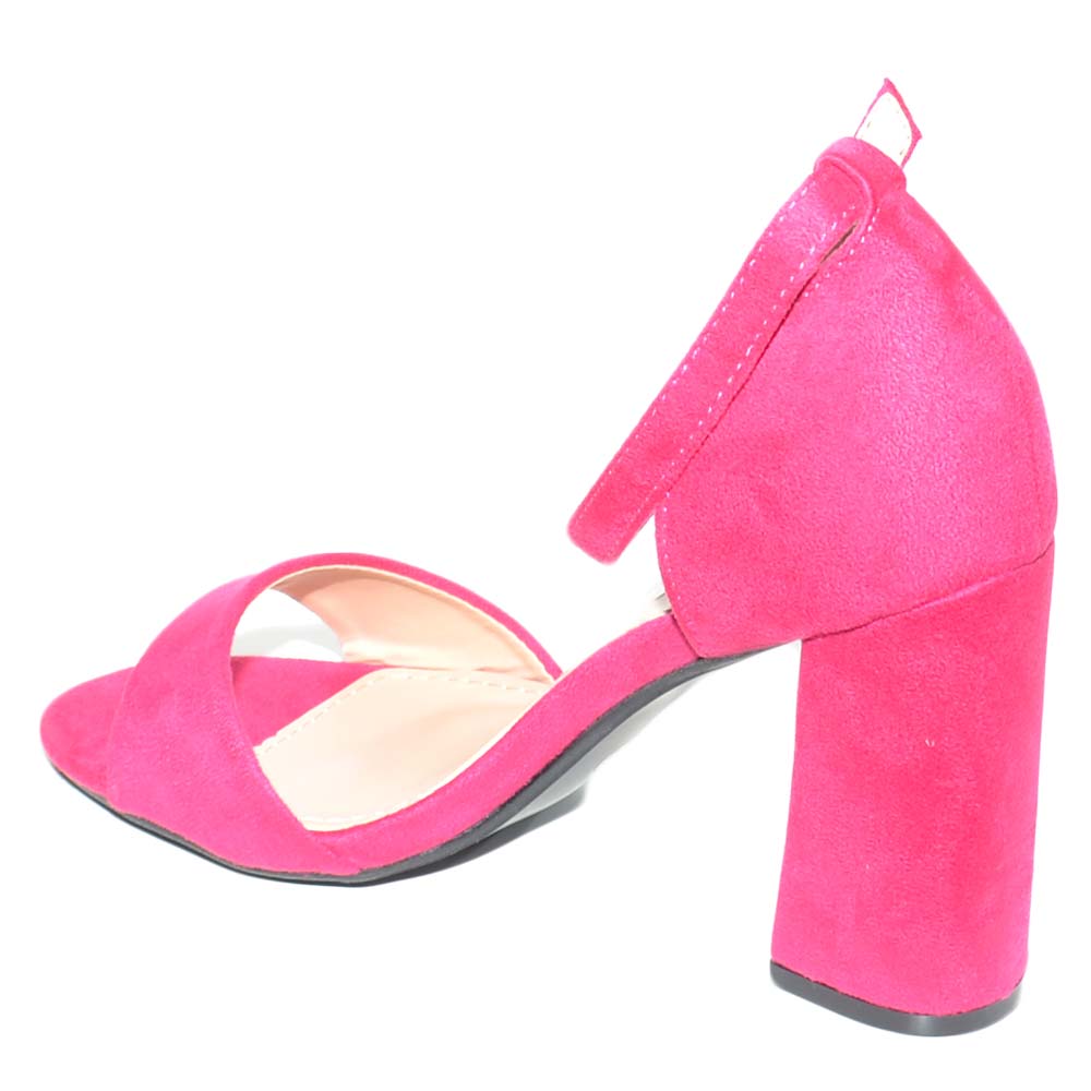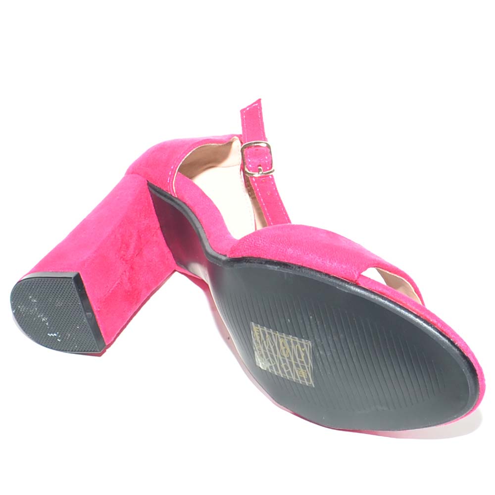 Sandalo tacco in camoscio fucsia con sottopiede imbottito e tacco doppio comfort. Il sandalo è un modello intramontabile estremamente femminile con tacco largo e cinturino spesso a chiusura fibbia. Una scarpa comoda grazie ai materiali di qualità dalla linea semplice e glamour . Una calzatura perfetta con abbigliamento formale, ma adatta anche alla donna glamour che non rinuncia alla propria femminilità nemmeno quando indossa outfit più pratici.