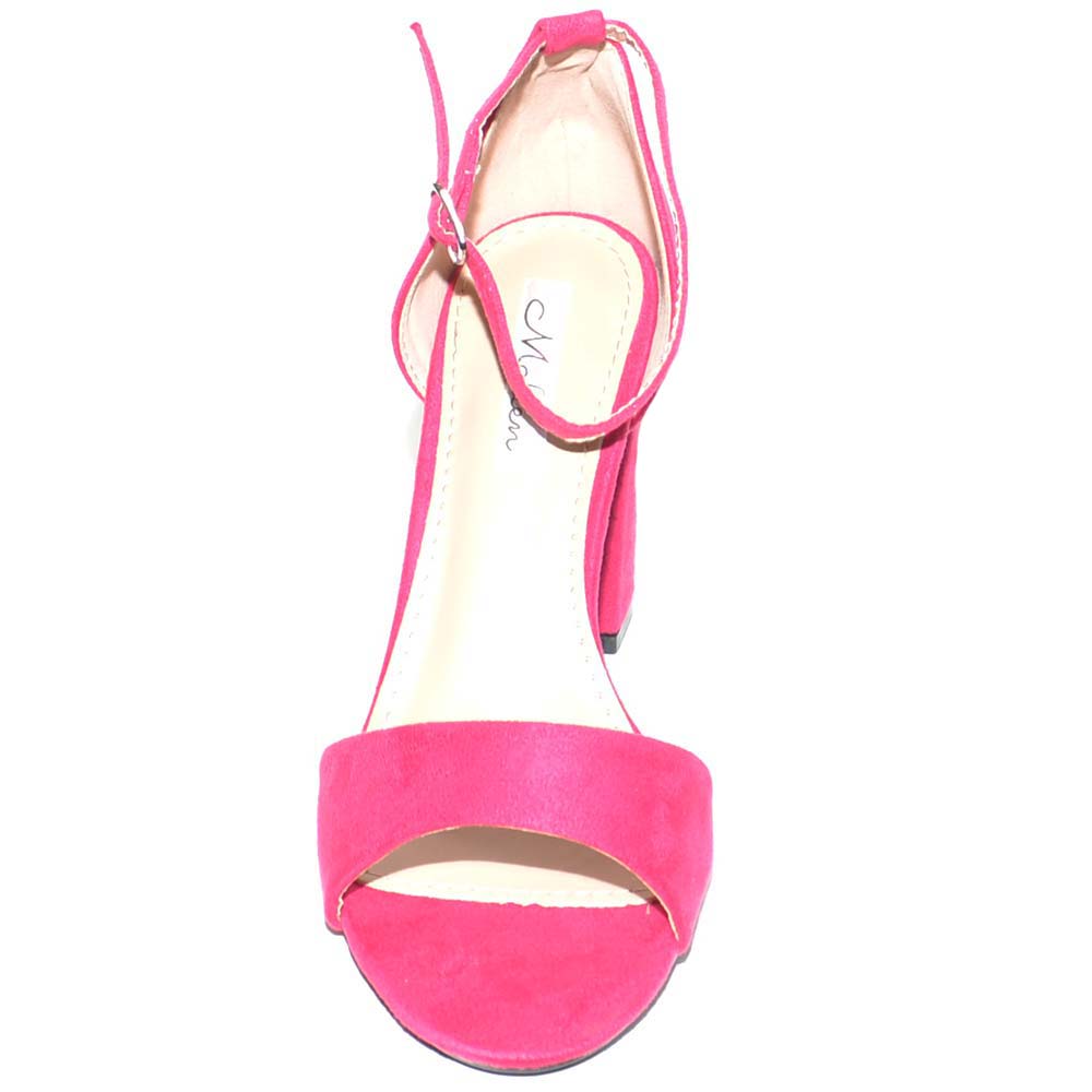 Sandalo tacco doppio comfort asimmetrico fucsia scarpe donna eleganti per cerimonia con cinturino alla caviglia