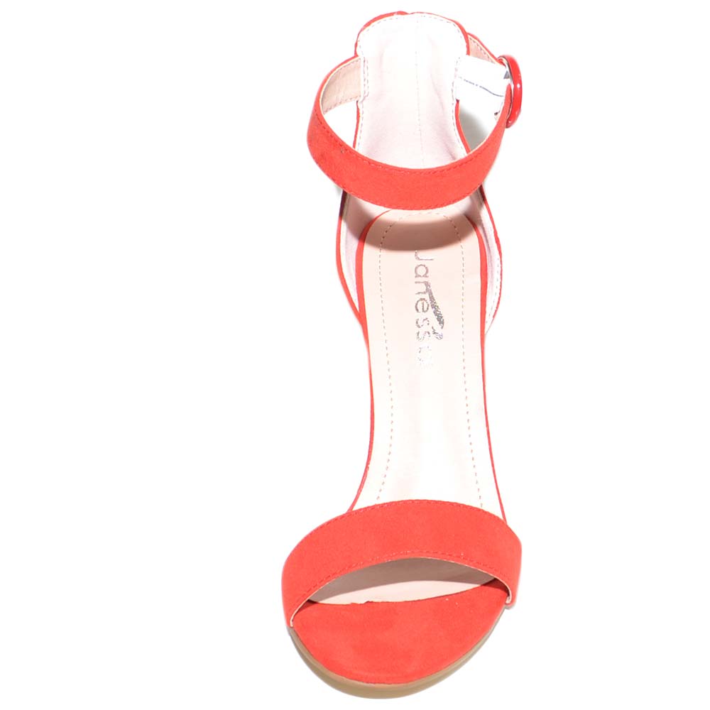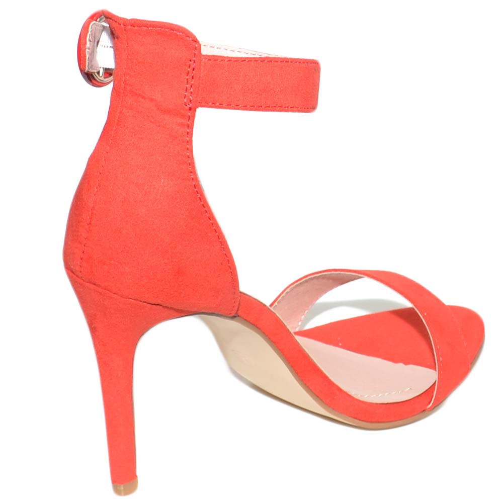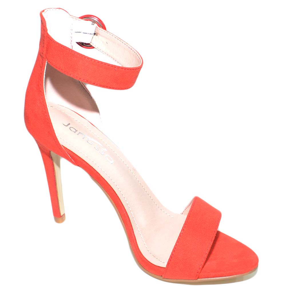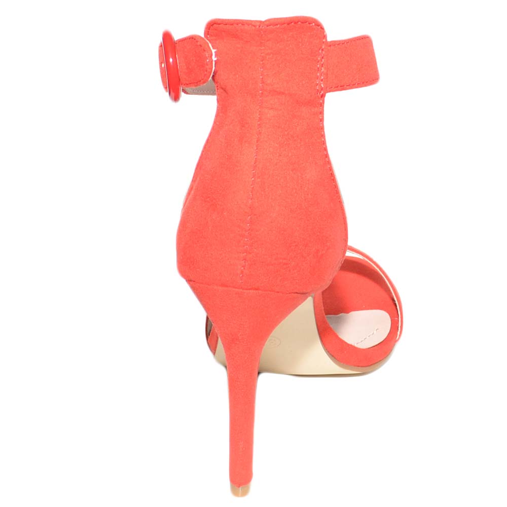 Sandalo donna camoscio rosso tacco a spillo linea basic con plateau e cinturino alla caviglia cerimonia luxury