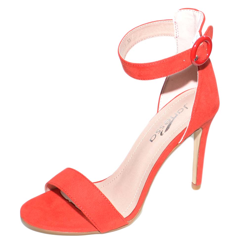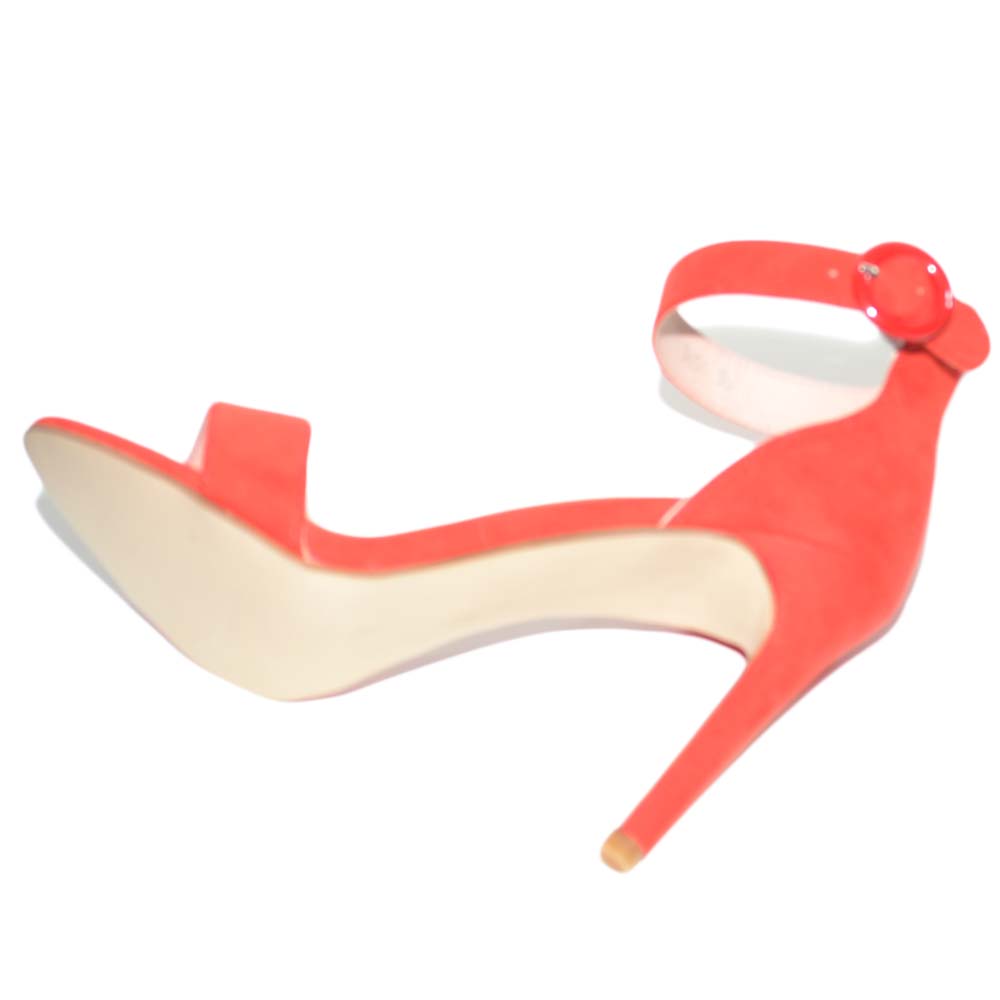 Sandalo tacco in camoscio rosso con sottopiede imbottito e tacco a spillo super femminile. Il sandalo è un modello intramontabile estremamente femminile con cinturino spesso a chiusura fibbia. Una scarpa comoda grazie ai materiali di qualità dalla linea semplice e glamour . Una calzatura perfetta con abbigliamento formale, ma adatta anche alla donna glamour che non rinuncia alla propria femminilità nemmeno quando indossa outfit più pratici.