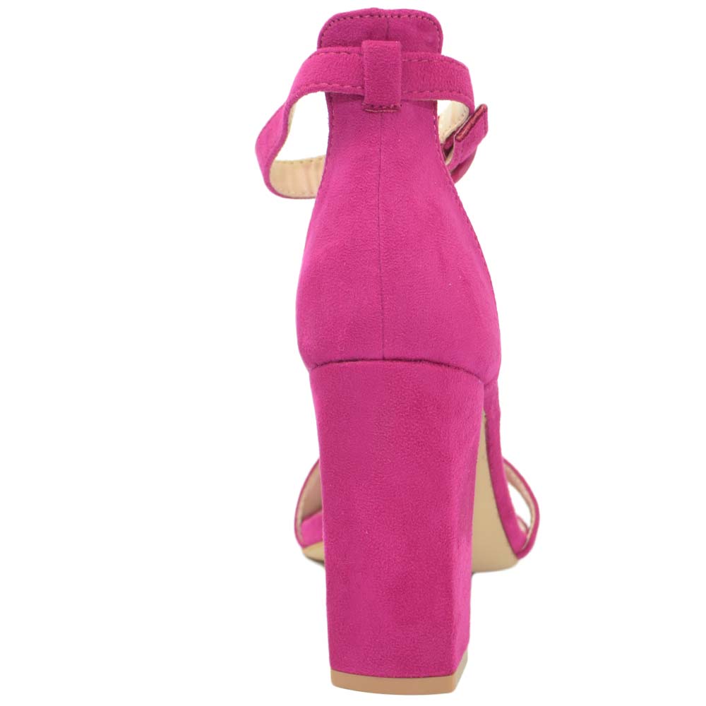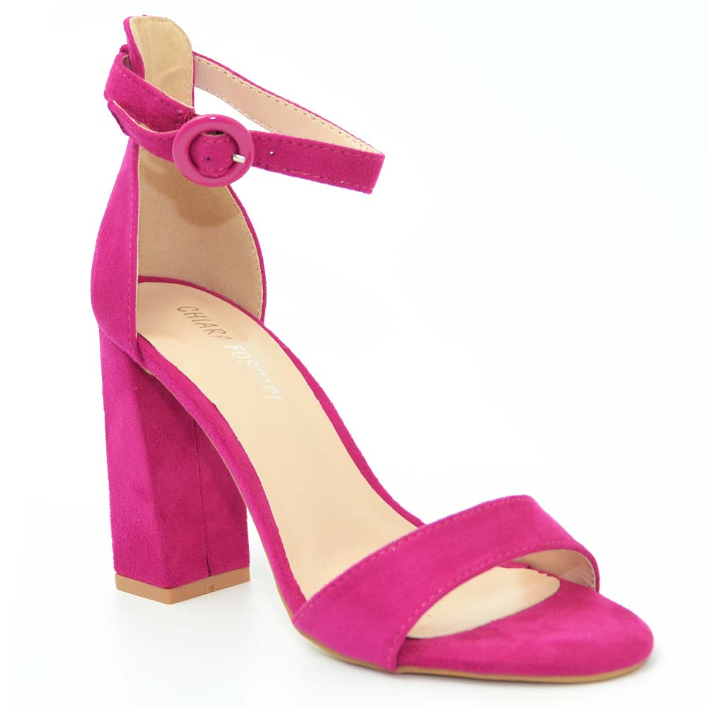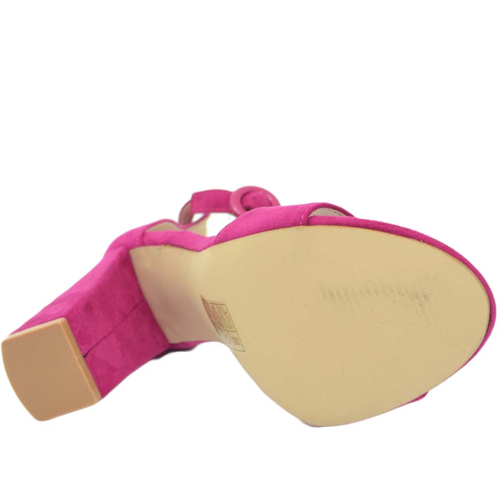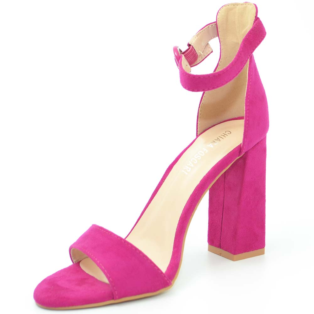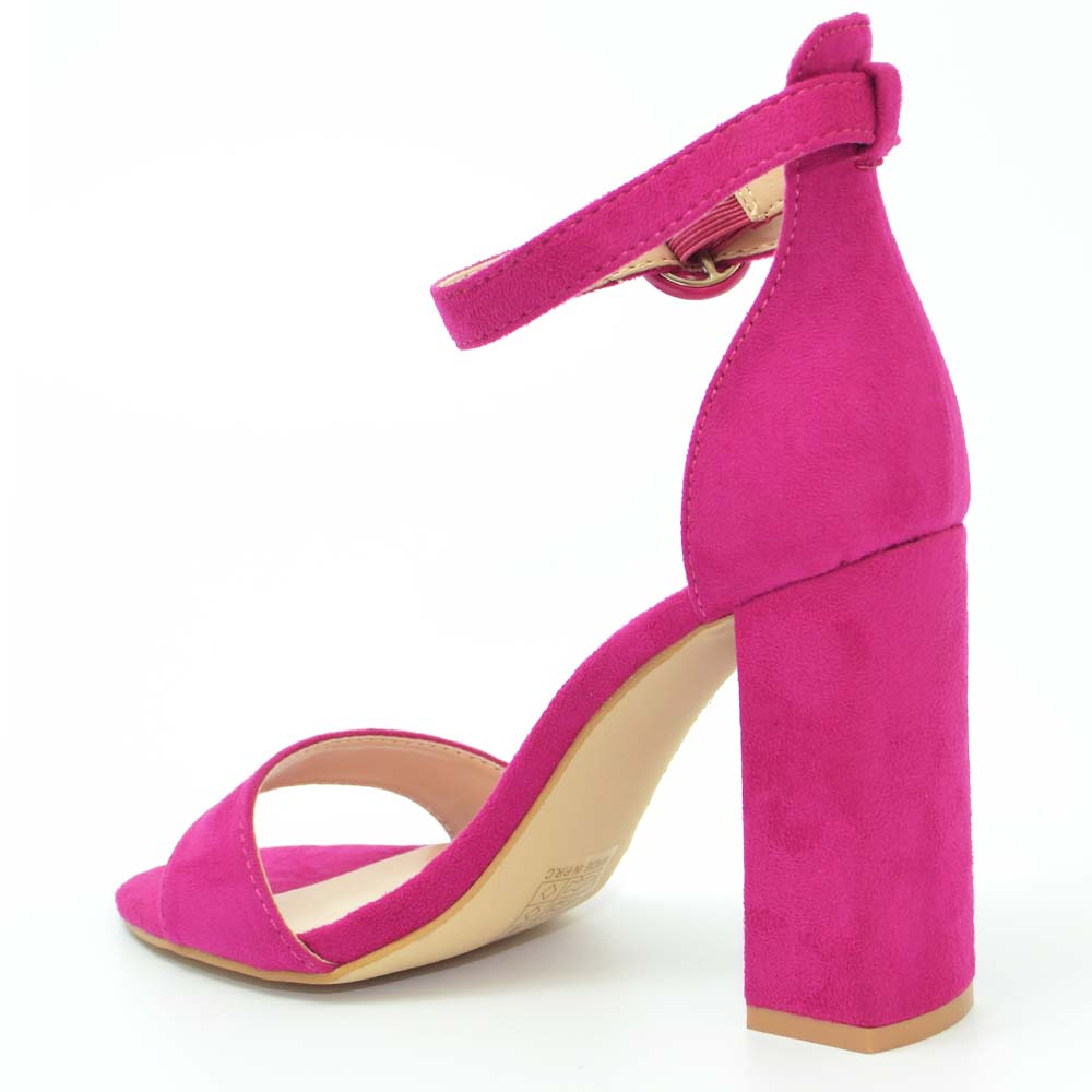 Sandalo tacco comfort aperto in camoscio fucsia con tacco largo e cinturino alla caviglia glamour moda