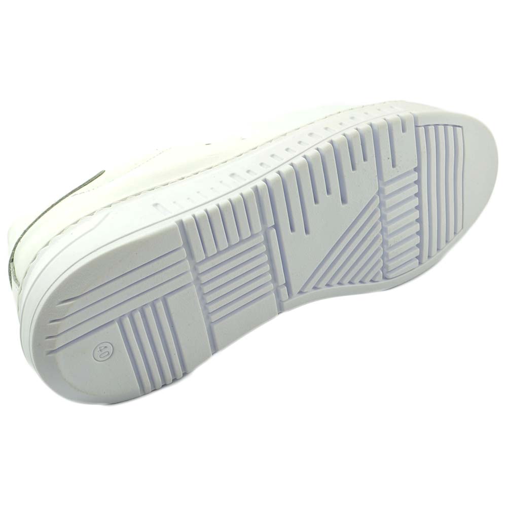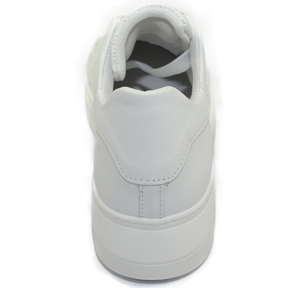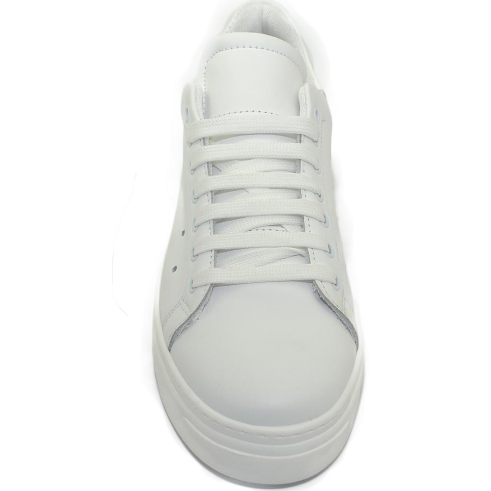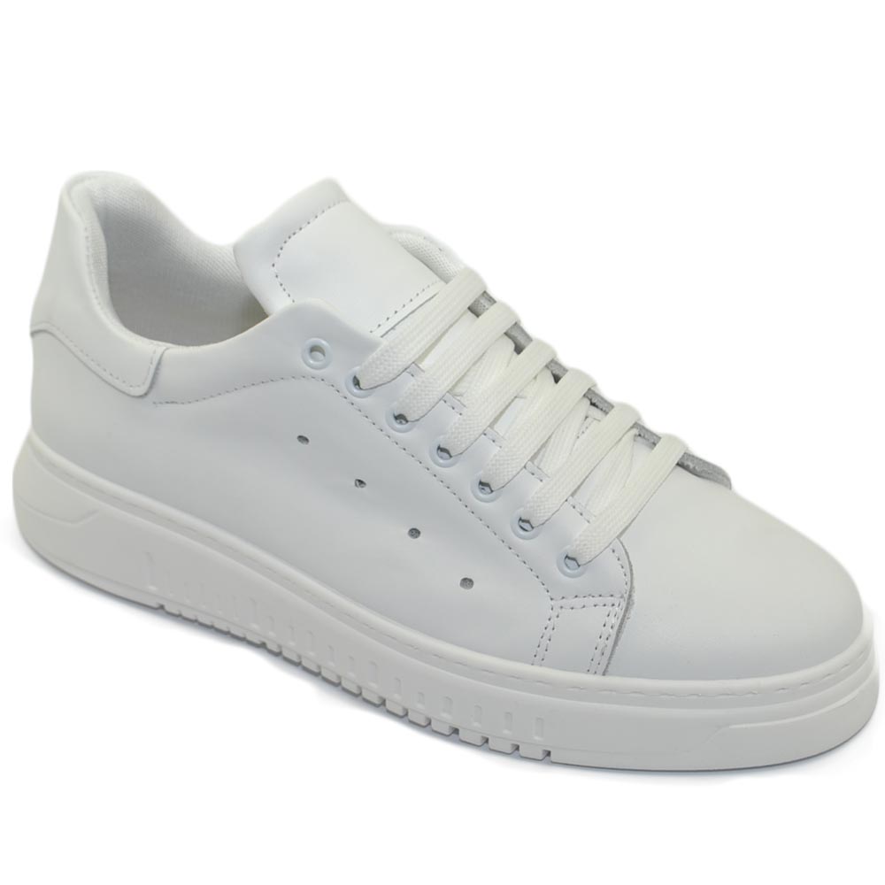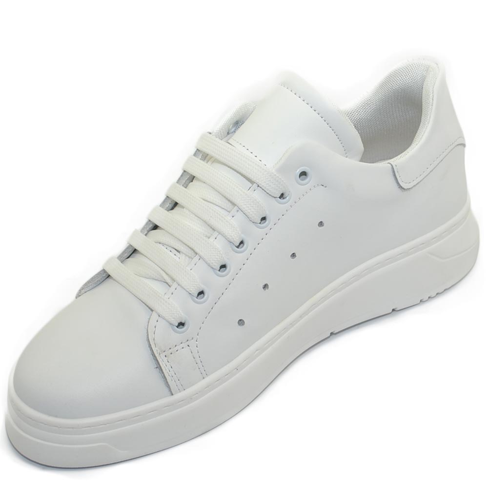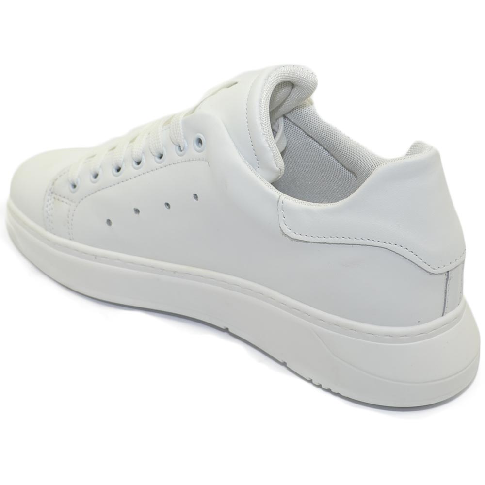 Sneakers bassa uomo bianca in vera pelle riporto bianco e lacci in tinta fondo army bianco moda uomo made in italy