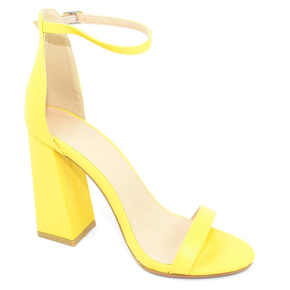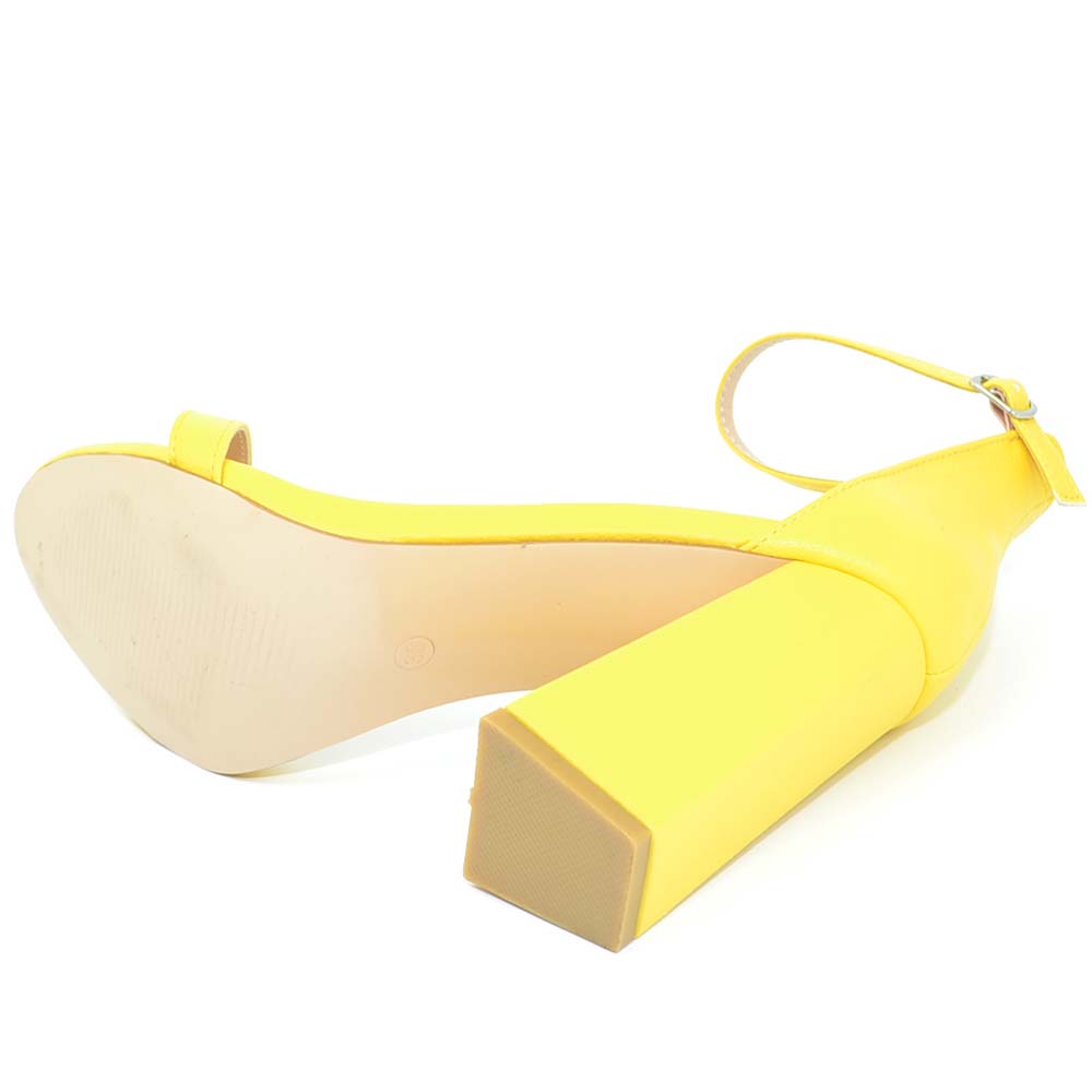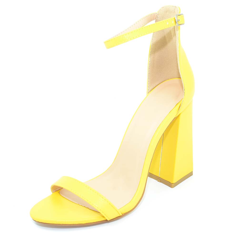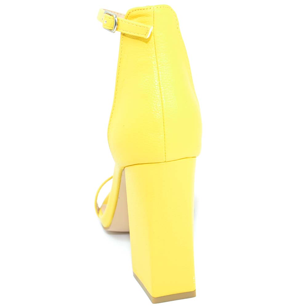 Sandalo donna giallo in ecopelle scamosciato tacco largo asimmetrico alto 10 cm cinturino alla caviglia linea basic moda