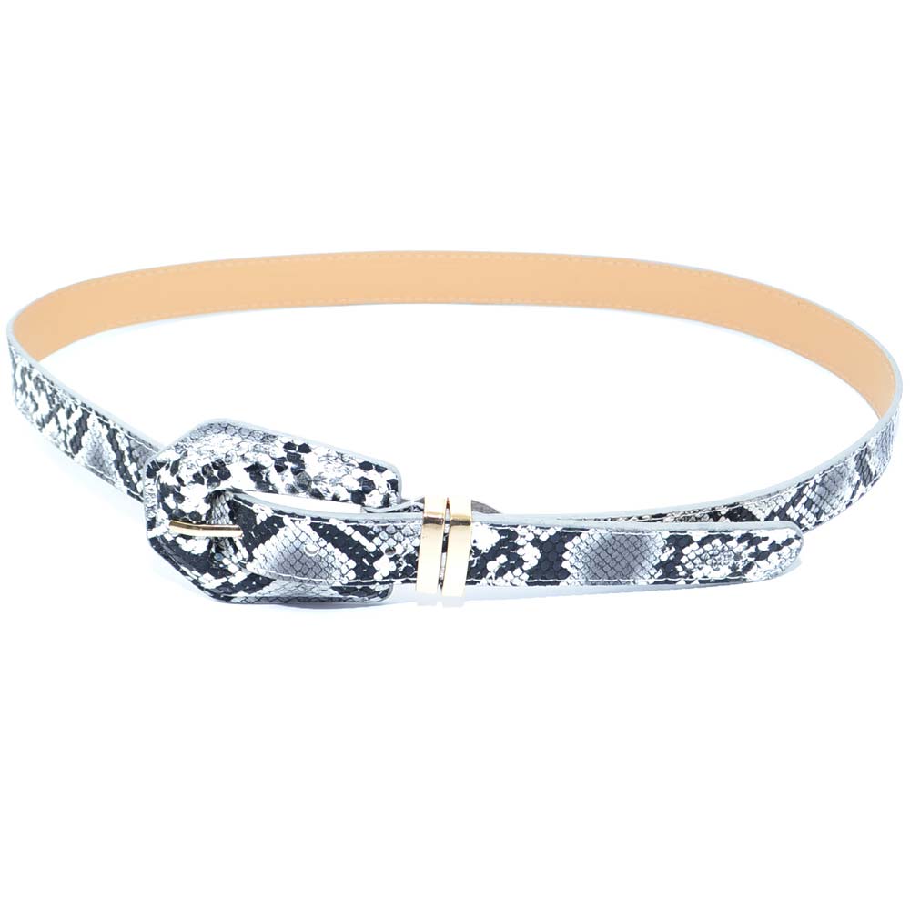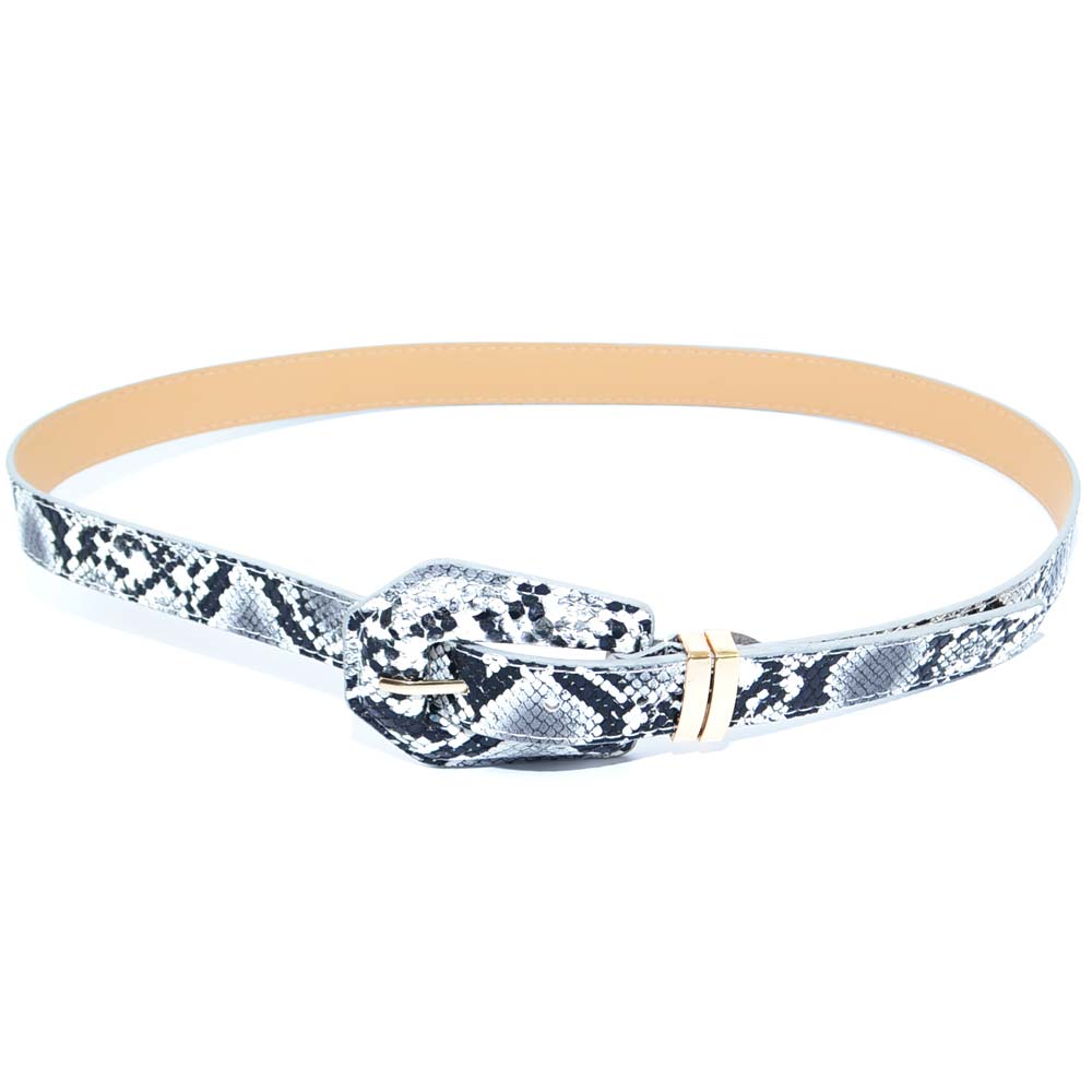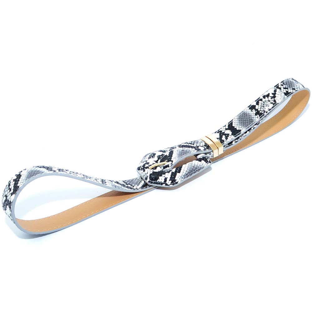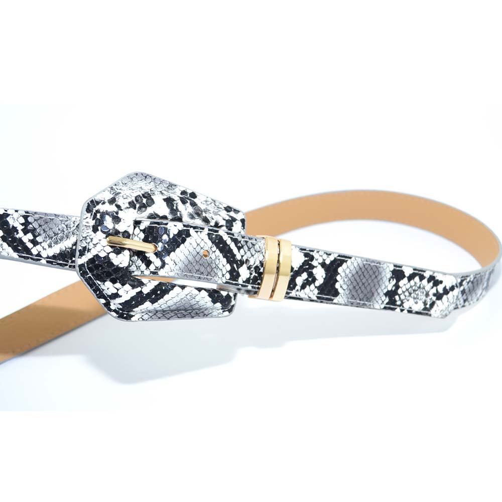 Cintura donna pitonata bianco\nera con fibbia e placchette argento altezza 3 cm modello marcuzzi moda entra nei passanti