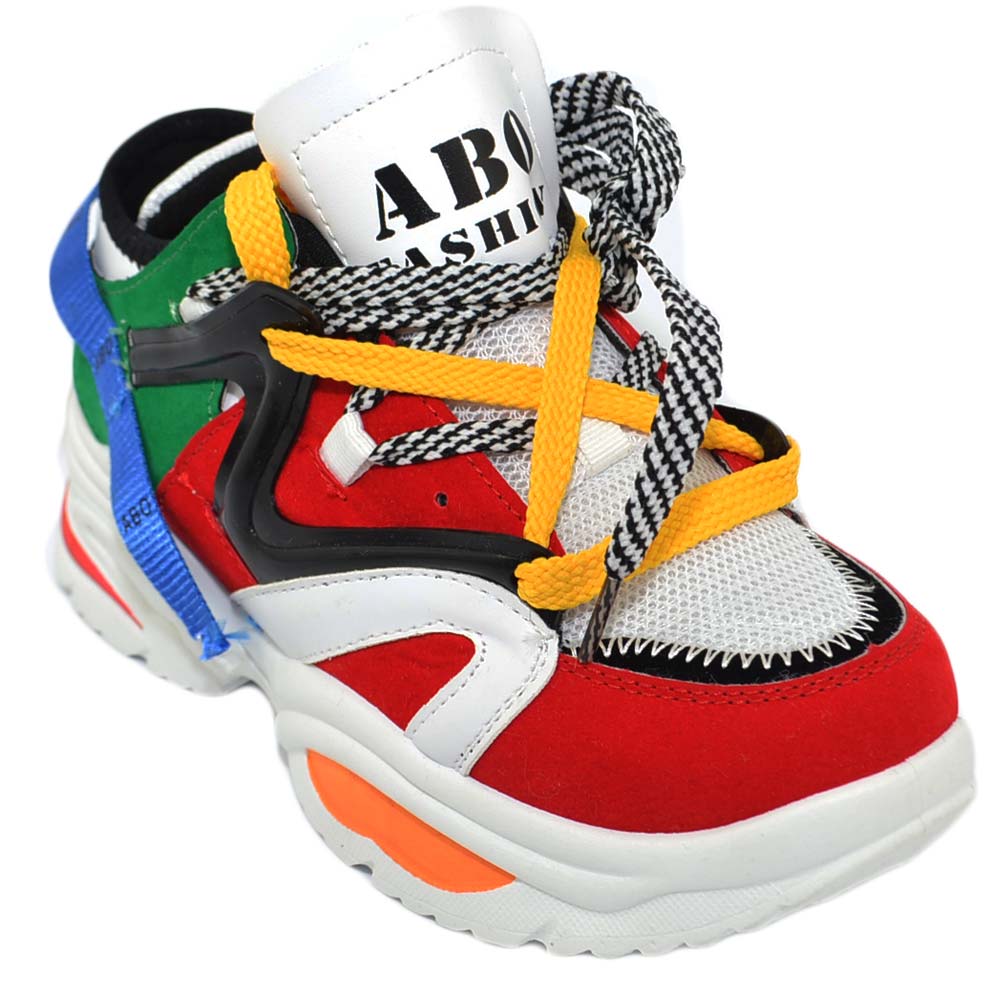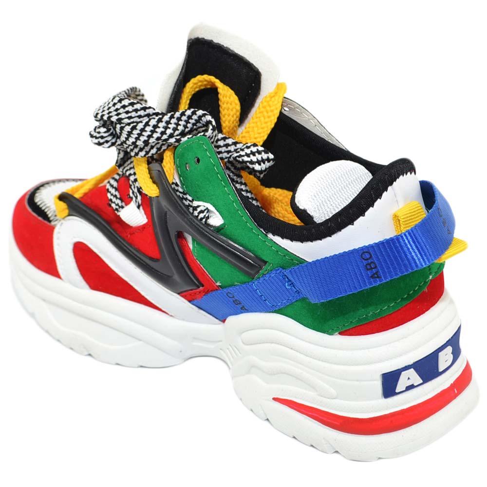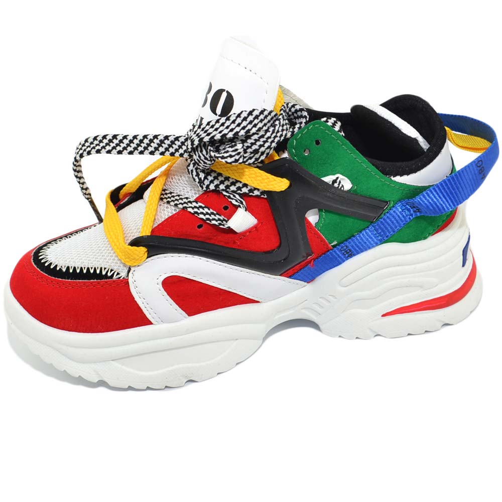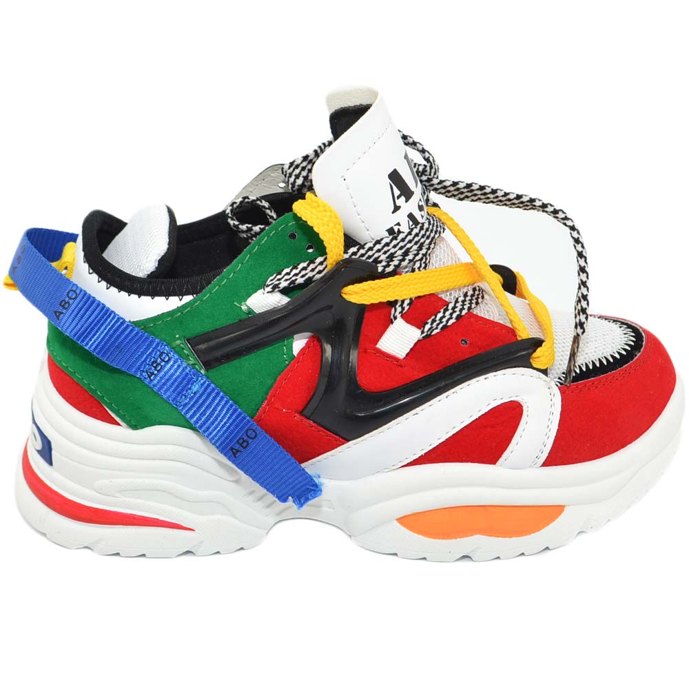 Sneakers donna bassa fondo alto colorato tomaia multistrato lacci e nastri a chiusura rapida moda street modello Bale