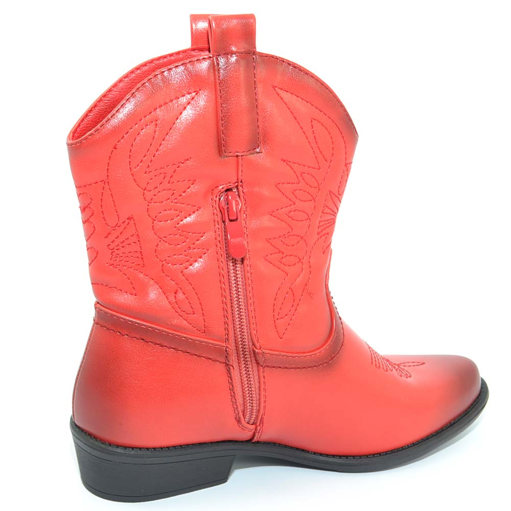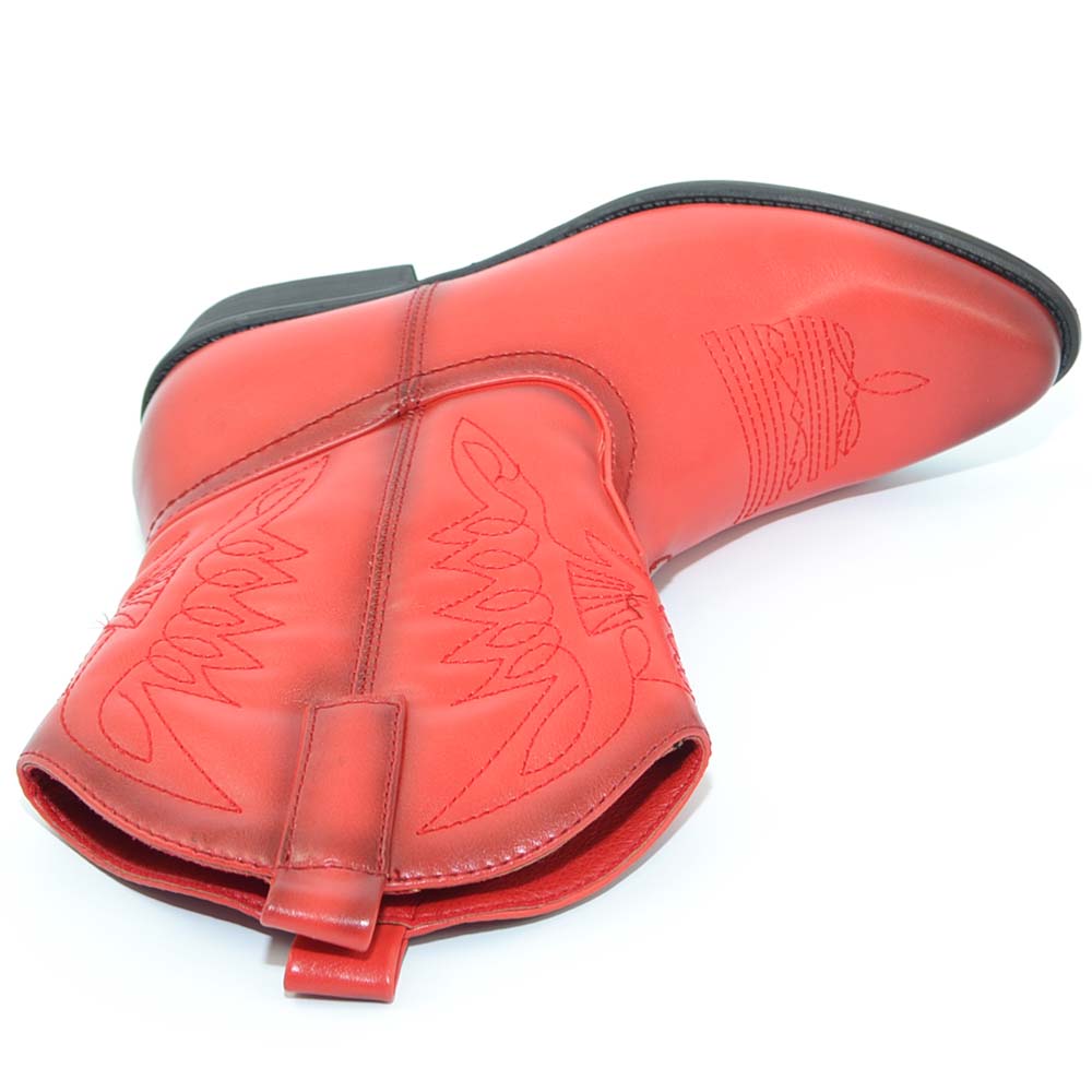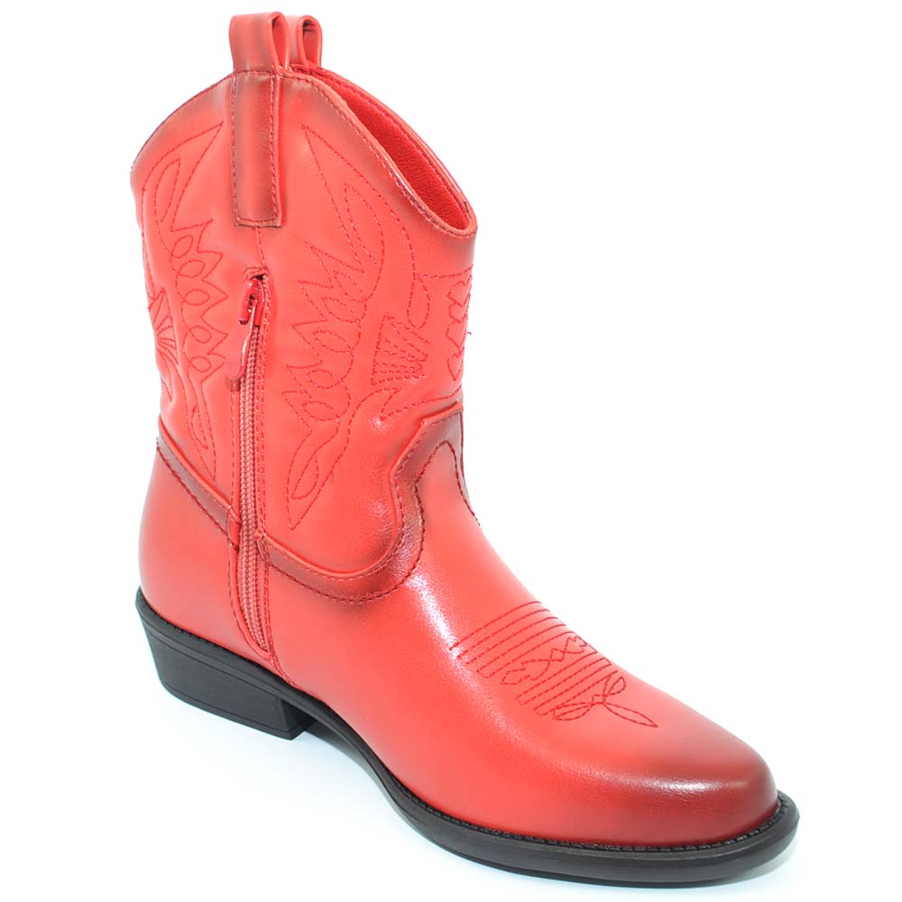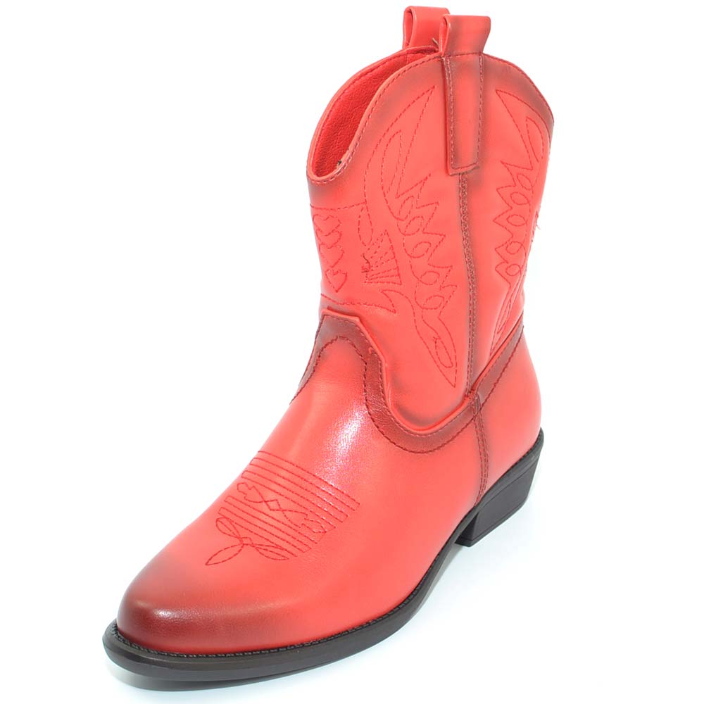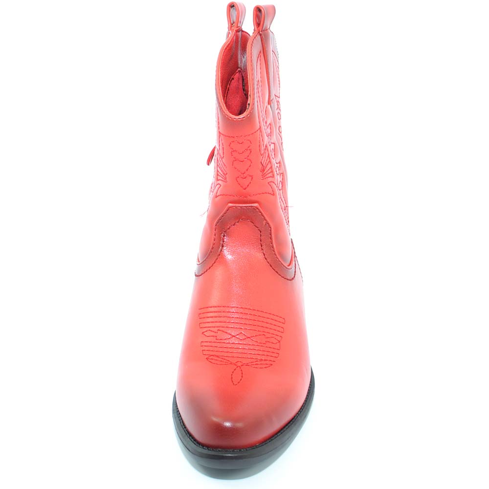 Stivaletto donna camperos texani rossi corti alla caviglia con cuciture a contrasto moda a punta con tacco cono comodo