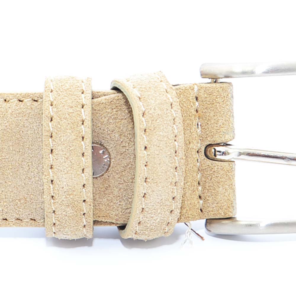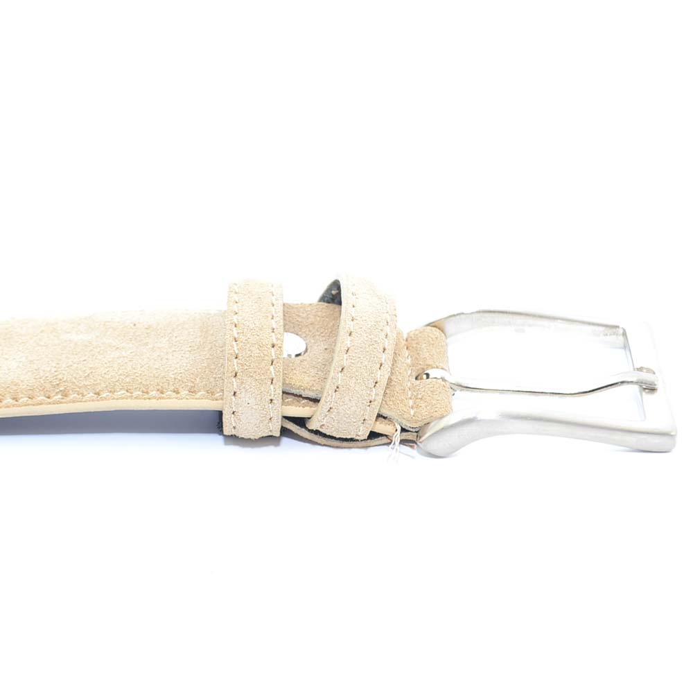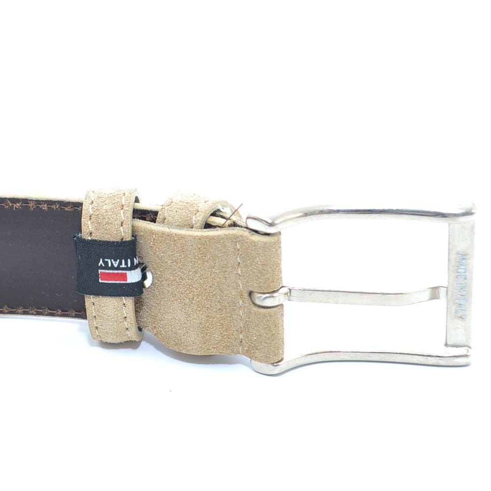 Cintura uomo fibbia alta made in italy vera pelle stile vintage beige chiaro in camoscio cerimonia moda