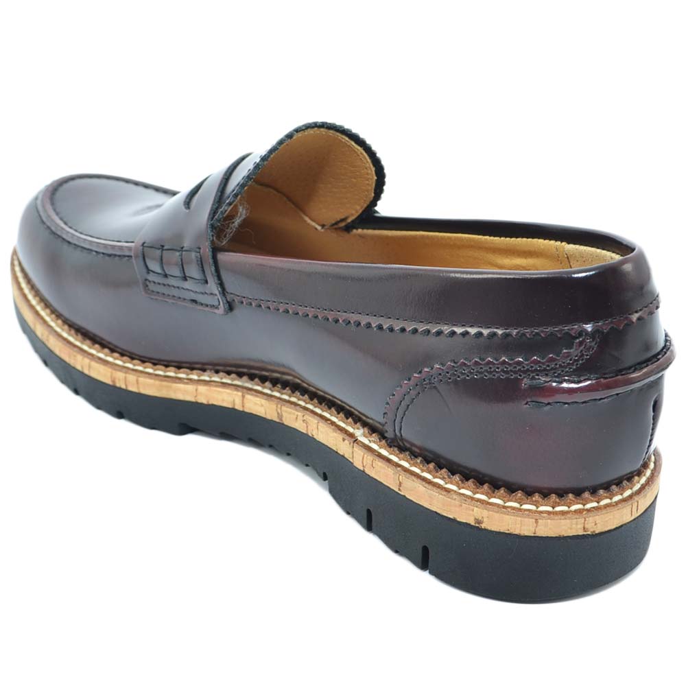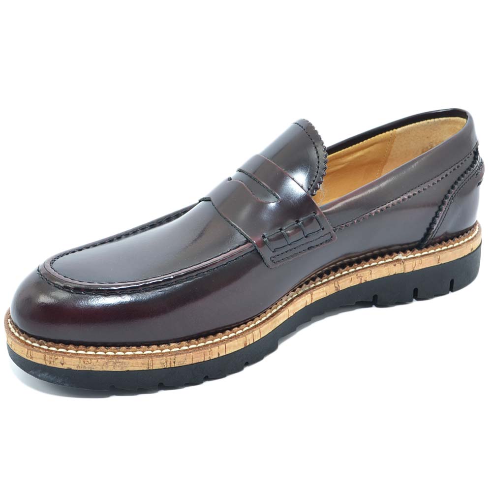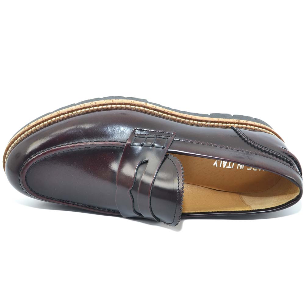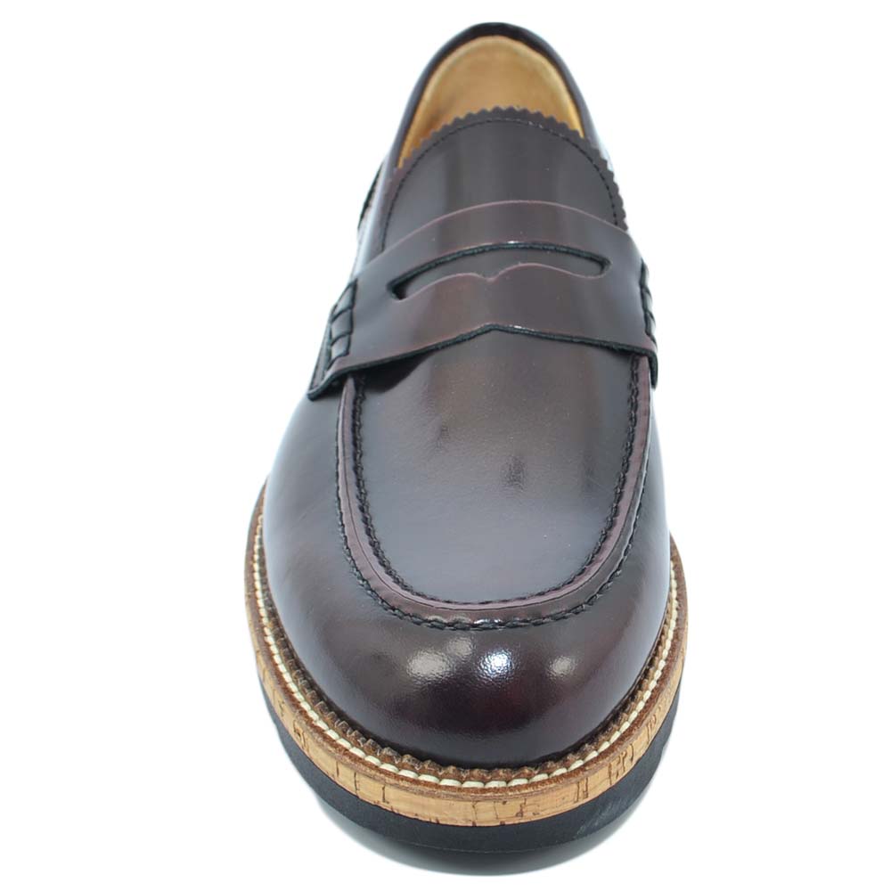 Scarpe college inglese uomo bordeaux mocassino in vera pelle abrasivato lucido fondo gomma light estivo intersuola cuoio