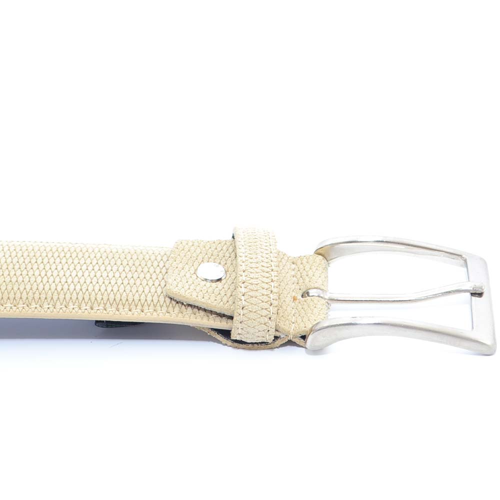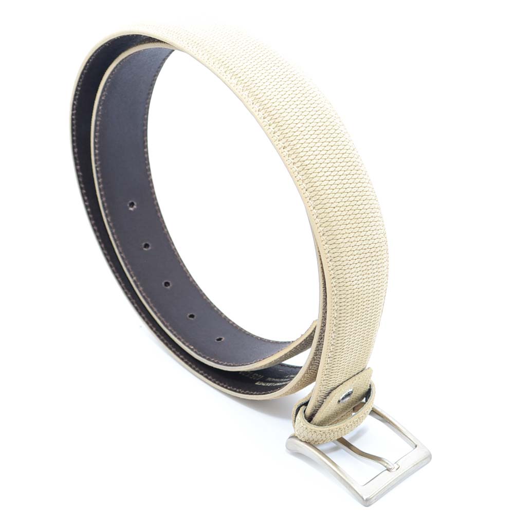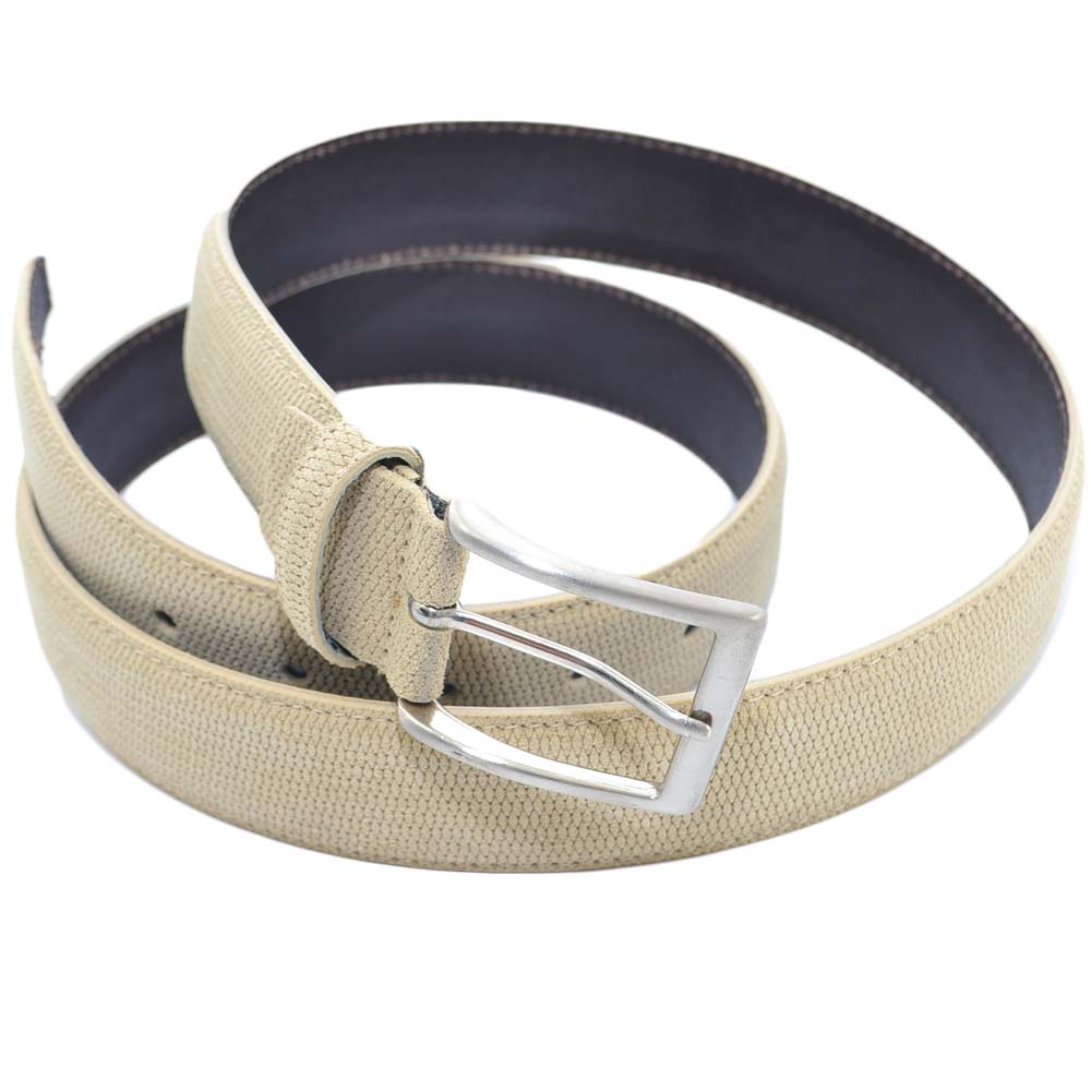 Cintura uomo in nubuk microforato beige regolabile con fibbia in acciaio made in italy business man